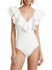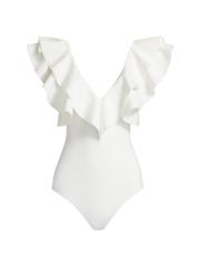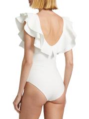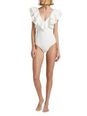 تم تصميم ملابس السباحة هذه المكونة من قطعة واحدة بتقويرة عميقة مع زخرفة مكشكشة.