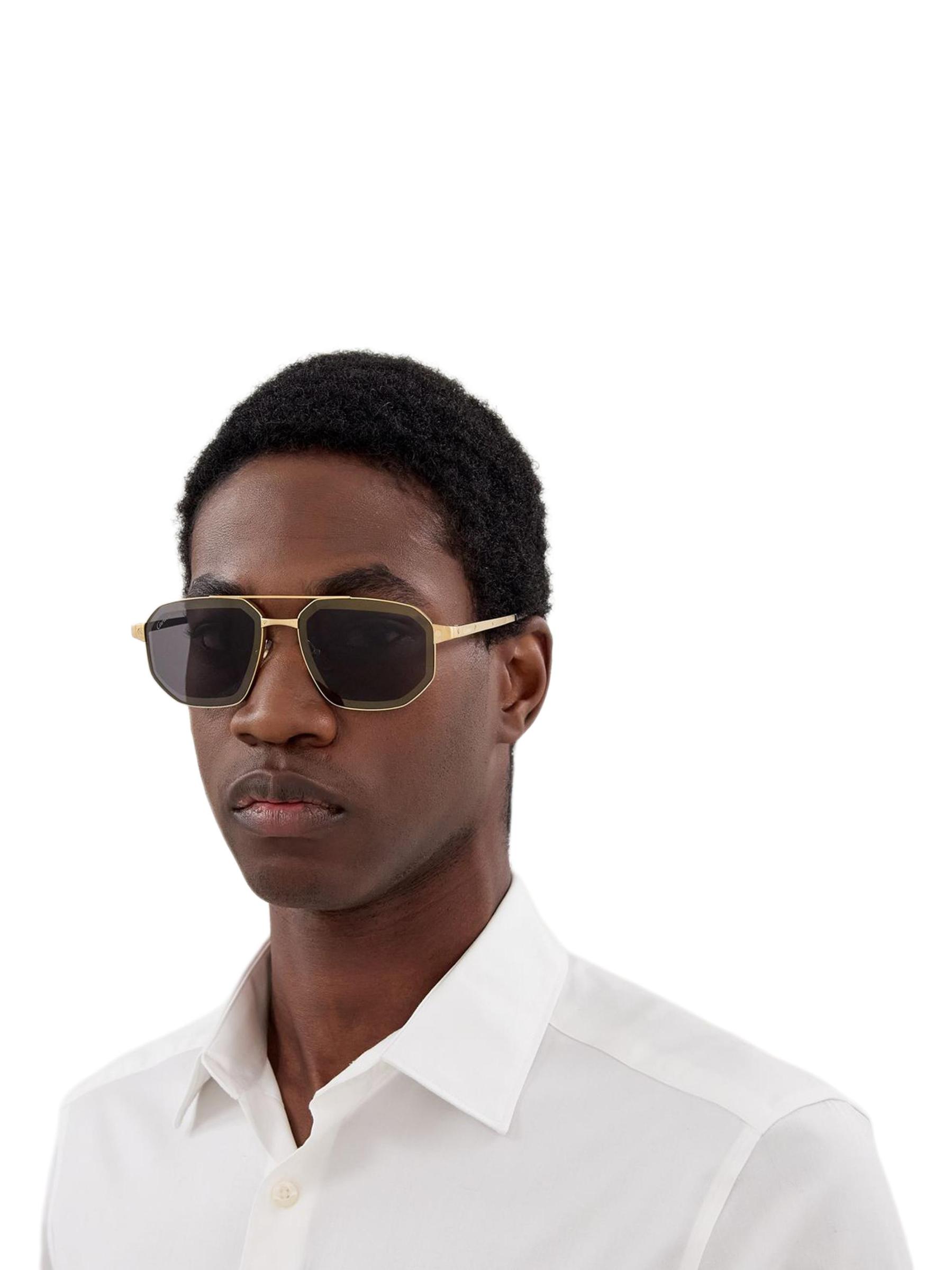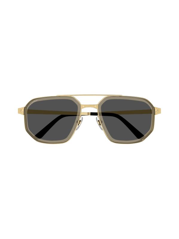 من مجموعة سانتوس الكلاسيكية. هذه النظارات الشمسية من كارتييه مطلية بالذهب عيار 24 قيراطًا. يتميز تصميم نافيجاتور بالاستقطاب للحصول على رؤية واضحة ويتميز بمسامير سانتوس المميزة وشعار العلامة التجارية.