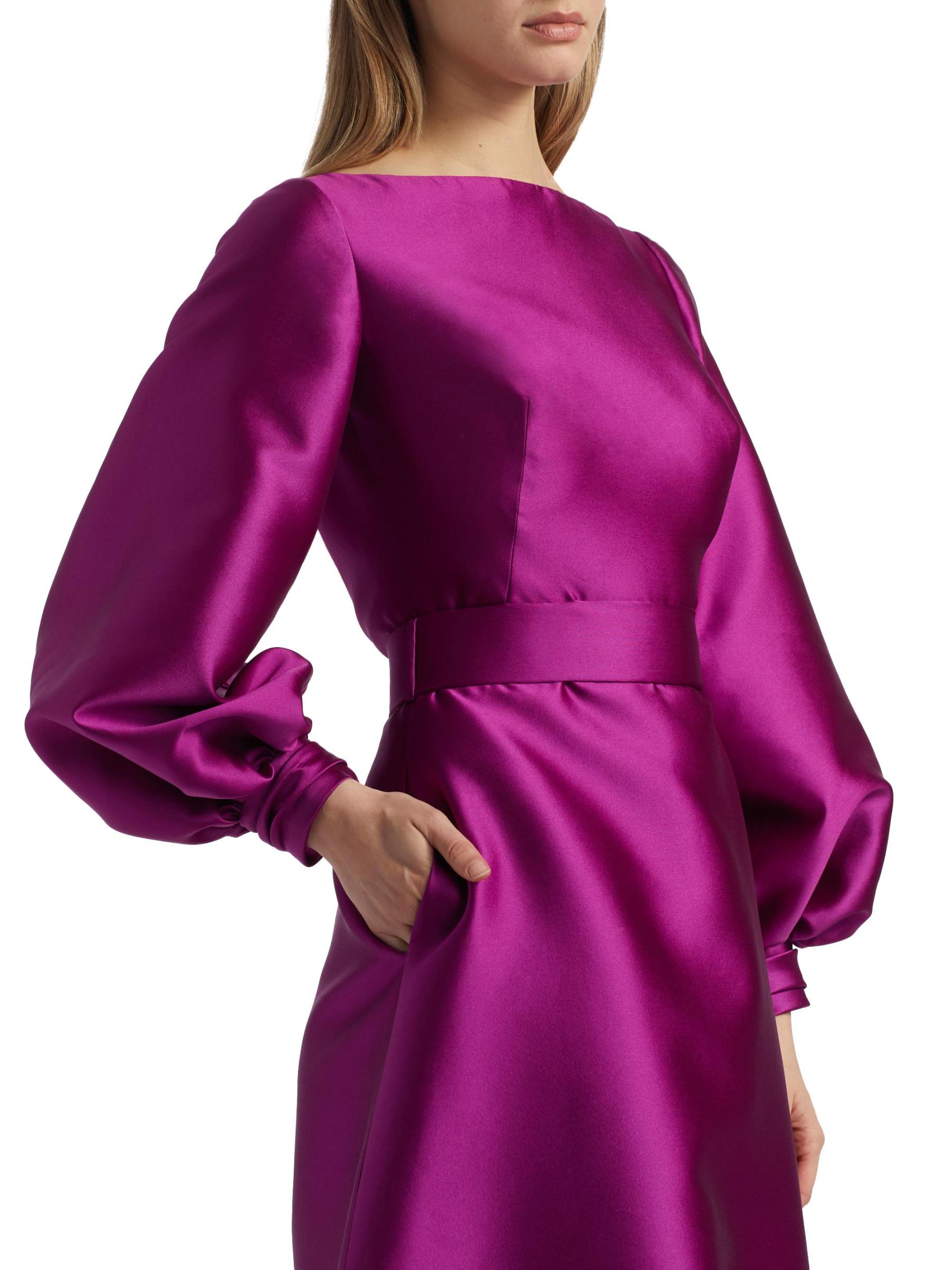 يتميّز فستان ريم آركا الفخم ذو الشكل الهرمي المصنوع من ساتان الميكادو الناعم برقبة القارب بأكمام بالون مثيرة.بوتنك أكمام بالون طويلة سحّاب خلفي مخفي 85% بوليستر/ 15% حرير البطانة: 100% بوليستر تنظيف جاف صُنع في الولايات المتحدة الأمريكية من قماش إيطالي