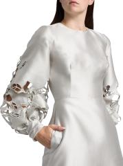 يتميّز فستان ريم أكرا المذهل والمناسب والمشرق بلون الساتان اللامع، ويزيّن الصورة الظلية بأكمام مطرزة مزيّنة بنقوش مزهّرة. يتميز هذا التصميم الملكي برقبة دائرية خالدة ودرزات الأميرة وجيوب على الدرز.رقبة مستديرة أكمام بيشوب طويلة وأساور مطوية جيوب جانبية على درزات إغلاق بسحّاب خلفي مخفي 85% بوليستر/ 15% حرير البطانة: 100% بوليستر تنظيف جاف صُنع في الولايات المتحدة الأمريكية من قماش إيطالي