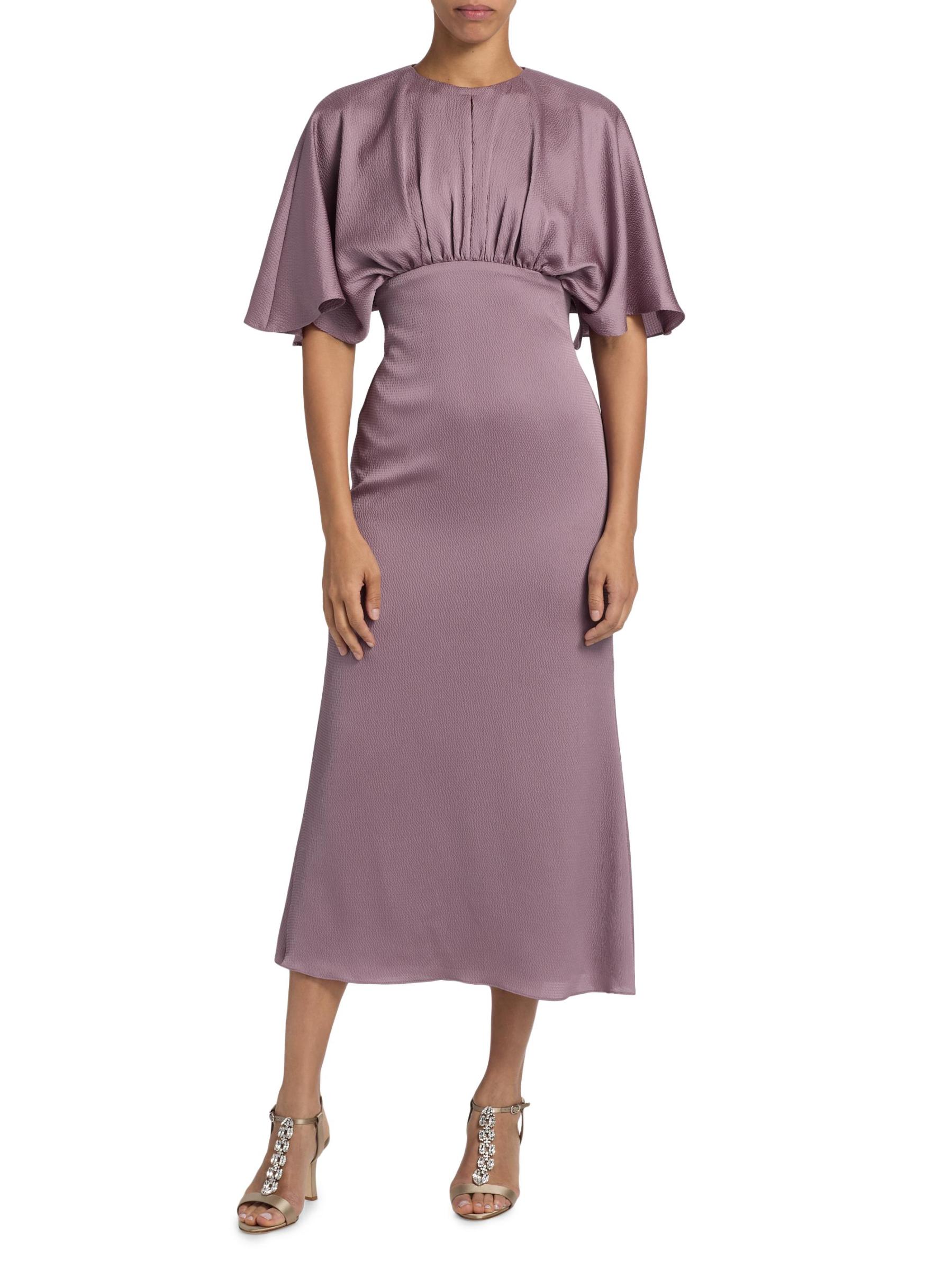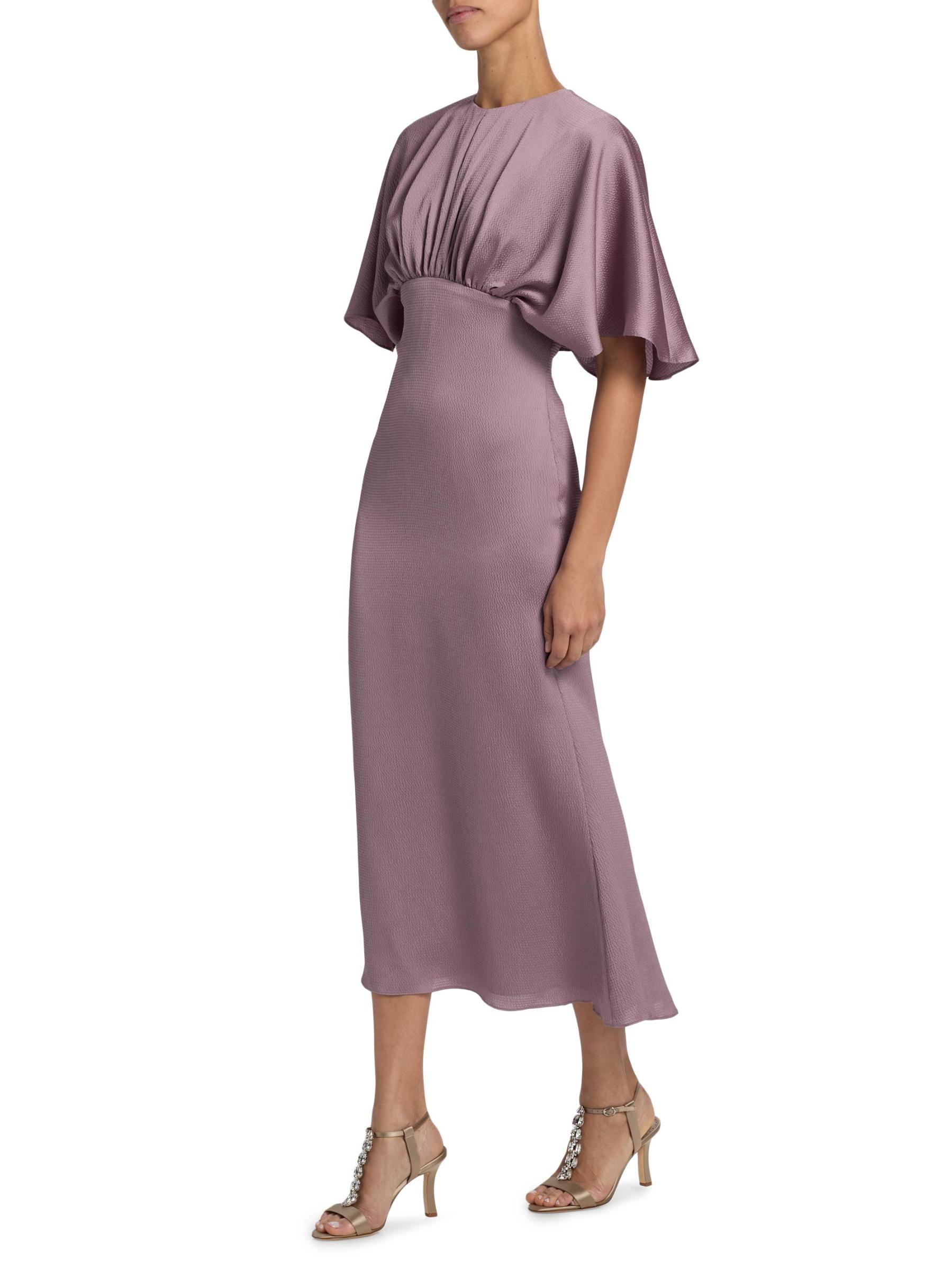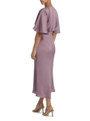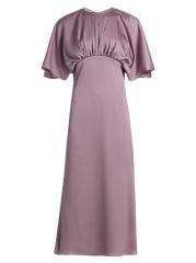 فستان متوسط الطول من الساتان بأكمام مرفرفة