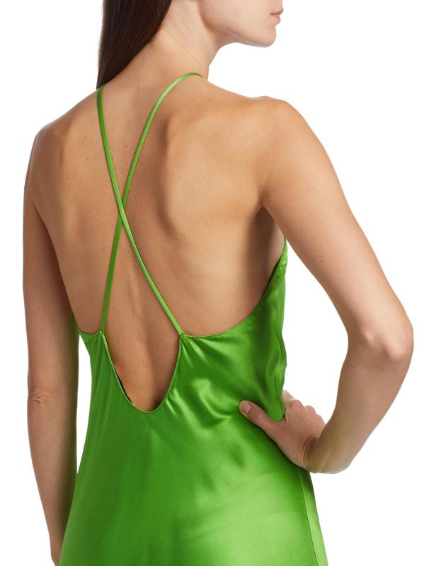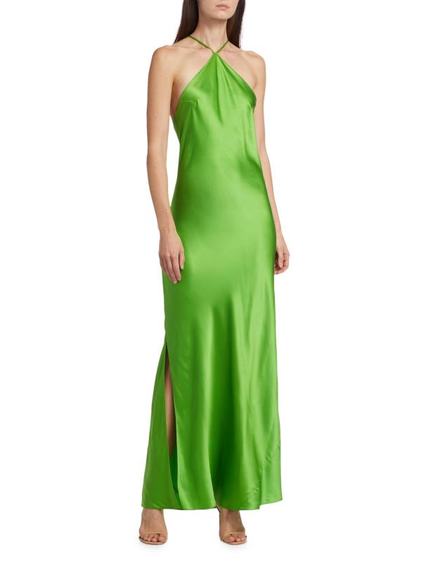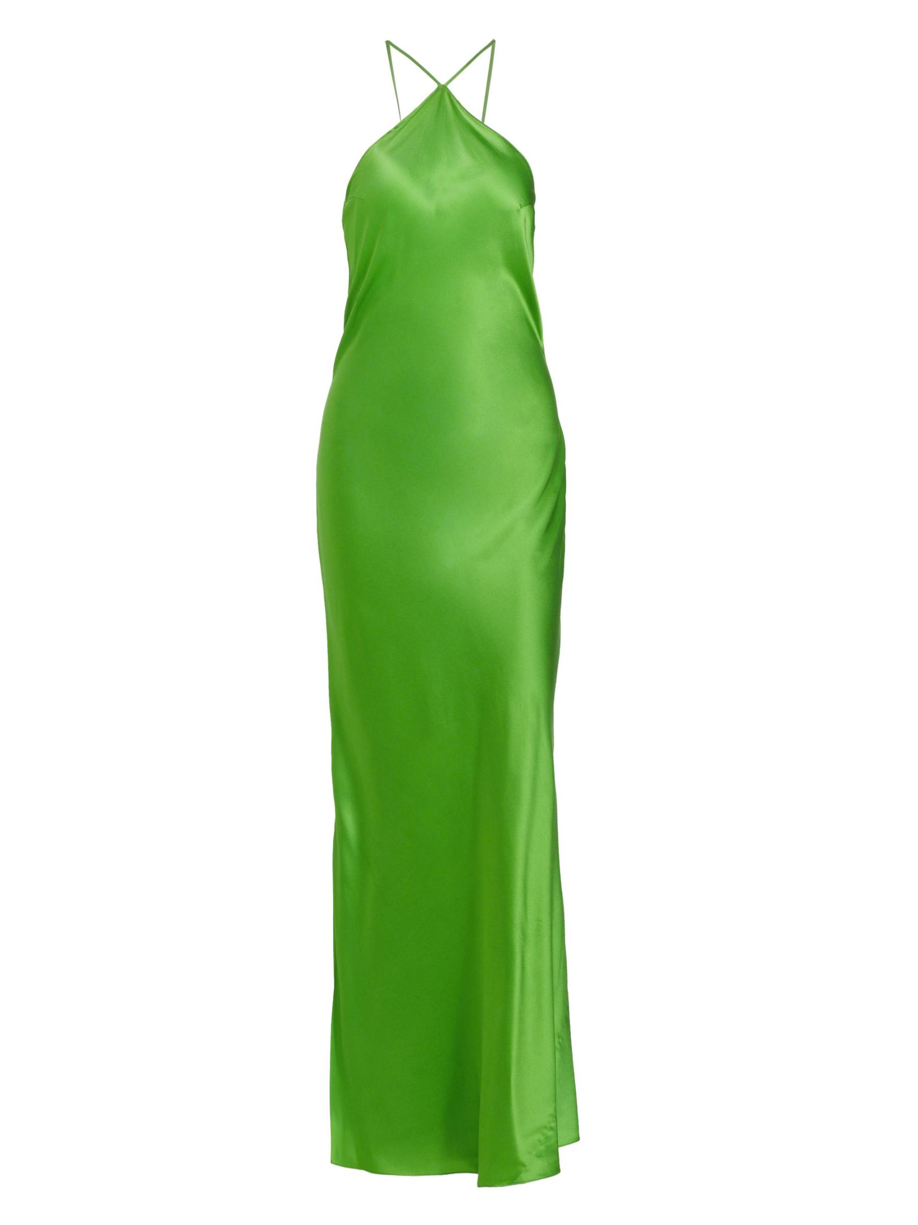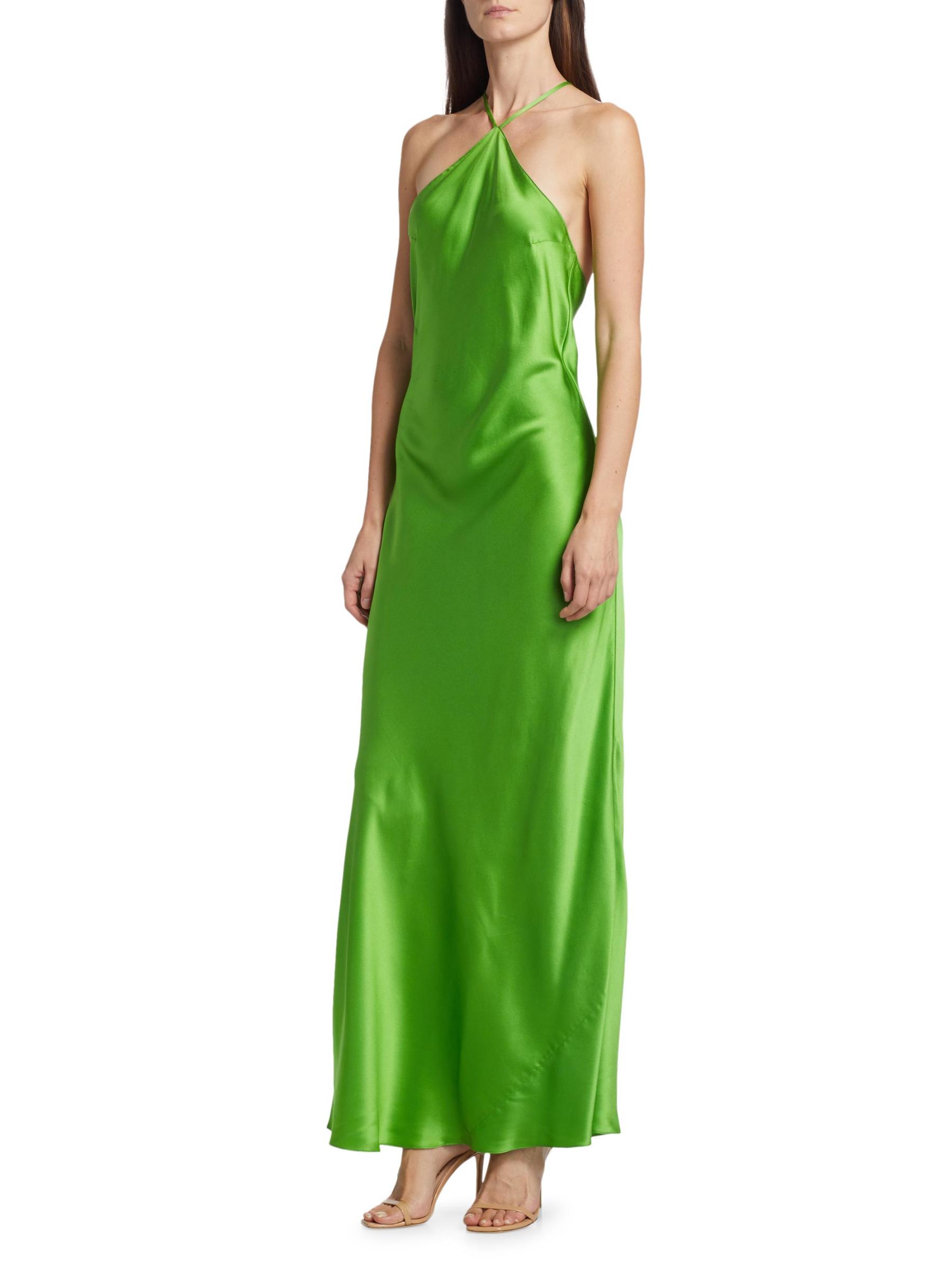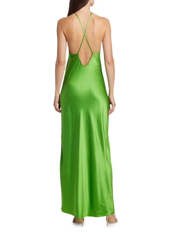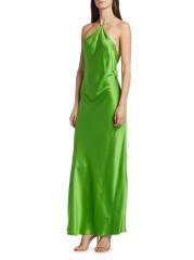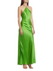 يتميز فستان DANNIJO الطويل المصنوع من الساتان برقبة رسن وأحزمة كروس أوفر.