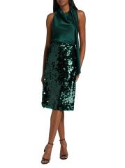 تتميّز هذه البلوزة بدون أكمام من فينس المصنوعة من البقع برقبة على شكل قوس وتفاصيل وشاح منسدل.
