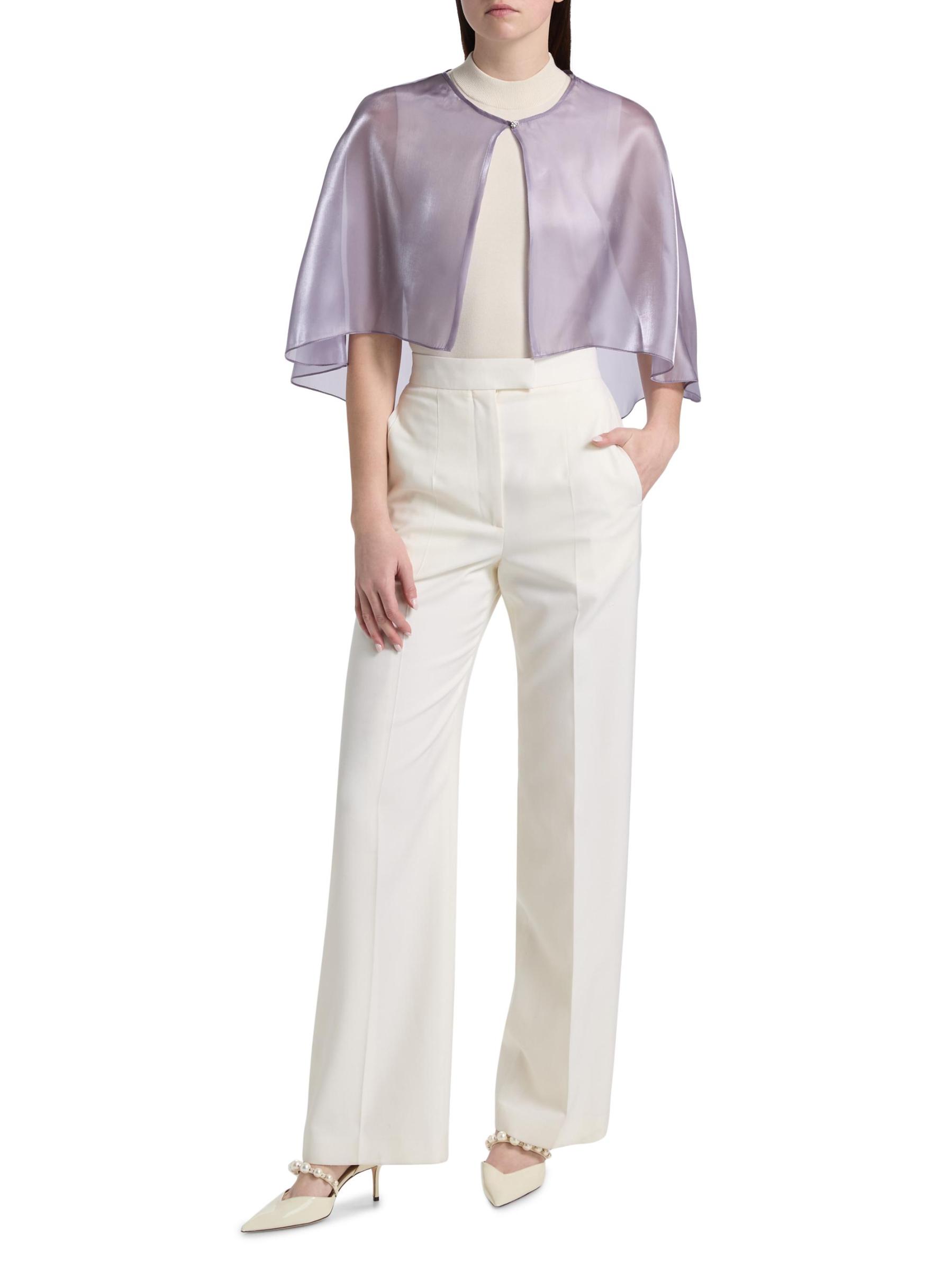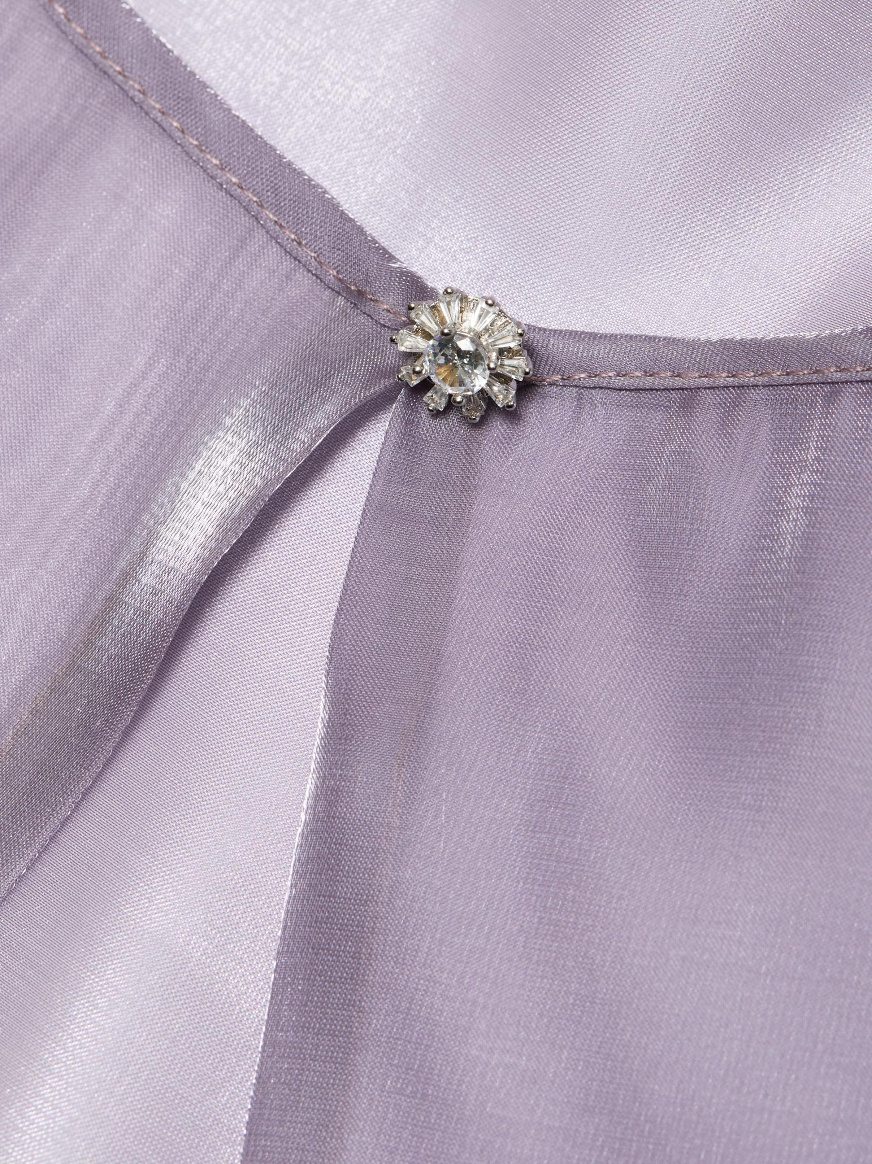يتميز هذا الكاب المصنوع من الساتان من مجموعة Carolyn Rowan بإغلاق بزر كريستالي واحد بتصميم مرتفع ومنخفض.