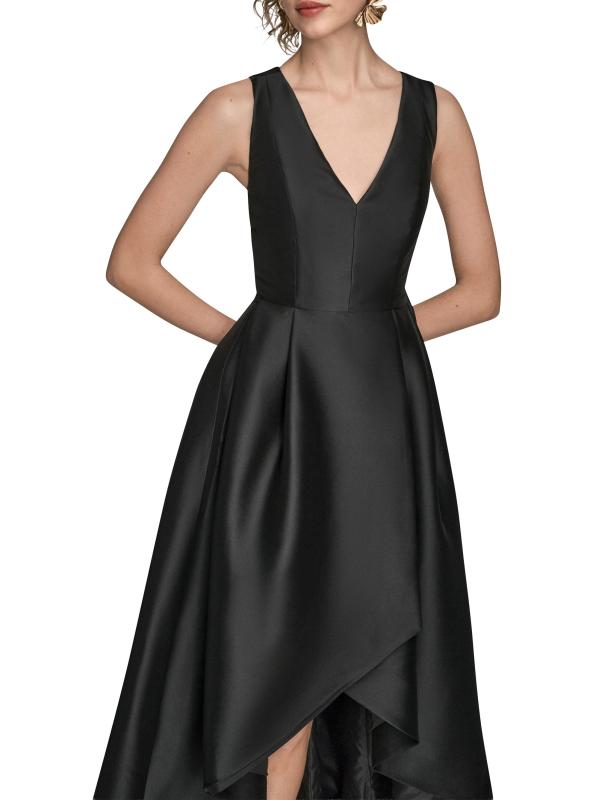 فستان DKNY هذا مصنوع من الساتان ومصمم برقبة على شكل حرف V وشق أمامي وحاشية عالية منخفضة.