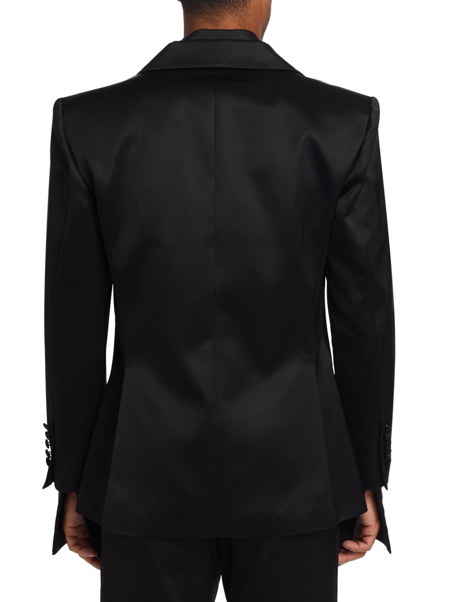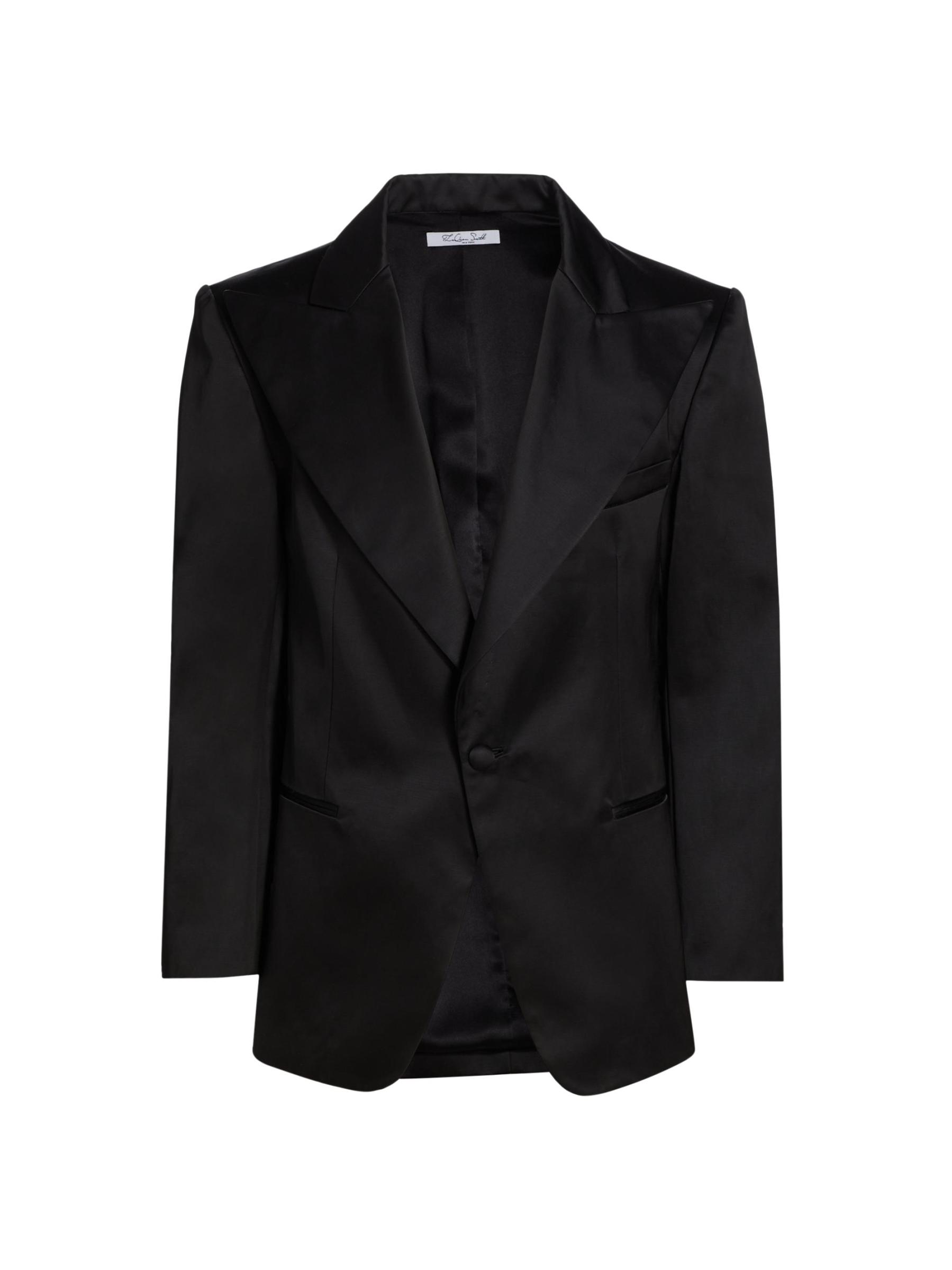 صُمّمت هذه السترة المصنوعة من الساتان من LaQuan Smith بحرفية بفضل الأكتاف المهيكلة وزر الإغلاق المفرد. جيوب مبطّنة تكمل المظهر.