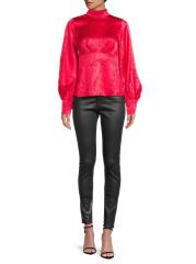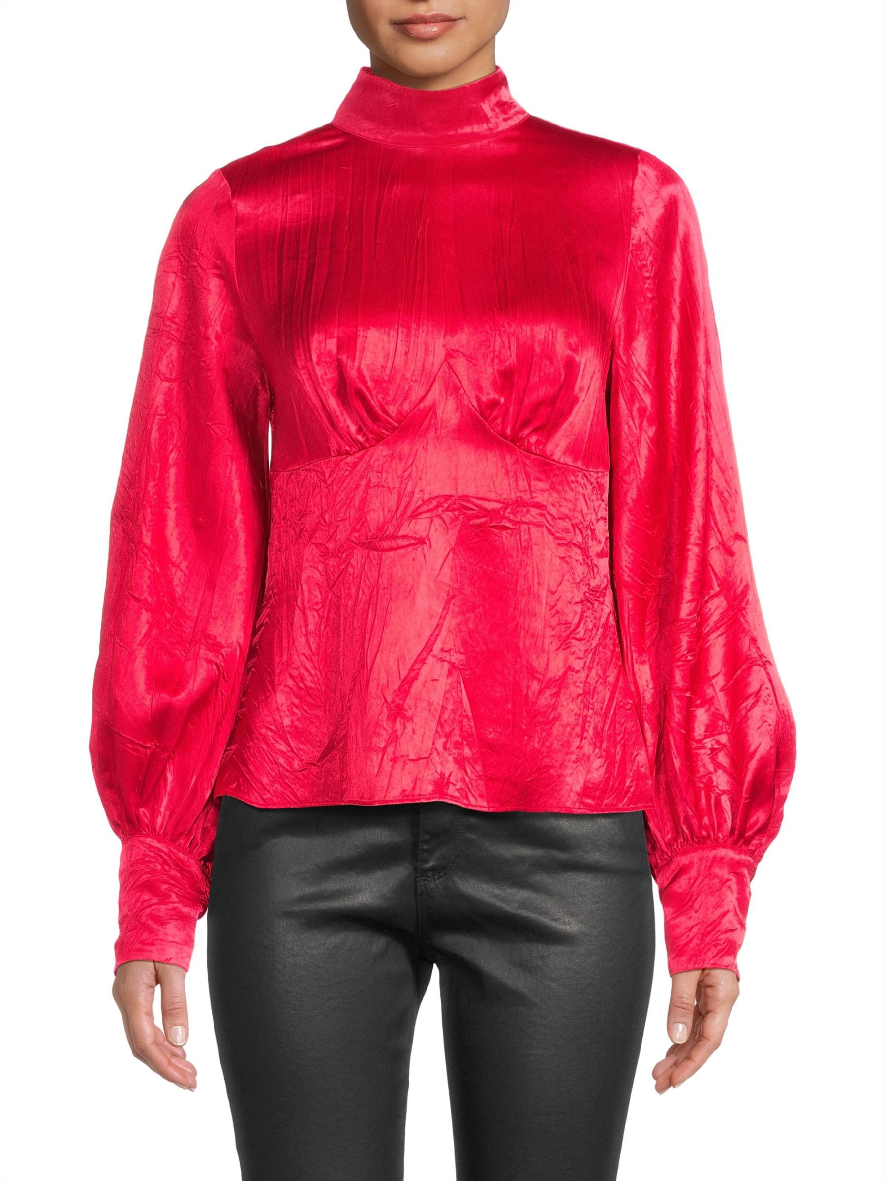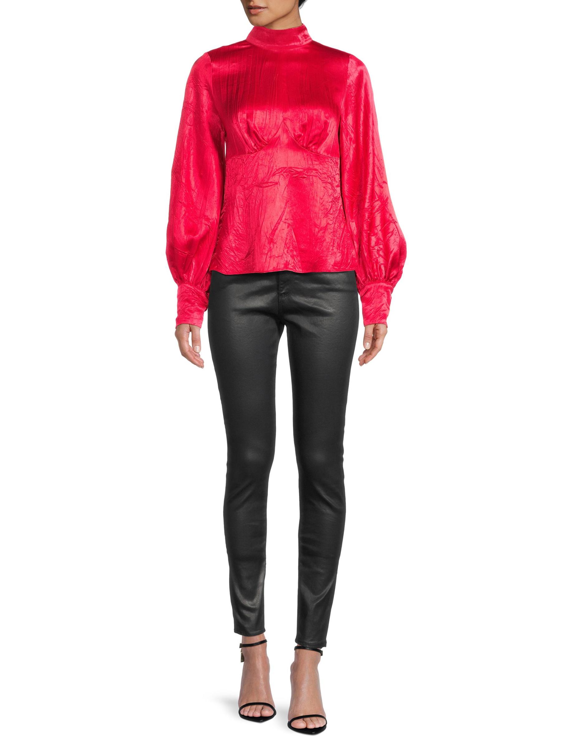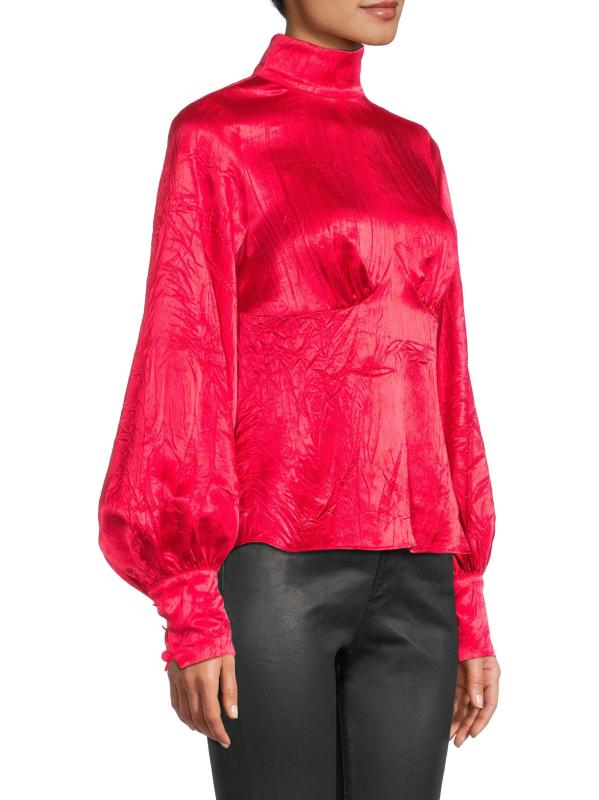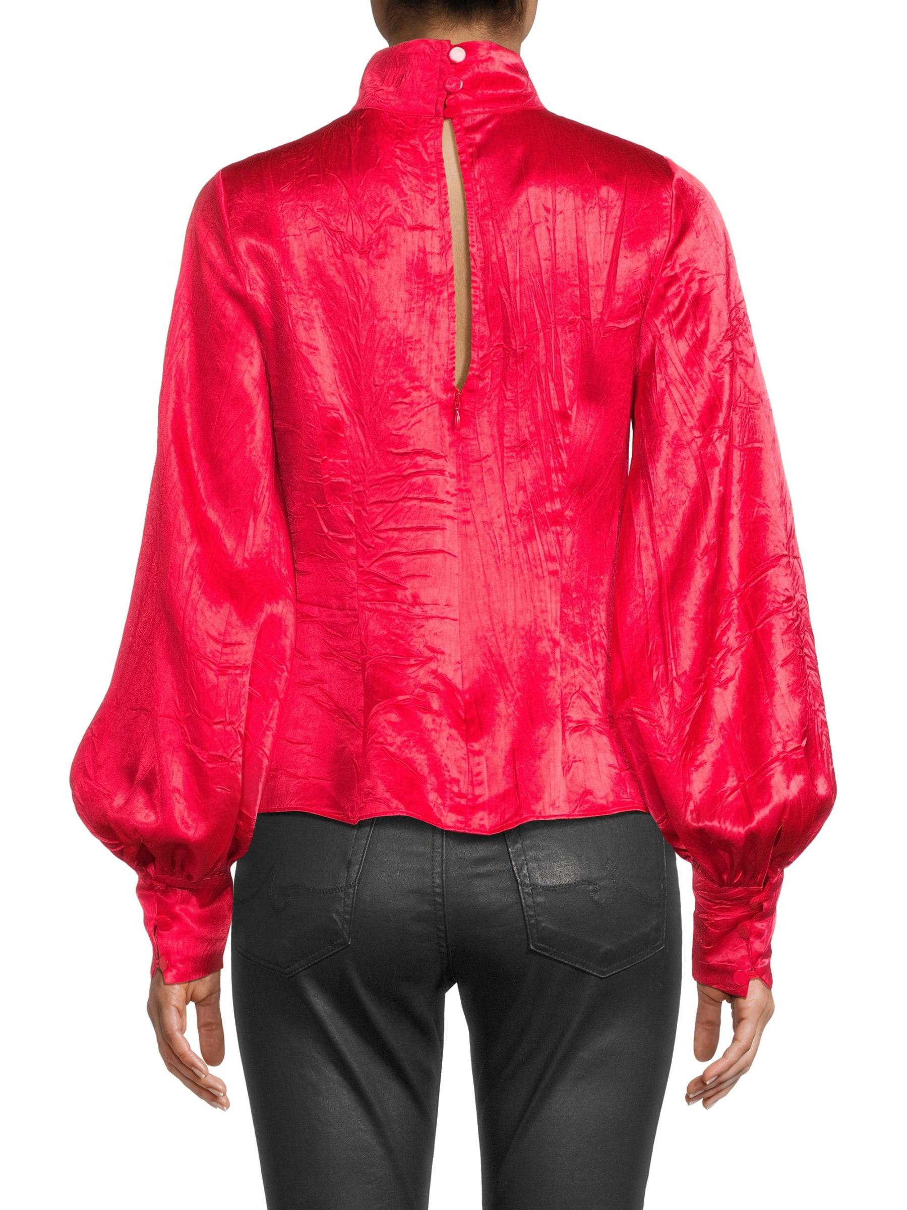 هذه البلوزة المصنوعة من الساتان من Hope for Flowers مصممة بياقة عالية وأكمام مطرزة طويلة.
