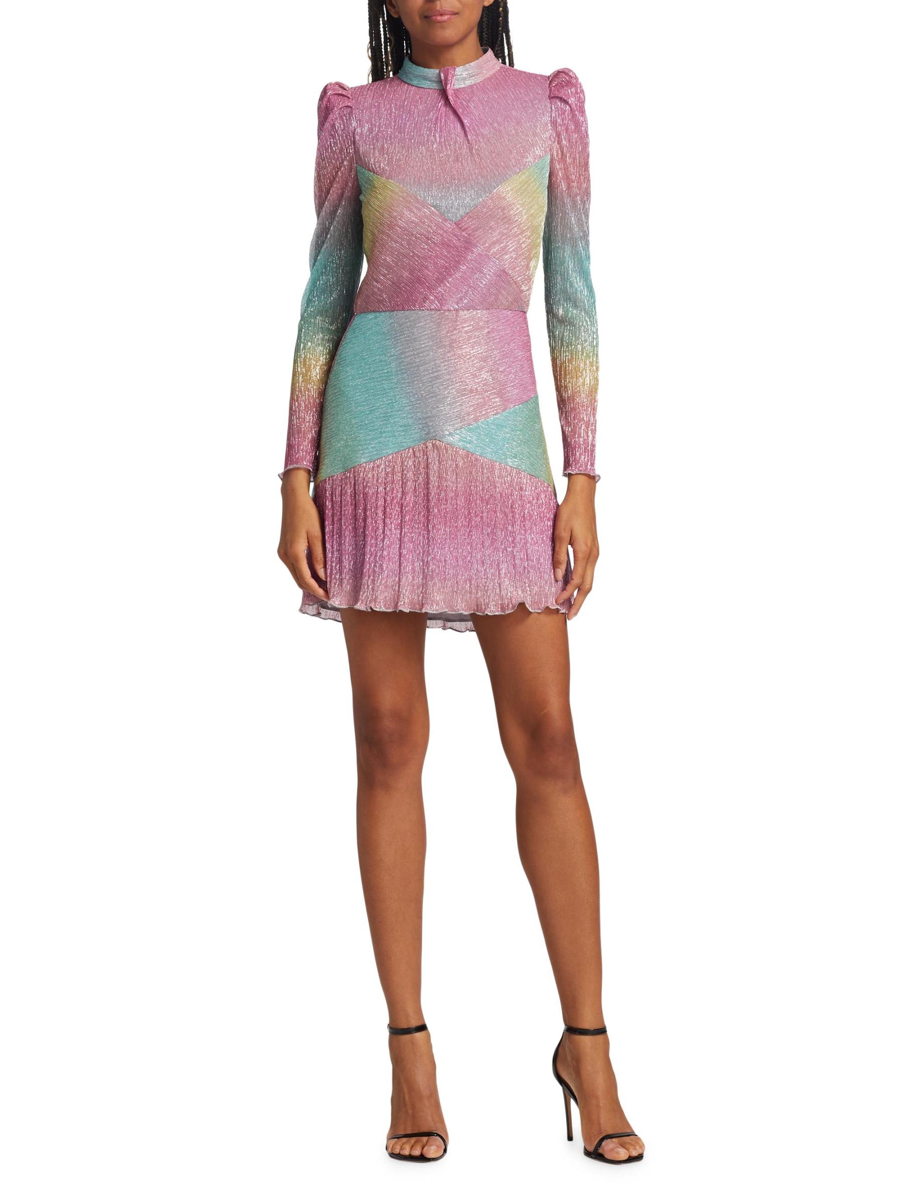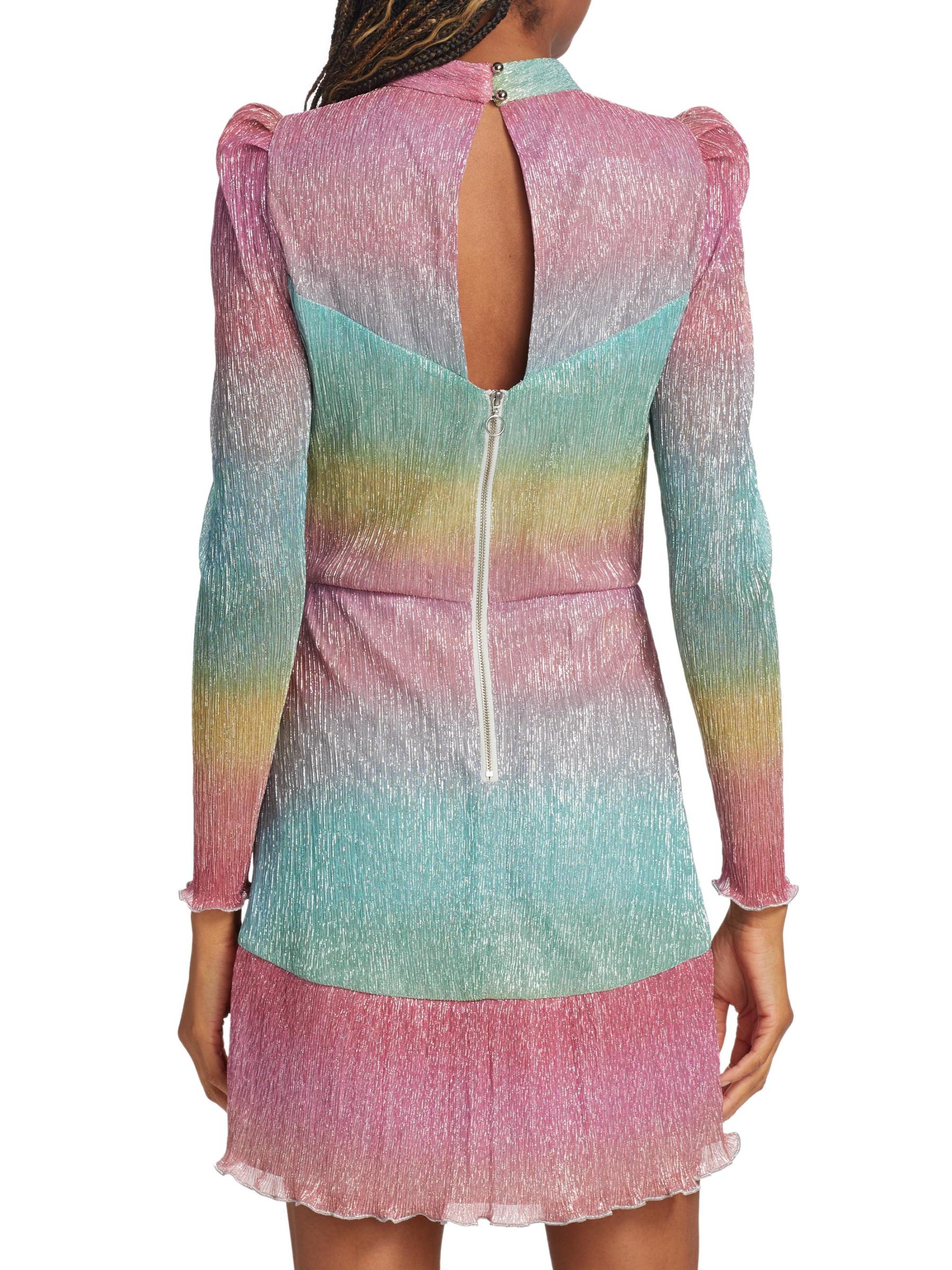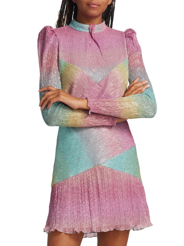 يتميز فستان Saydee القصير بأكمام طويلة من Saylor بتصميم معدني مطوي وتصميم خارجي متدرج.