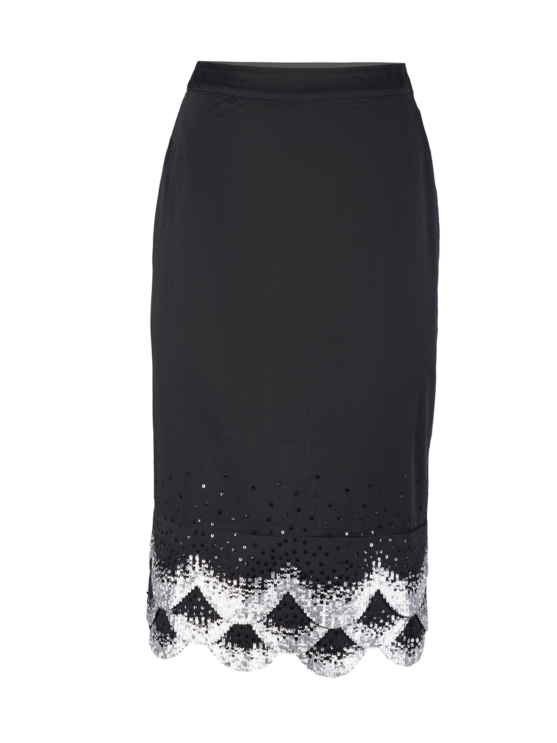 تنورة قلم رصاص من AFEW Rahul Mishra مصنوعة من القطن ومزينة بالترتر عند الحافة.خصر مطوق جيوب جانبية إغلاق بسحّاب جانبي قطن بنسبة 100% تنظيف جاف مستوردة
