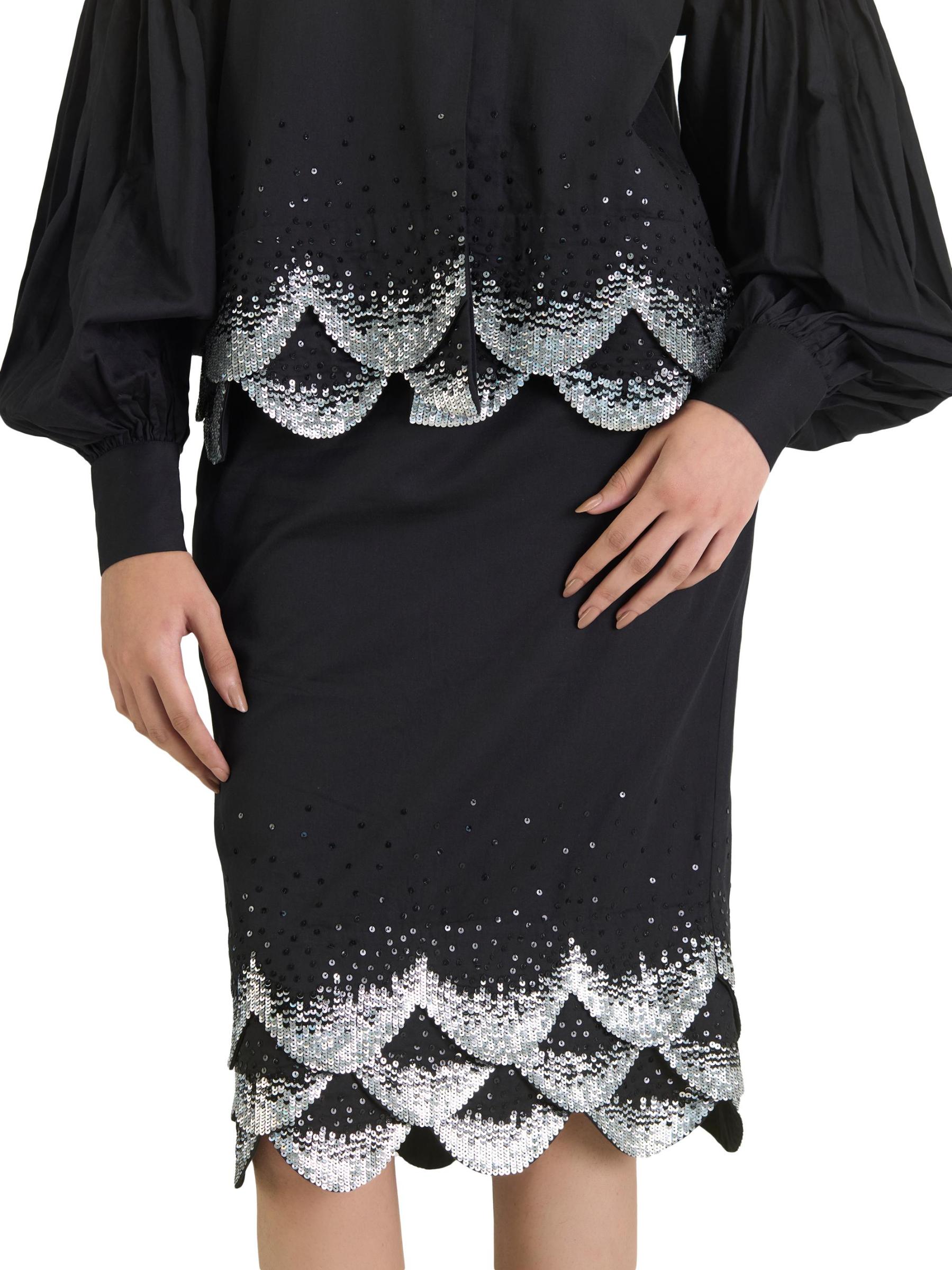 تنورة قلم رصاص من AFEW Rahul Mishra مصنوعة من القطن ومزينة بالترتر عند الحافة.