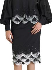 تنورة قلم رصاص صدفية بحافة مطرزة