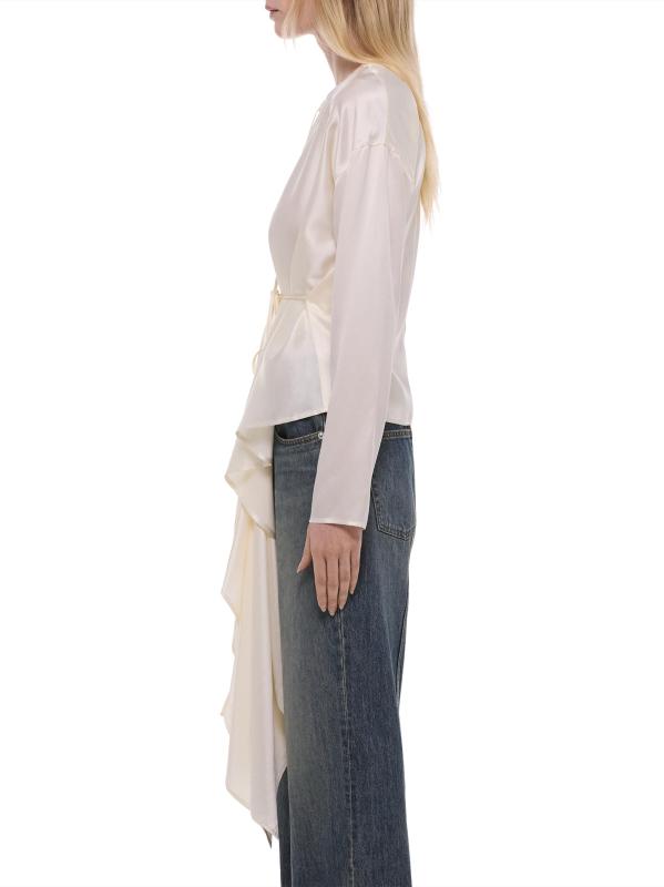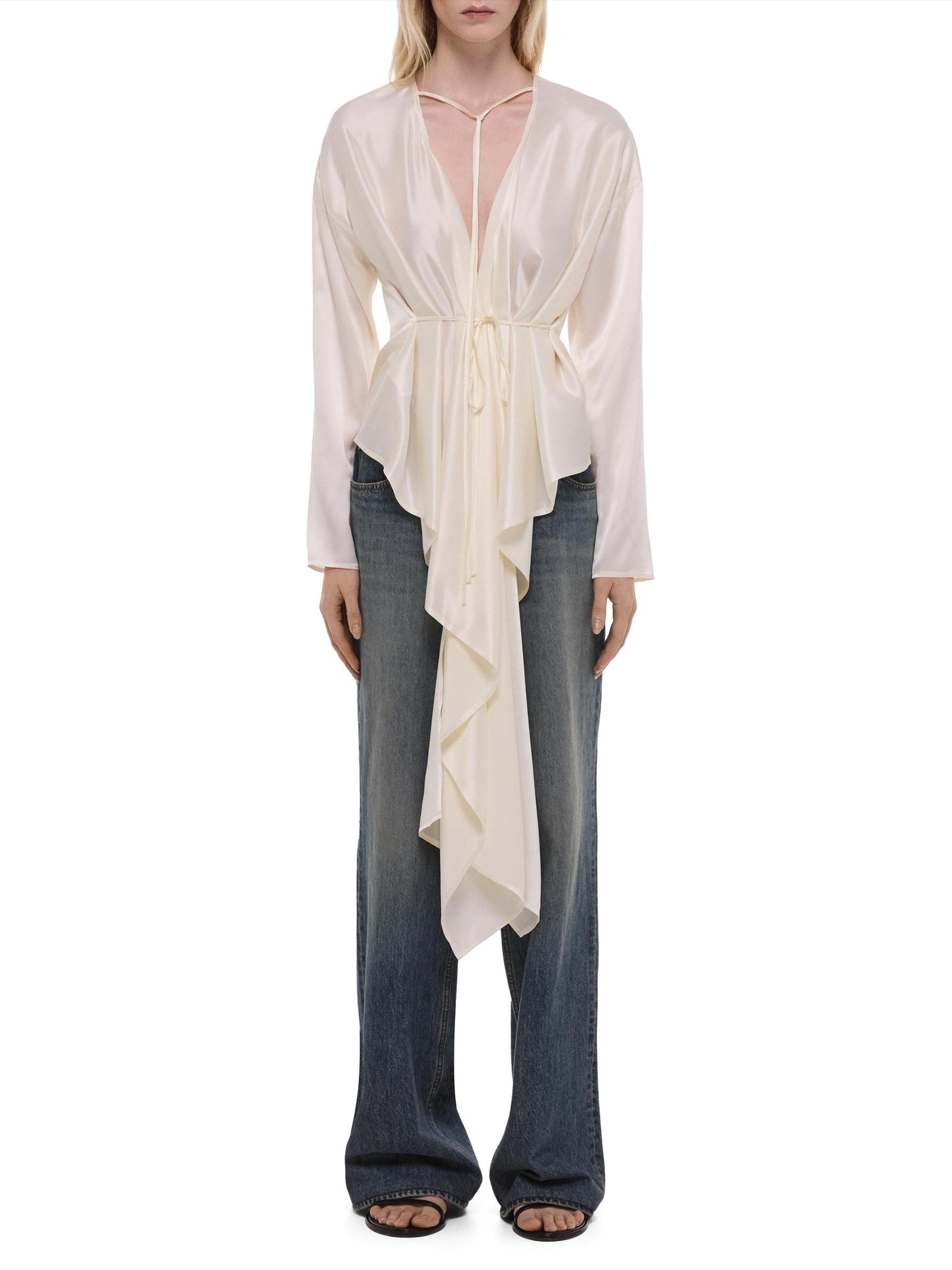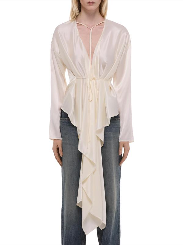 تتميّز هذه البلوزة من Helmut Lang بقصة مريحة وأكمام طويلة مصنوعة من الحرير مع تفاصيل الوشاح.