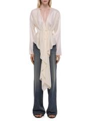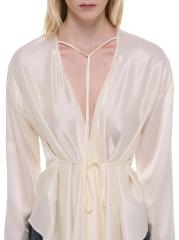تتميّز هذه البلوزة من Helmut Lang بقصة مريحة وأكمام طويلة مصنوعة من الحرير مع تفاصيل الوشاح.ربطة عنق أكمام طويلة حزام ربط ذاتي حرير بنسبة 100% تنظيف جاف مستوردة