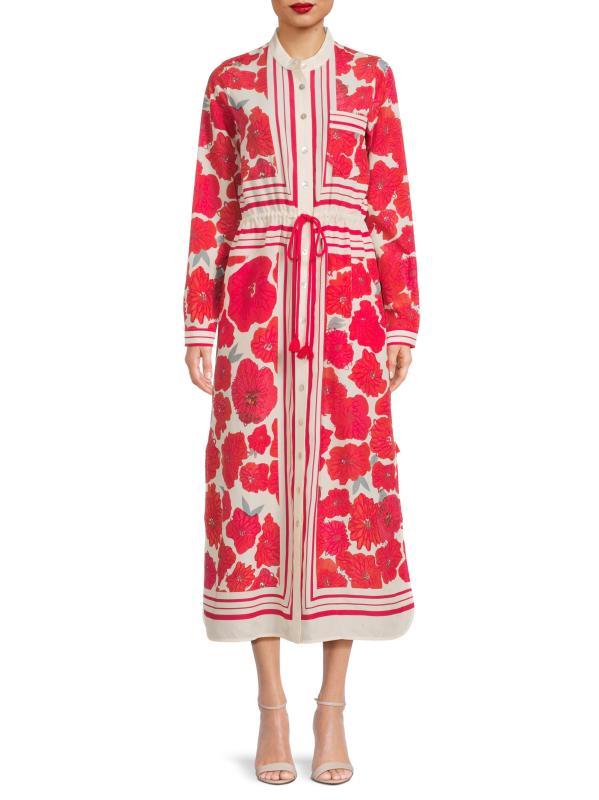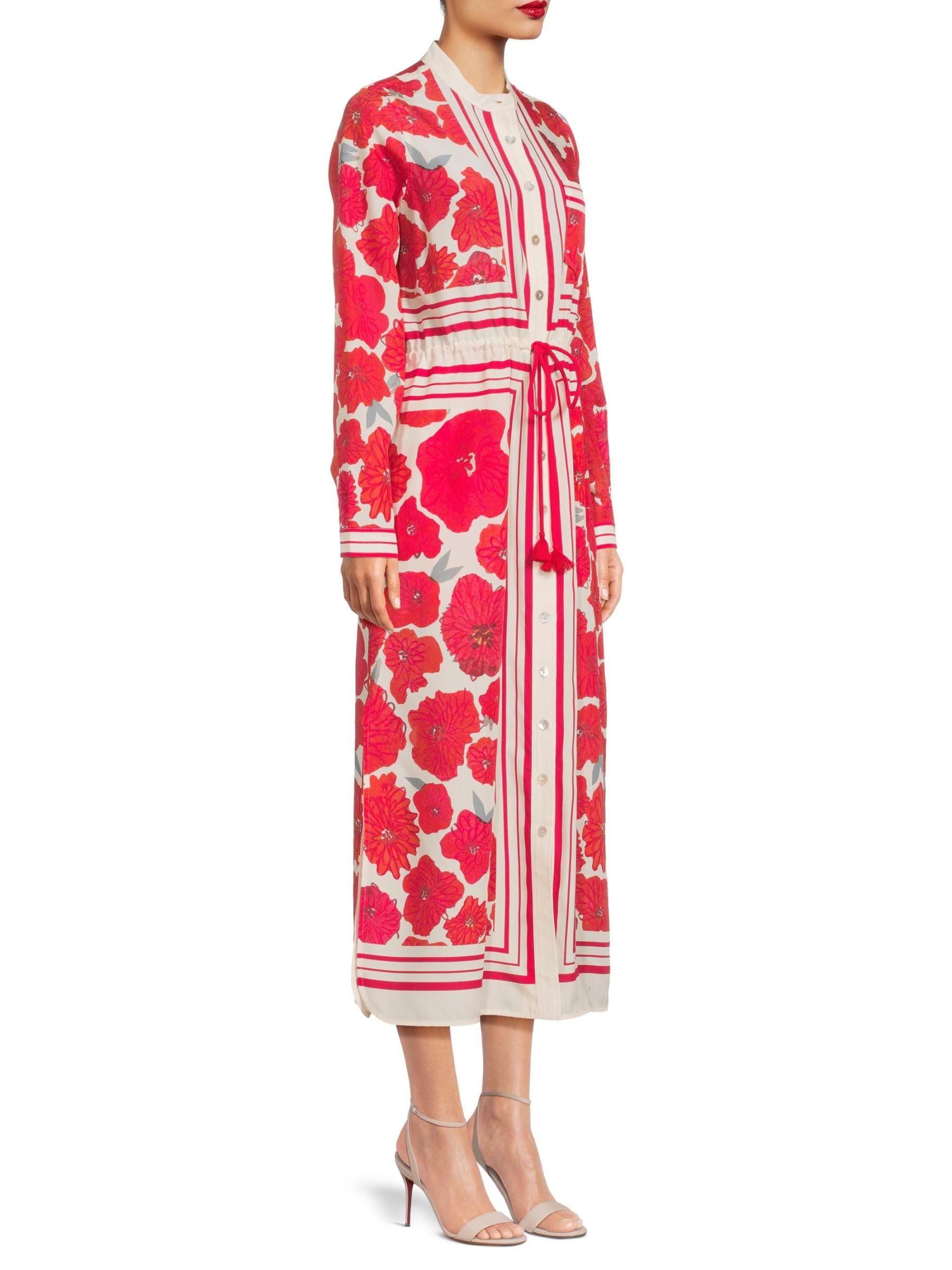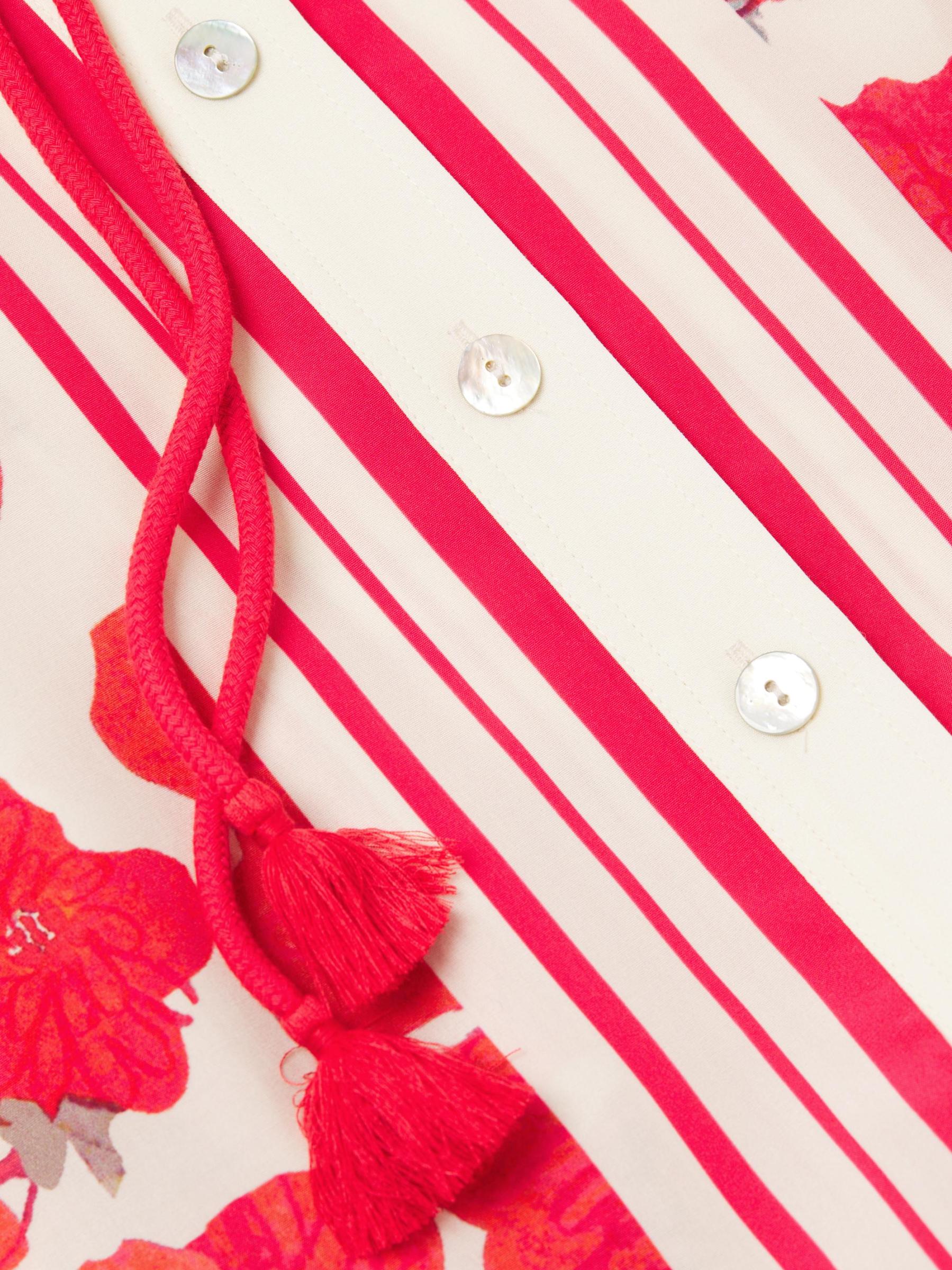 تم تصميم هذا القميص الساحر من Hope for Flowers بنقشة الخشخاش المتناثرة وخطوط الحدود. تتميّز هذه القطعة، المزوّدة برباط على الخصر، بياقة وسوار وأكمام طويلة.