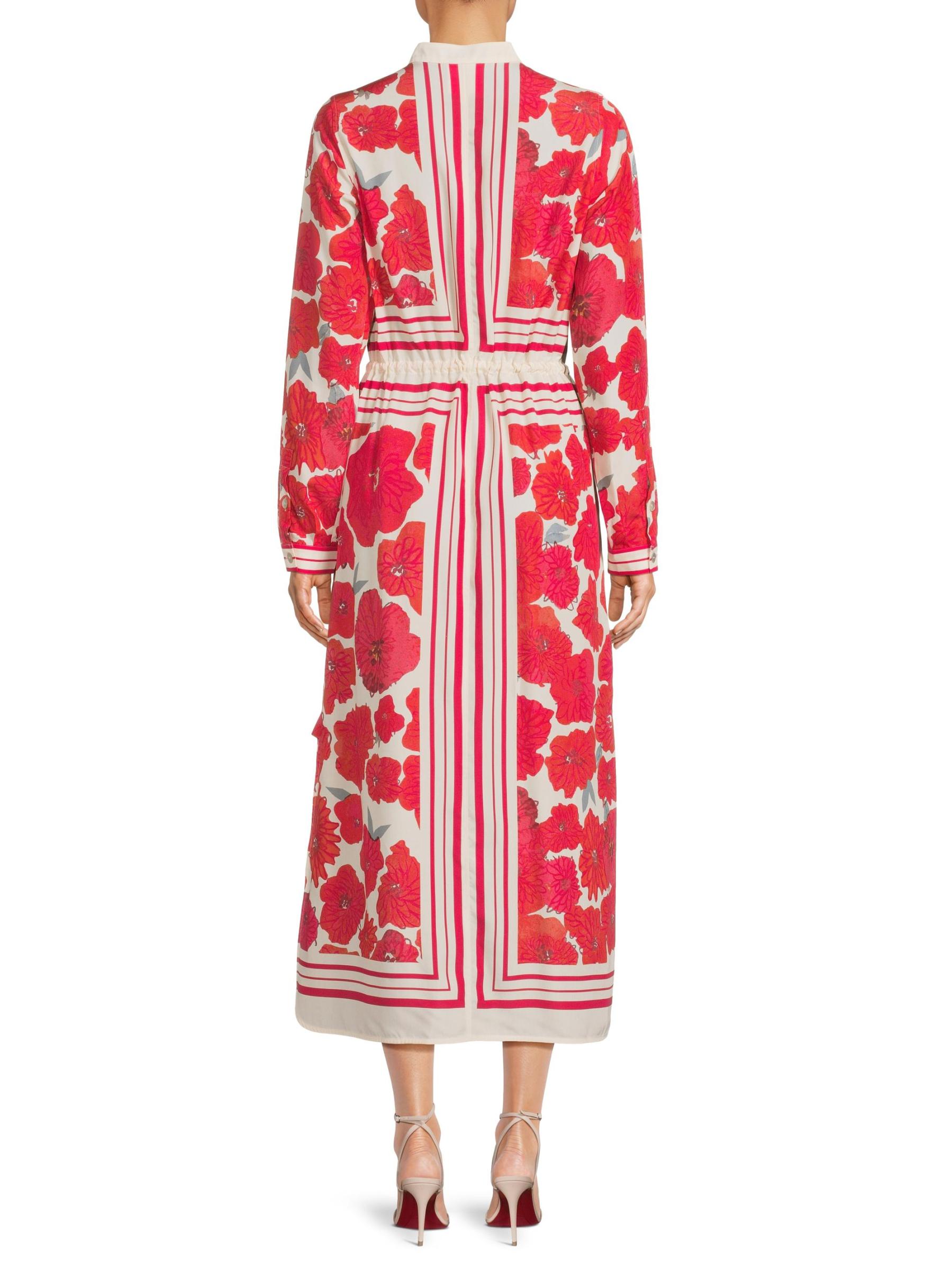 فستان برباط مزين بنقش الخشخاش المبعثر