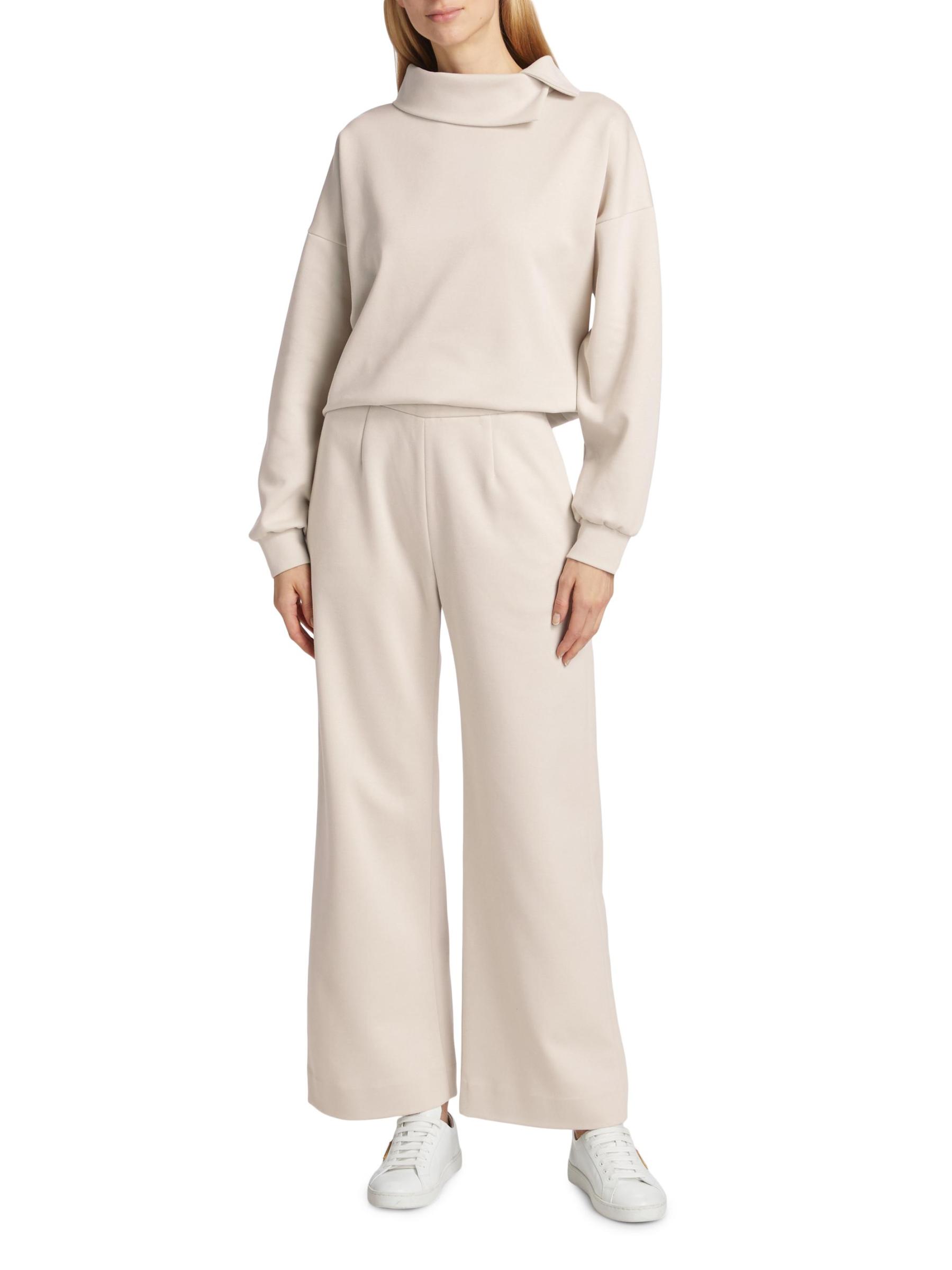 يتميز بنطال Barneys New York ذو الأرجل العريضة، المصنوع من مزيج سكوبا والقطن، بخصر مُحاط وجيوب جانبية منزلقة. يُغلق هذا الزوج بسحّاب جانبي.