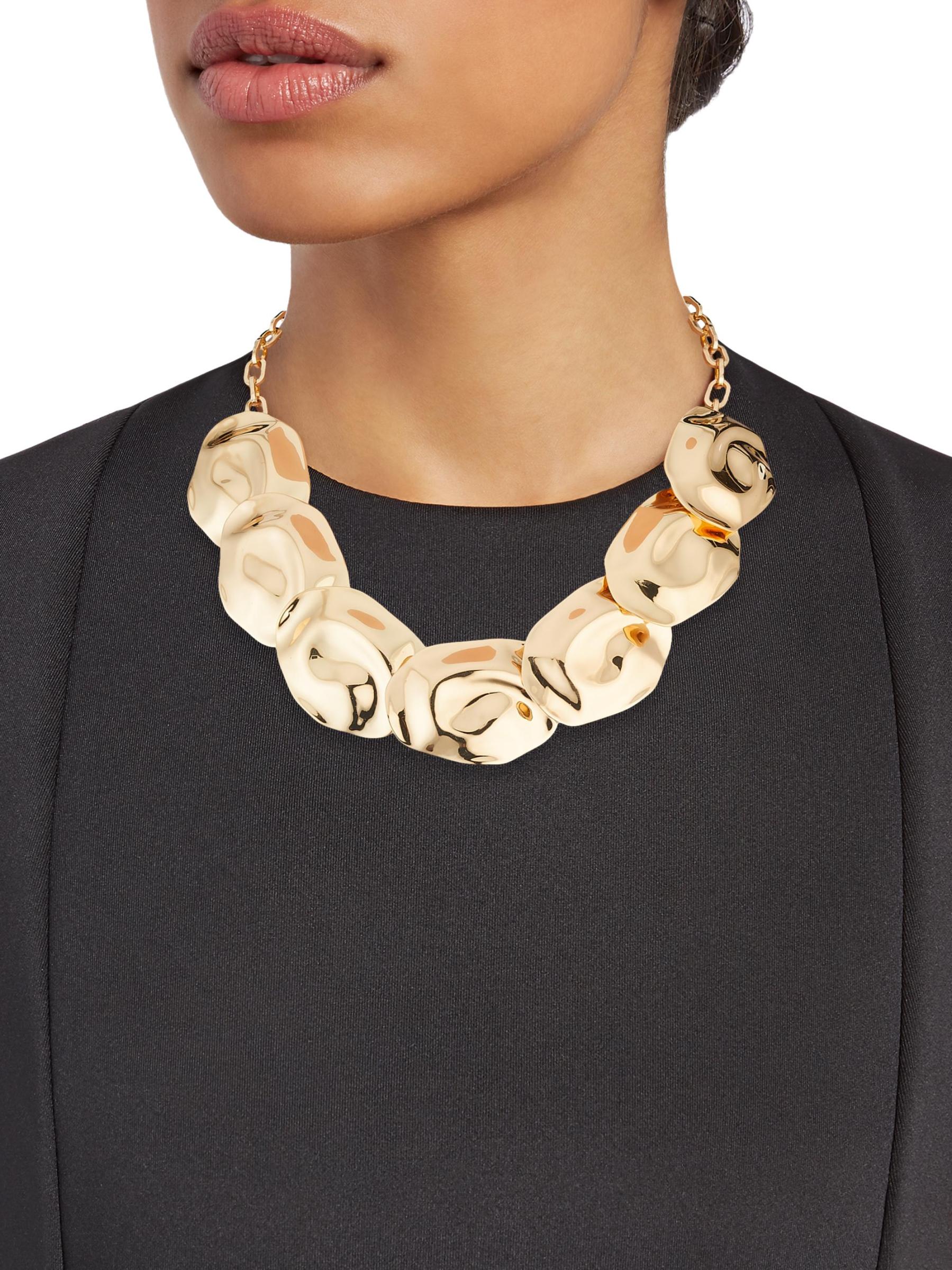 تتميز هذه القلادة المنحوتة من Carolina Herrera بزخارف تشبه الأزهار مصنوعة من المعدن المصقول باللون الذهبي.