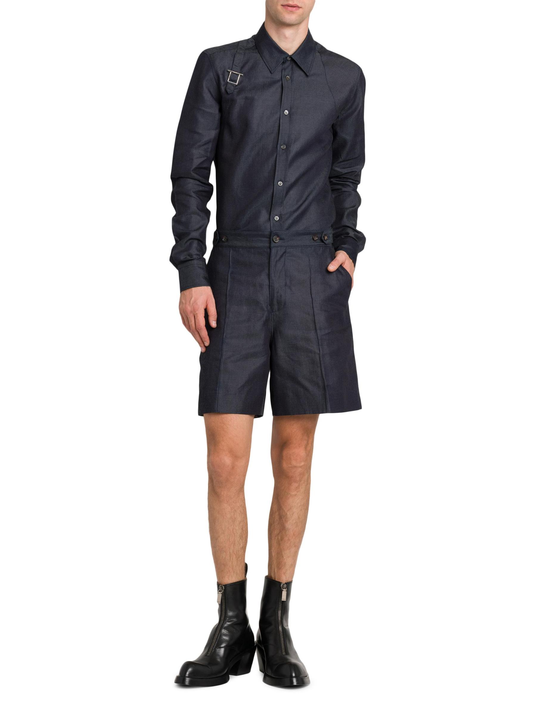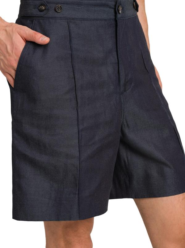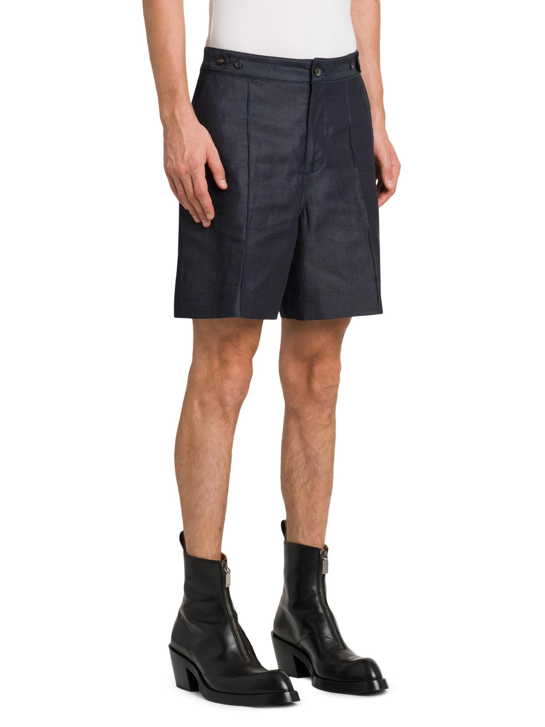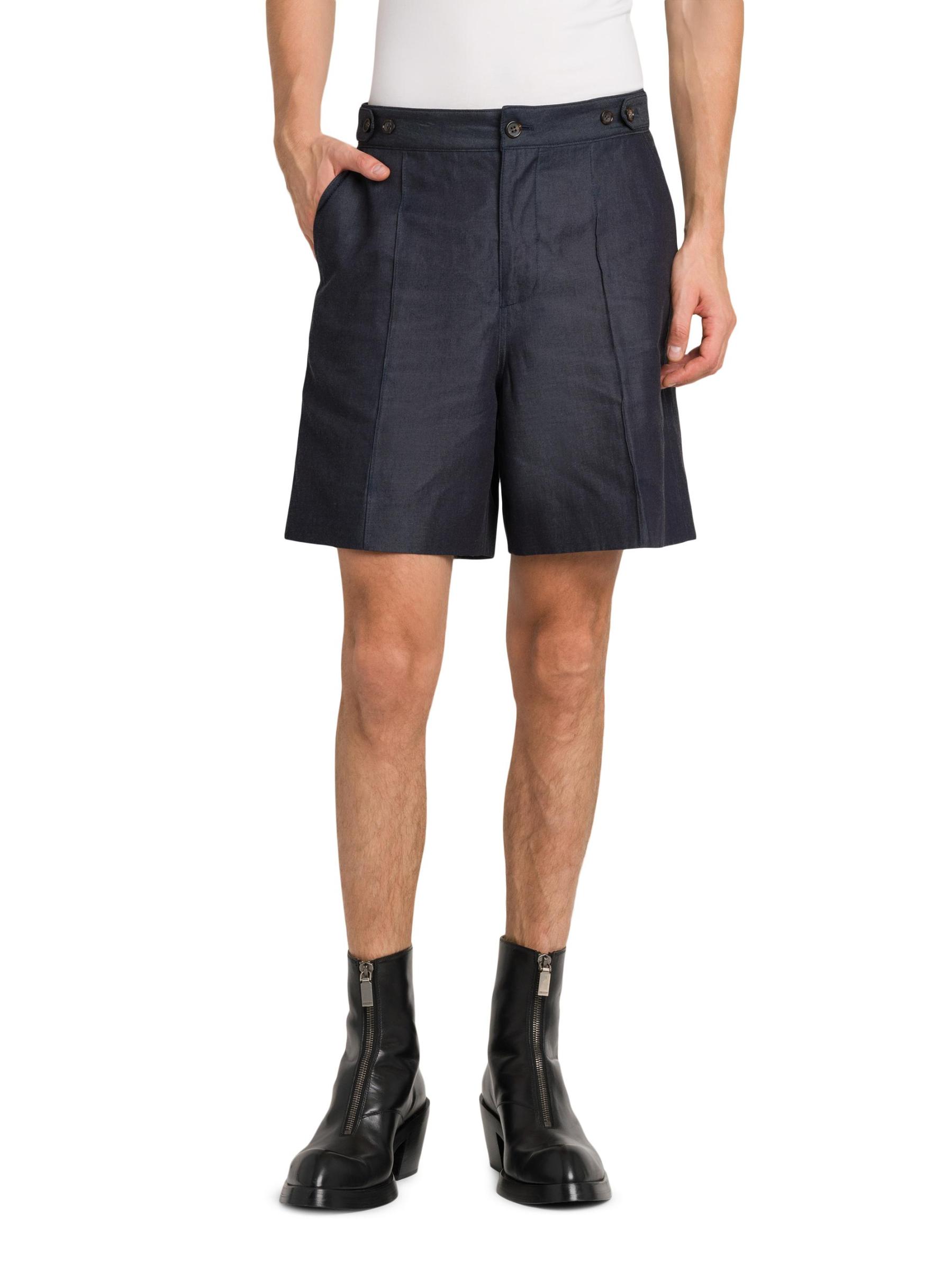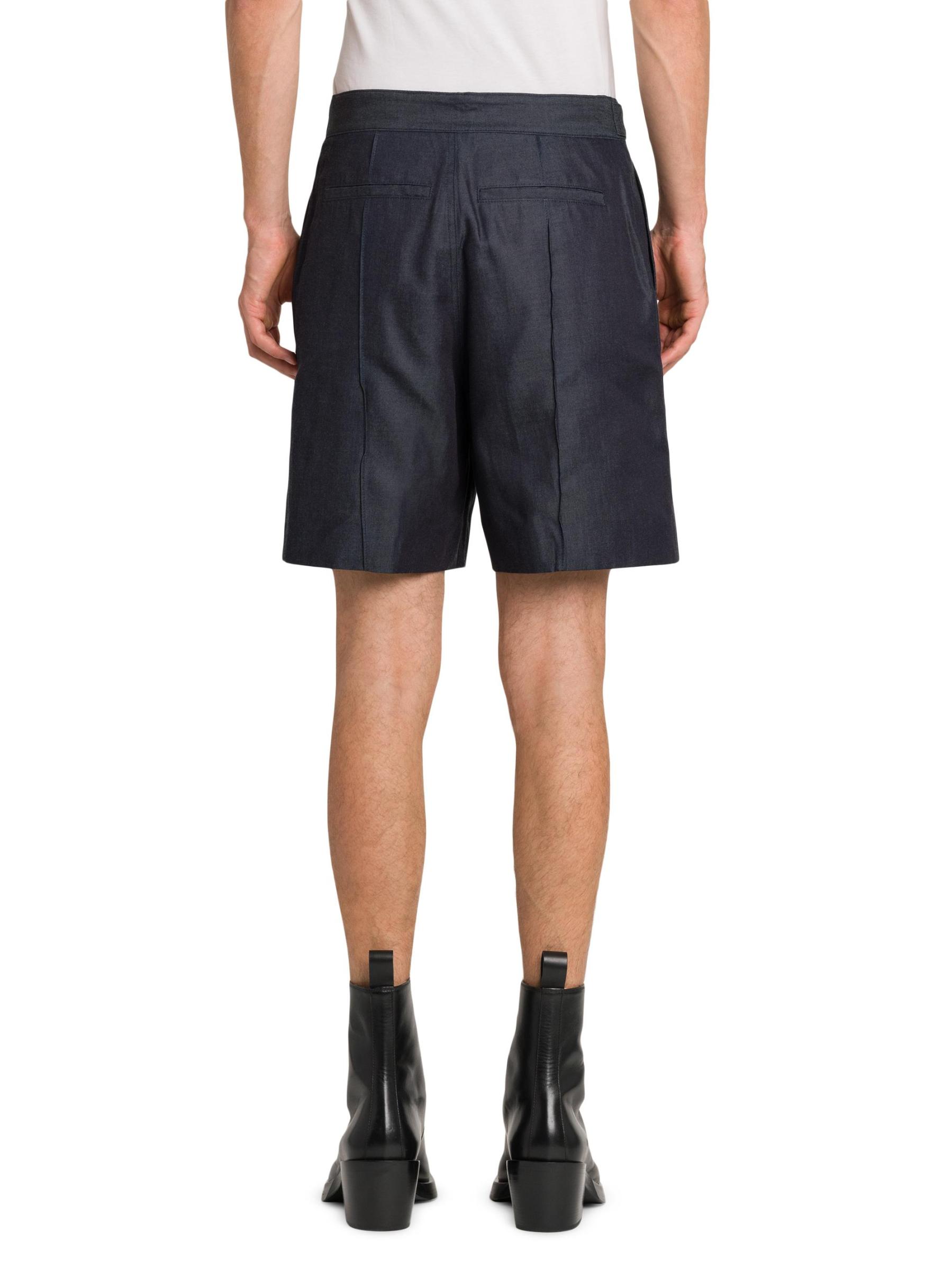 يتميز هذا الشورت من ماكوين، المصنوع من الدنيم المرن، بتصميم مخيط من الأمام، ومزيّن بأحزمة الخصر، وجيوب جانبية مائلة، وجيوب خلفية ضيقة.واجهة التماس أدوات ضبط حزام الخصر بأزرار جيوب جانبية جيبان خلفيان إغلاق بسحّاب مزوّد بخطاف وقضيب 61% قطن/ 39% ليوسيل تنظيف جاف صُنع في إيطاليا