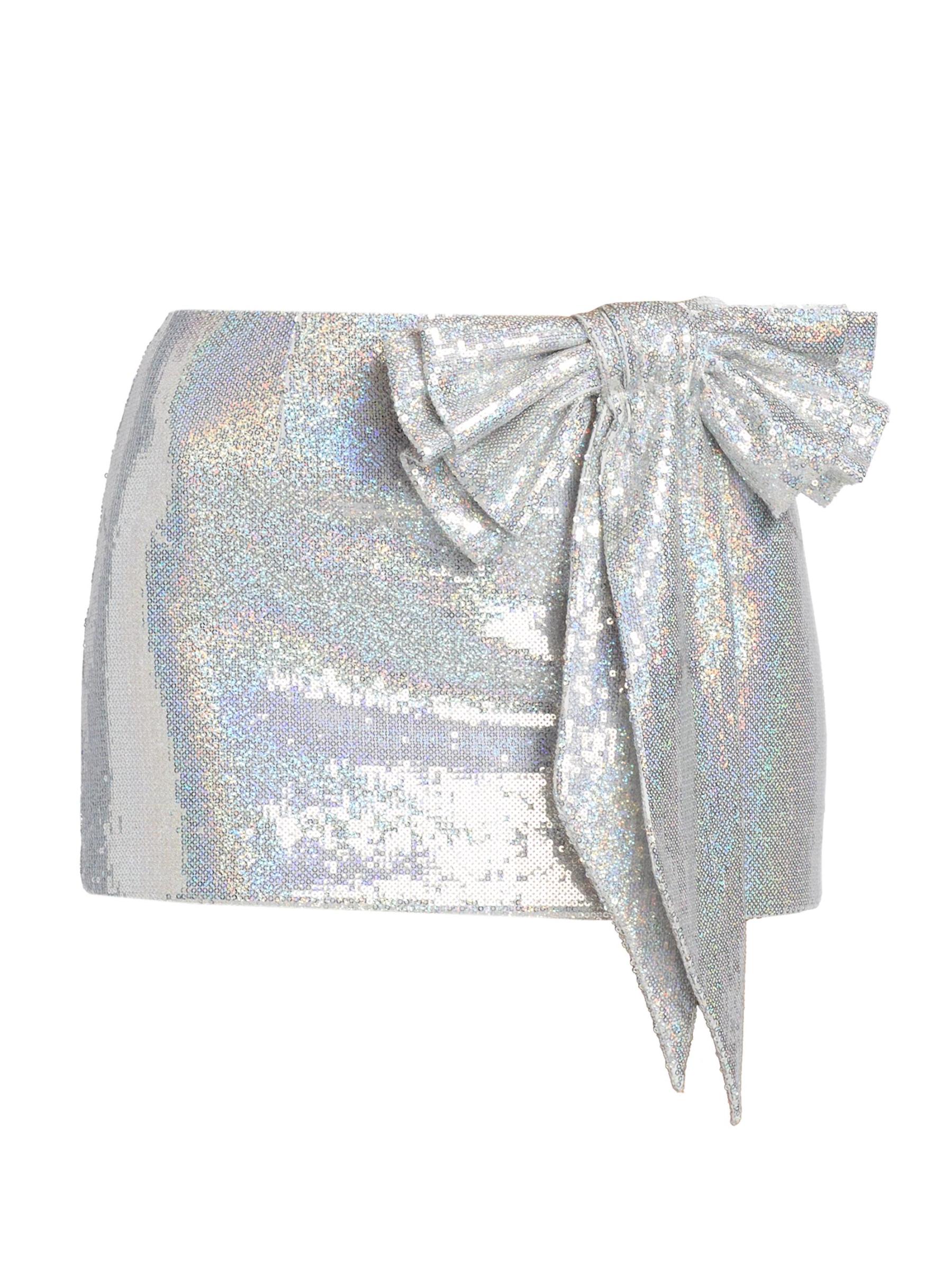 تنورة قصيرة صغيرة مزينة بقوس مزين بالترتر