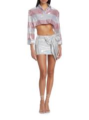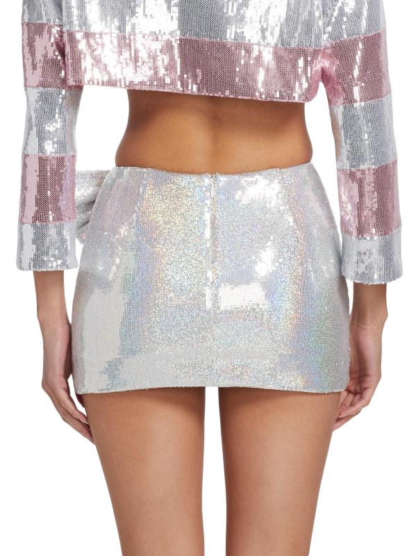 يتوسع المصمم كريستيان كوان المولود في كامبريدج في جماليته الفائقة هذا الموسم بقوس قزح من الألوان الزاهية والصور الظلية الضخمة. تزين الترتر والريش ونقشة جلد الفهد كل شيء من الفساتين القصيرة المقصوصة إلى الفساتين ذات التنورة الكاملة في هذه المجموعة المبهجة الجاهزة للحفلات من مصمم الأزياء الإنجليزي. تم تزيين هذه التنورة القصيرة الصغيرة بالترتر الهولوغرافي وتم تشطيبها بفيونكة مميزة.إغلاق بسحّاب خلفي مخفي 100% بوليستر مبطّن تنظيف جاف فقط صُنع في الولايات المتحدة الأمريكية