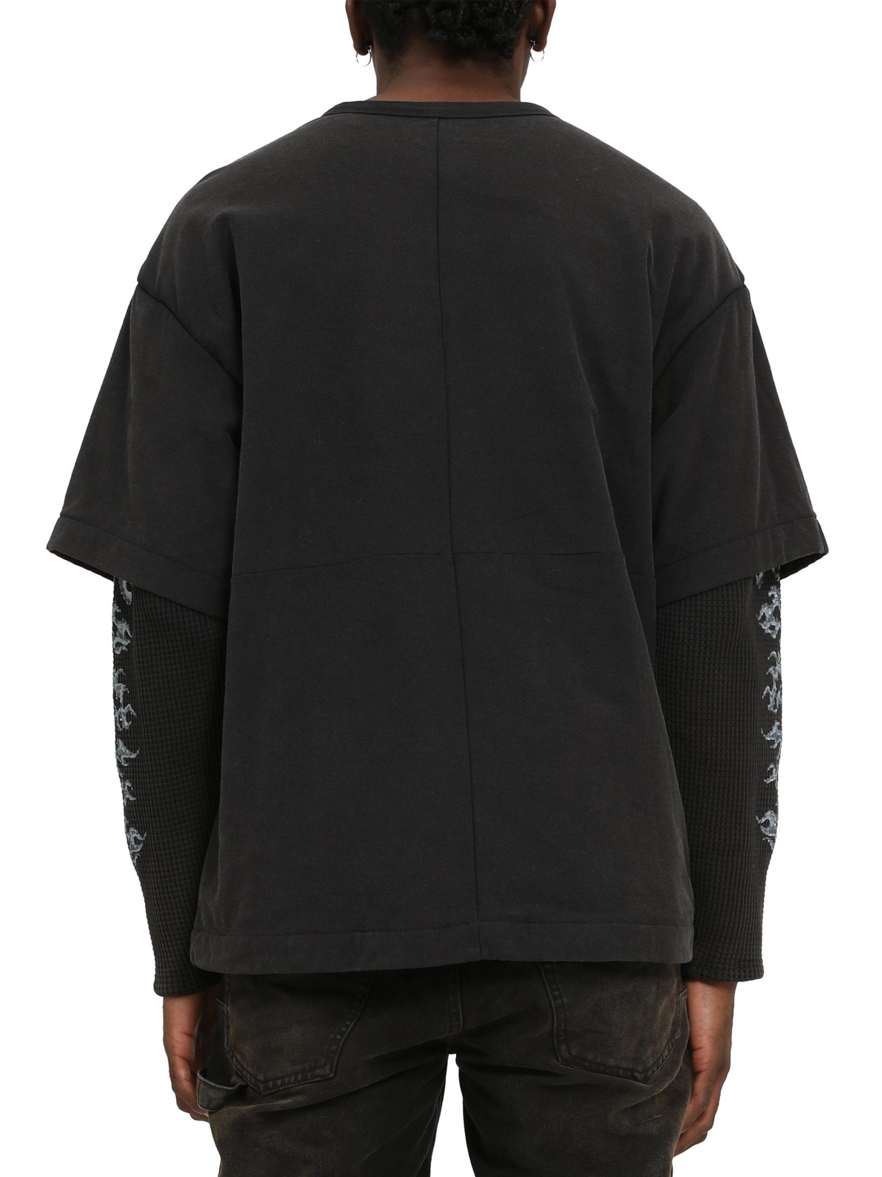 تم تصميم هذا التيشيرت ذو الحجم الكبير من Purple Brand بأكمام قصيرة على نمط وافل محبوك بأكمام طويلة ومزين بالترتر.رقبة مستديرة أكمام طويلة تسحب قطن بنسبة 100% يُغسل في الغسالة مستوردة
