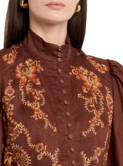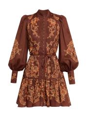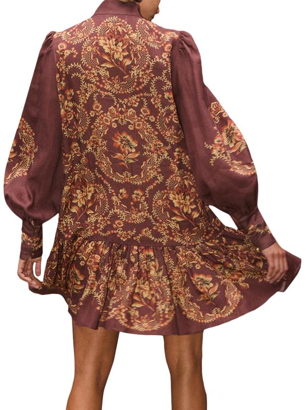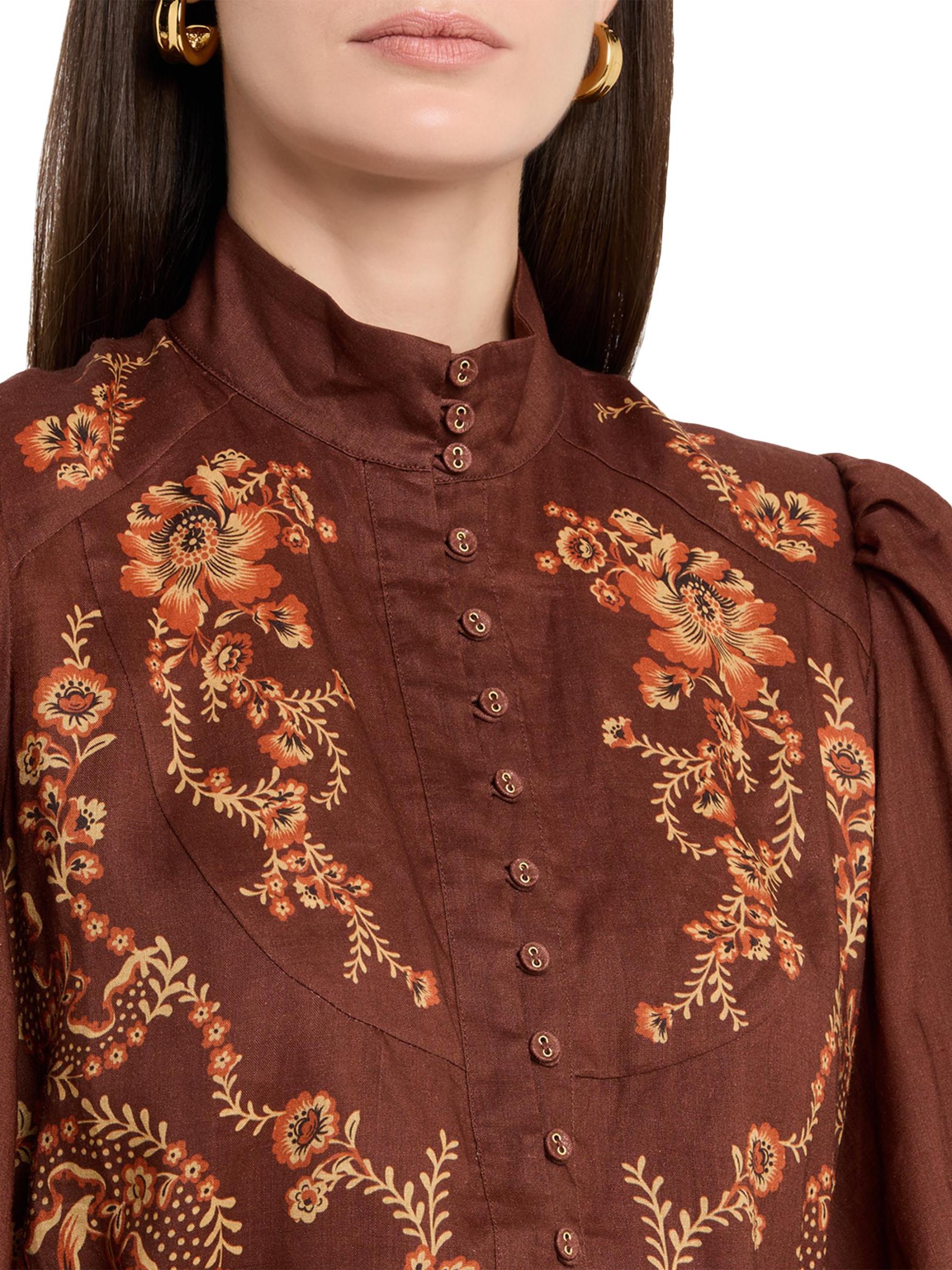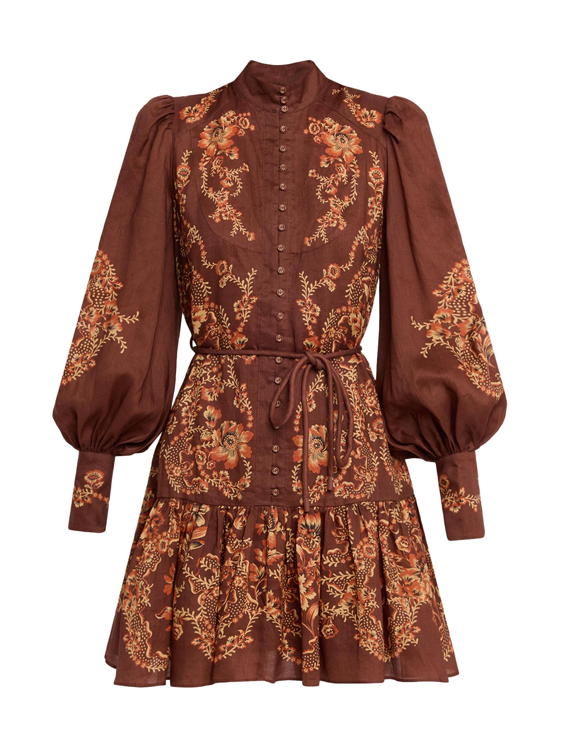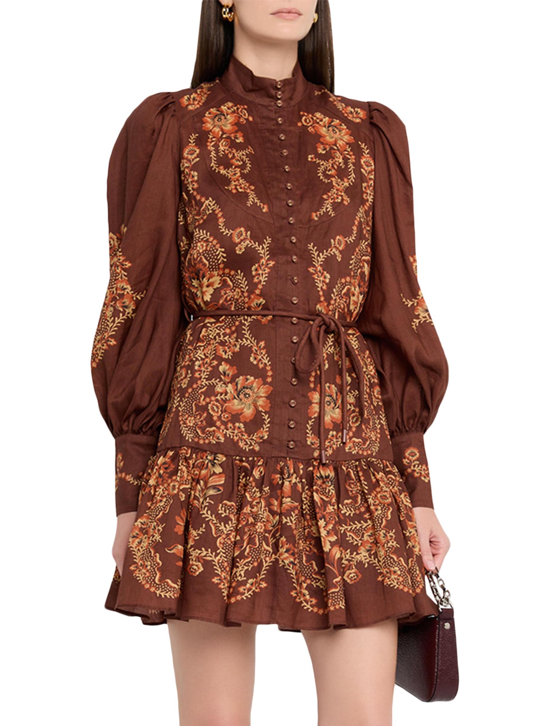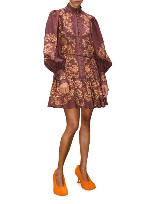 يتميز فستان سيرافينا القصير بأزرار أمامية من Alémais بنقشة زهور هادئة وأكمام بالون وتنورة متدرجة على شكل حرف A.