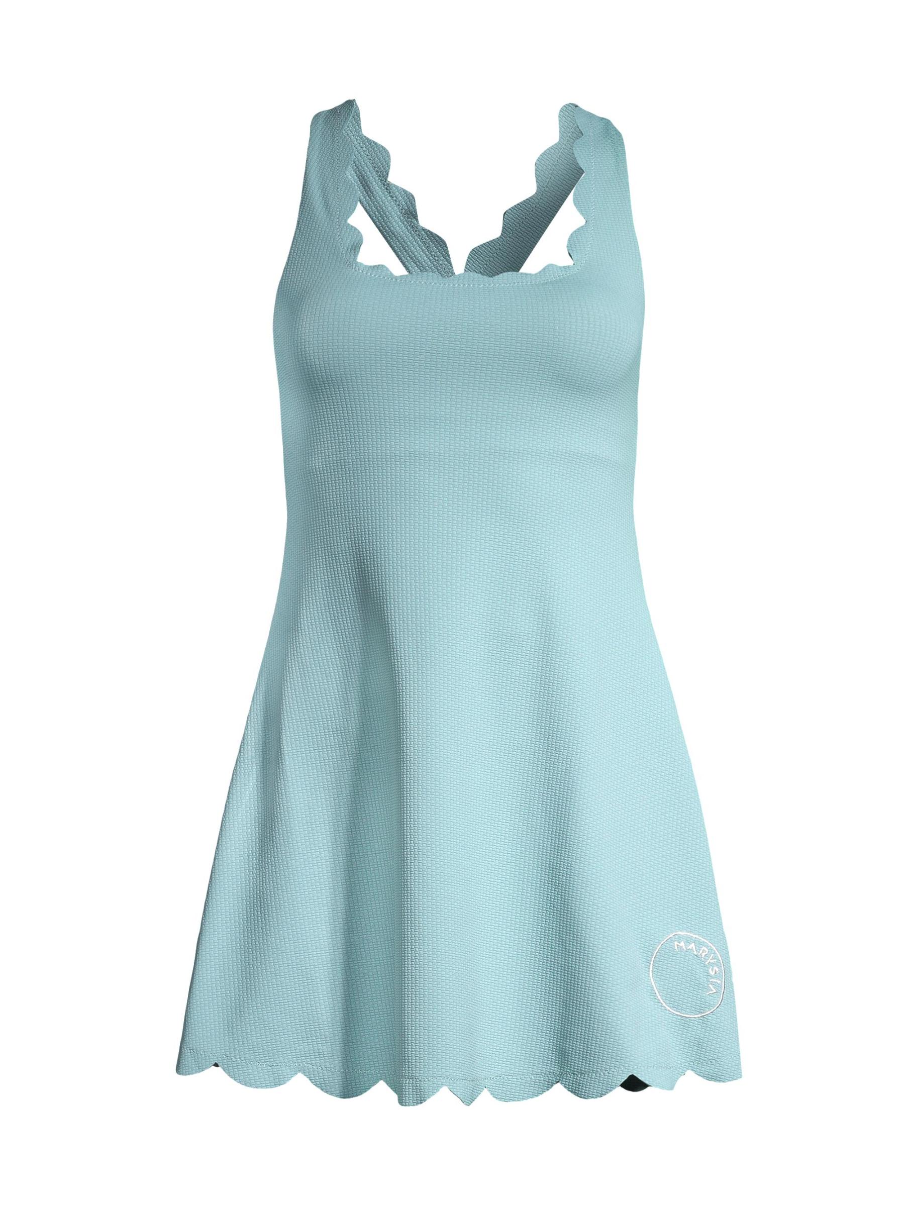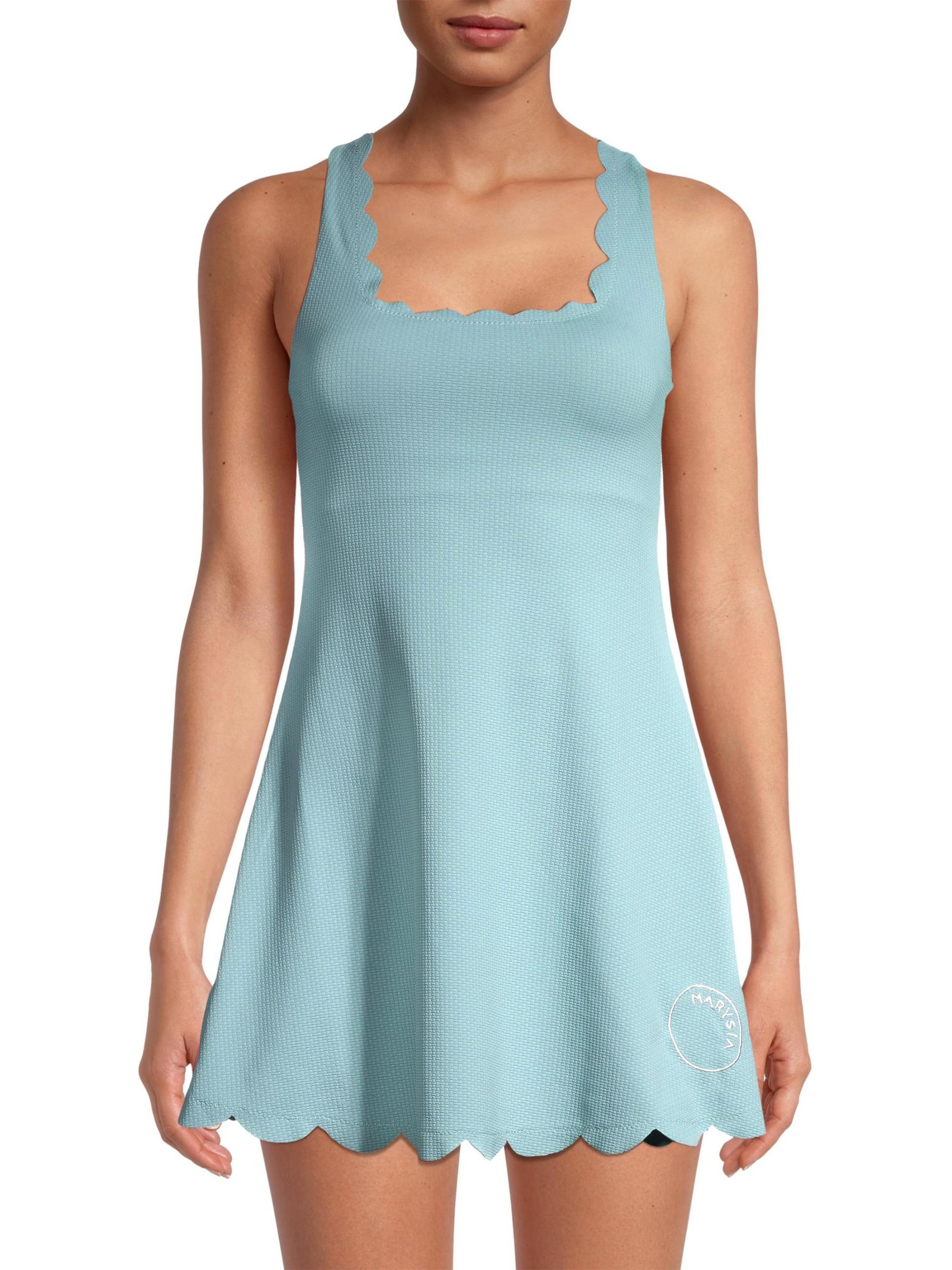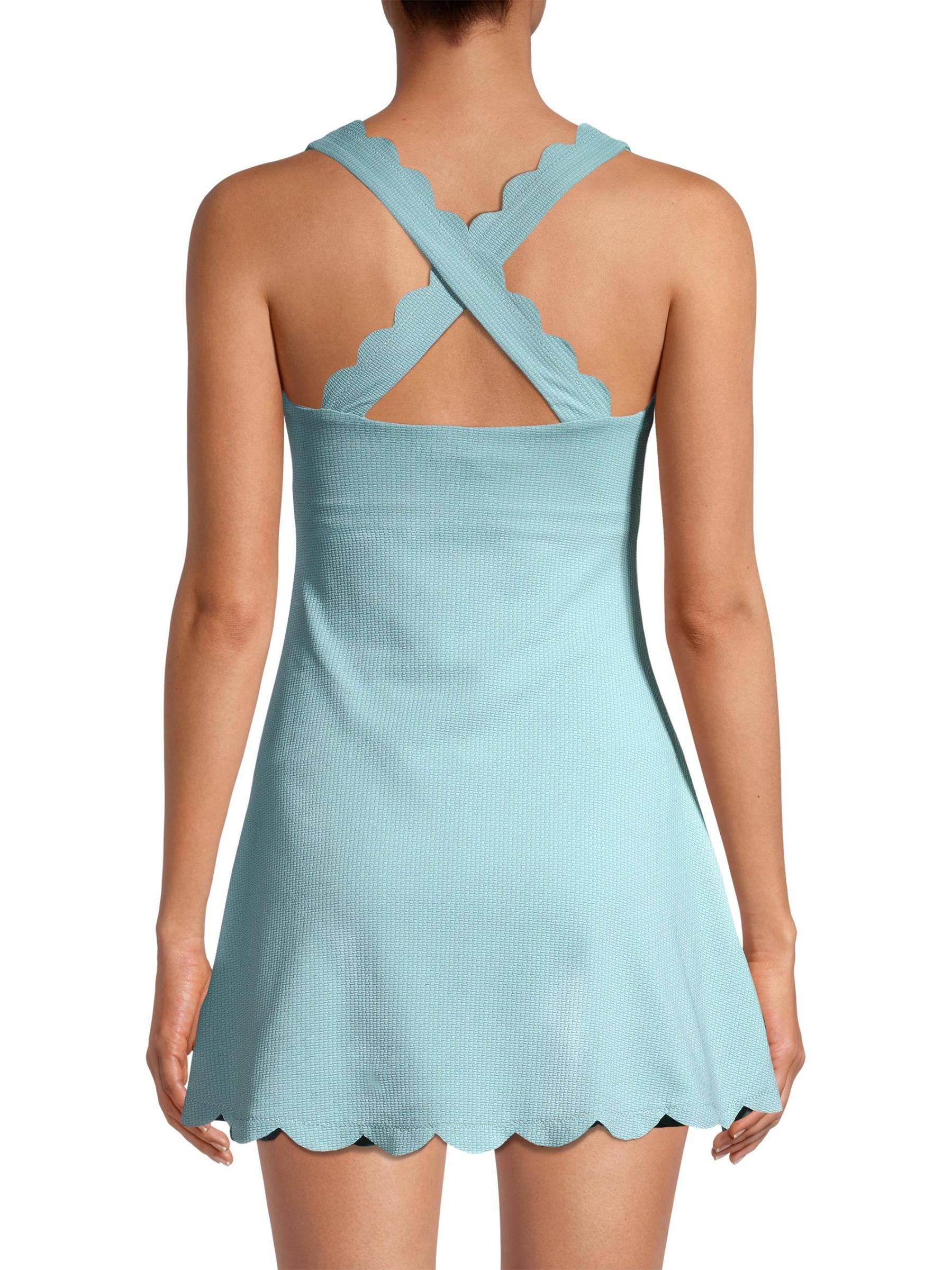 يكتمل هذا الفستان القصير المحبوك بزخرفة الإسكالوب مع شورت مدمج وتطريز العلامة التجارية على الحافة الأمامية.رقبة مربعة بدون أكمام كروس كروس باك تقليم الإسكالوب مبطّن 88% بولياميد/ 12% إليستين يُغسل في الغسالة مستوردة