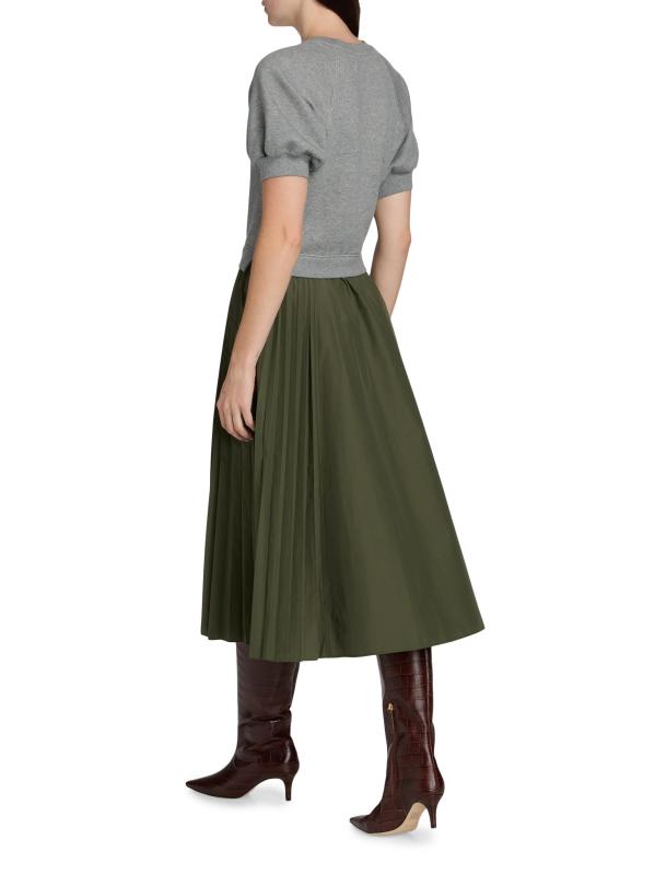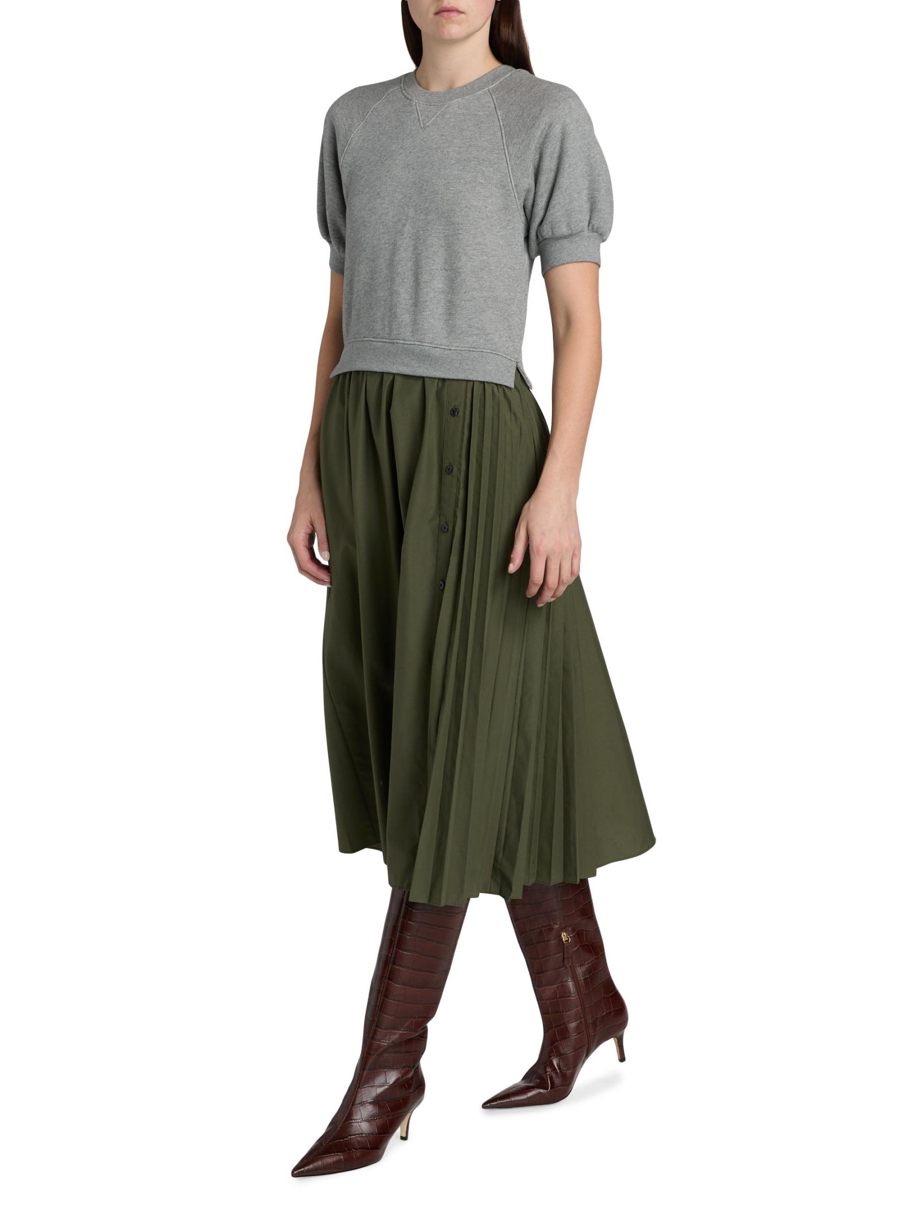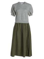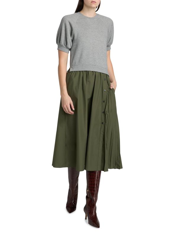 يتميّز فستان Shayna متوسط الطول من Tanya Taylor والمصنوع من قماش التيري المختلط والمصنوع من القطن المزوّد بصدّار مريح بأكمام قصيرة وتنورة بأزرار أمامية. تم تصميم هذه القطعة برقبة دائرية كلاسيكية وغرزة على شكل حرف V وطيات.