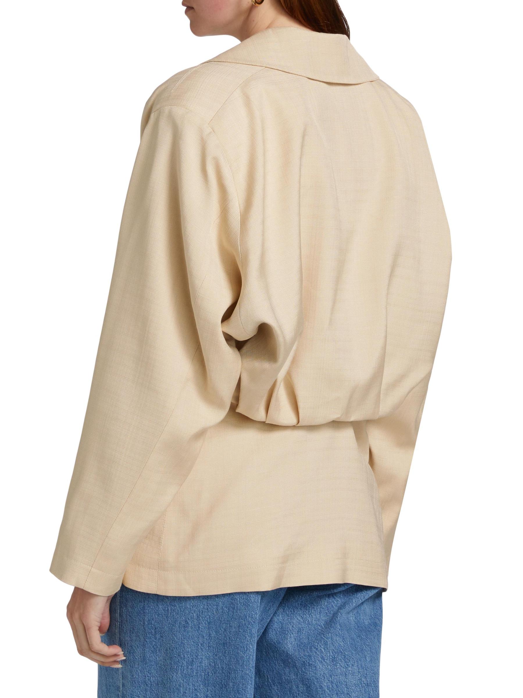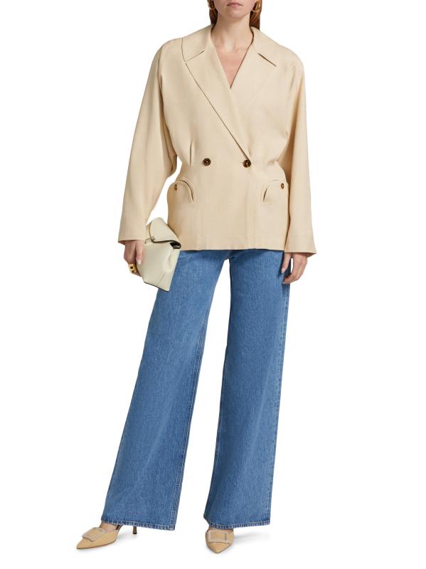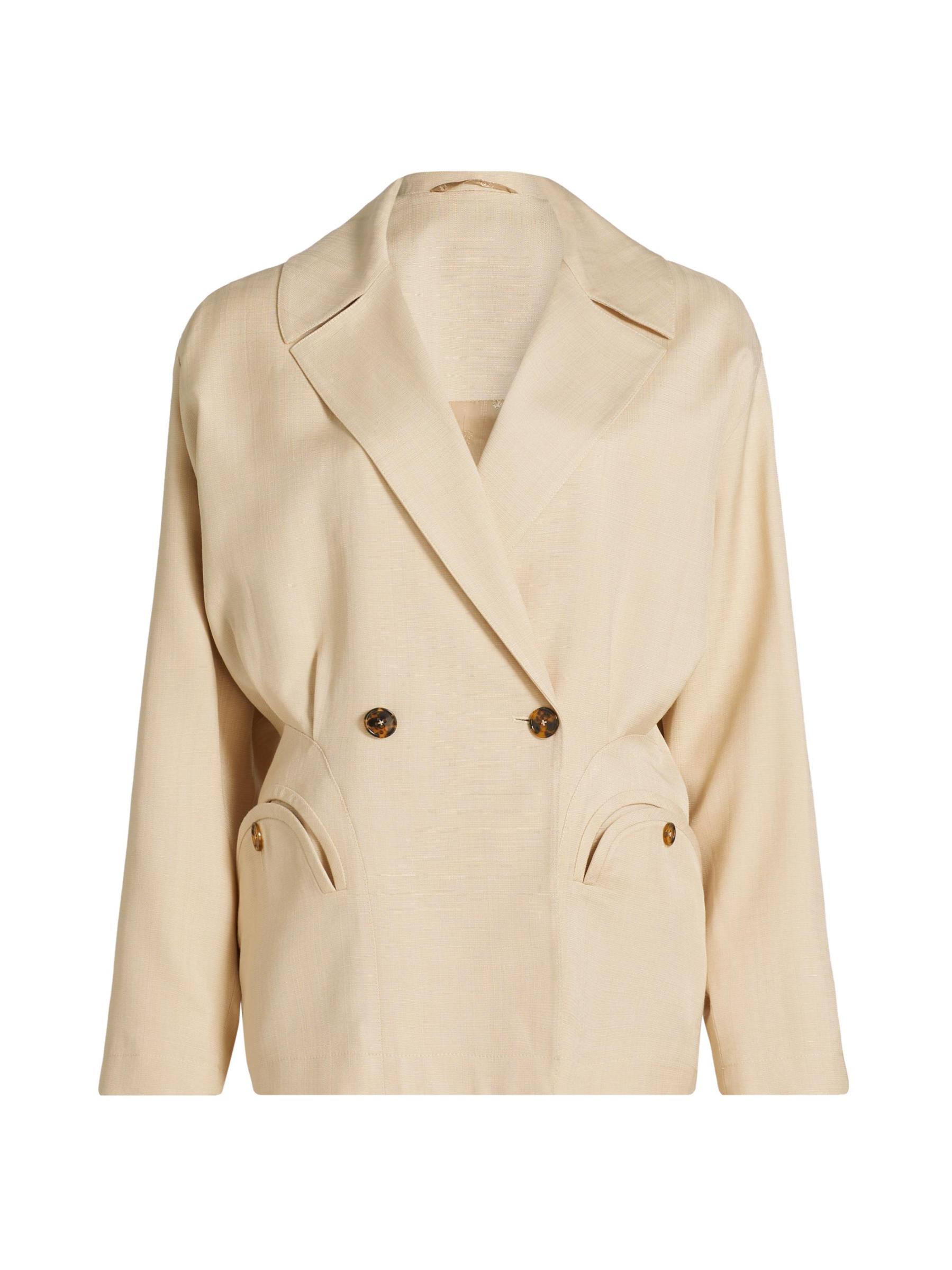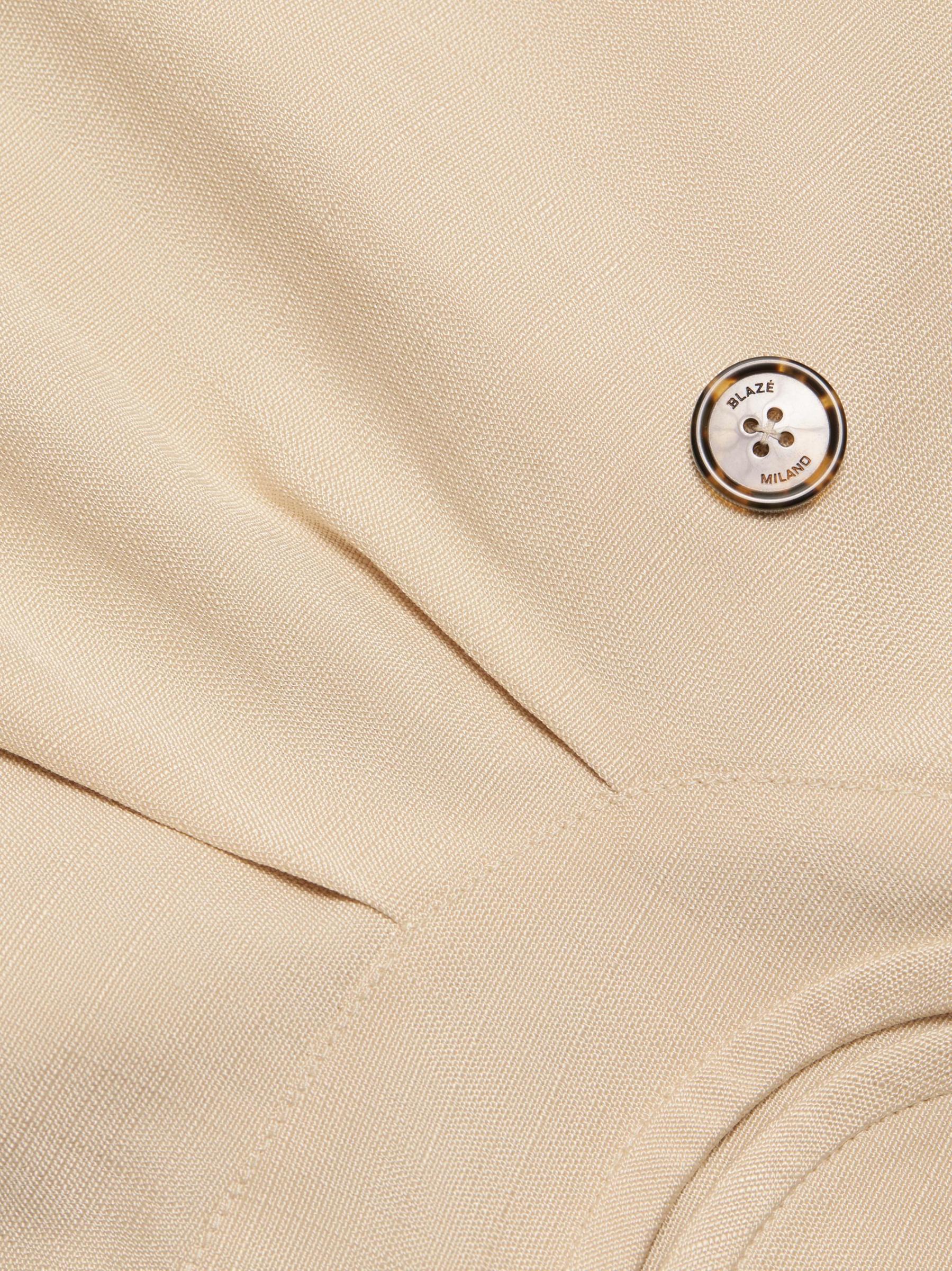 تتميّز سترة Sheena Ares من Blazé-Milano، المصنوعة في إيطاليا، بتصميم يشبه الخندق، وتتميز بإغلاق مزدوج الصدر وطية صدر مشقوقة. تم تعزيز هذه القطعة المتطورة من خلال الجيوب المنحنية المميزة للعلامة التجارية.