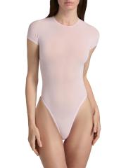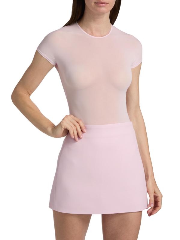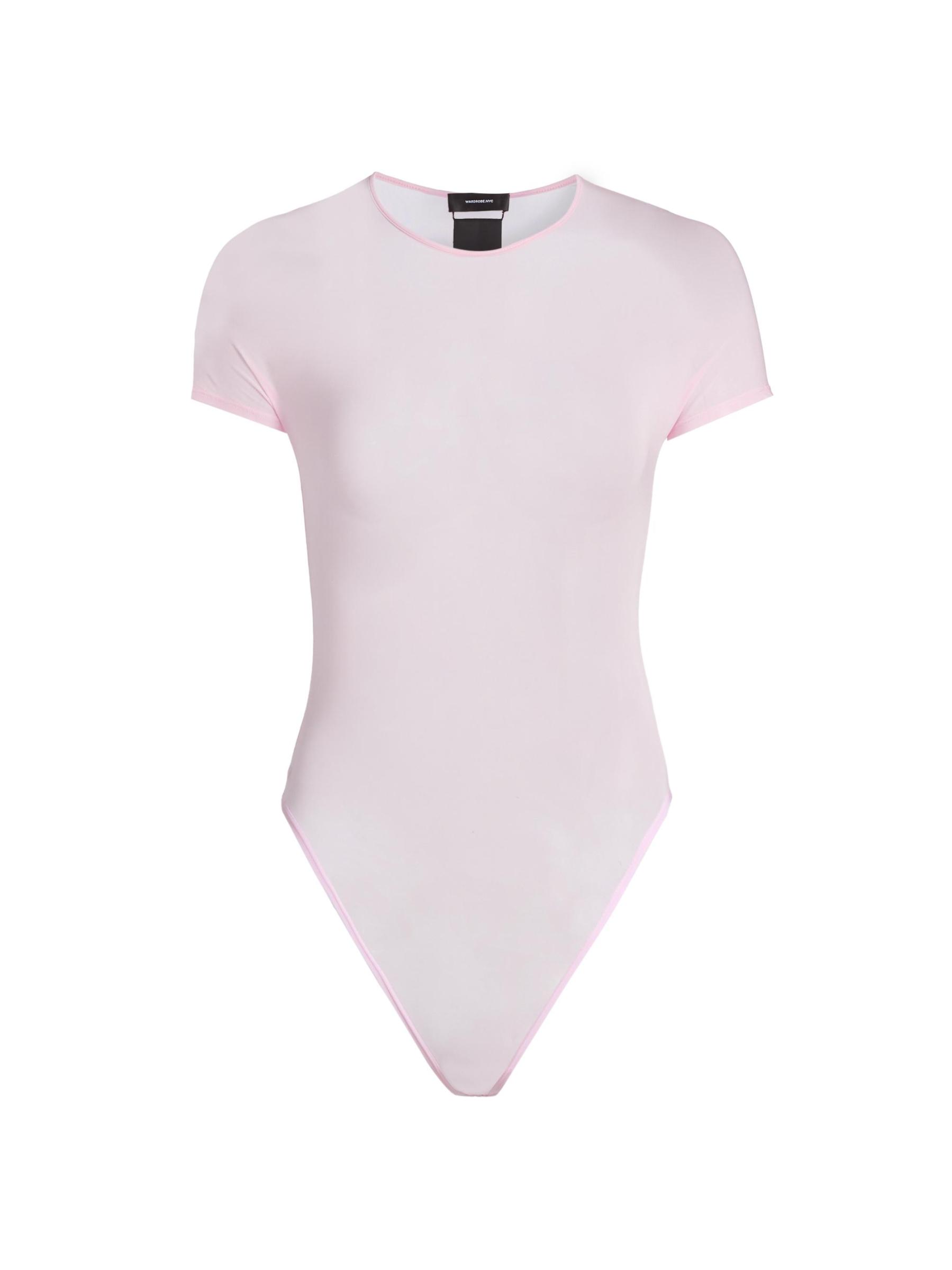 تتميز بدلة WORDROBE.NYC المصنوعة من نسيج شفاف إيطالي الصنع برقبة مستديرة وأكمام على شكل قبعة وظهر ثونغ.
