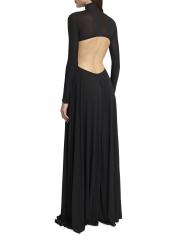 صُنع هذا الجمبسوت من Alaïa من نسيج شفاف، ويتميز بياقة عالية وظهر مفتوح وأرجل واسعة للغاية.