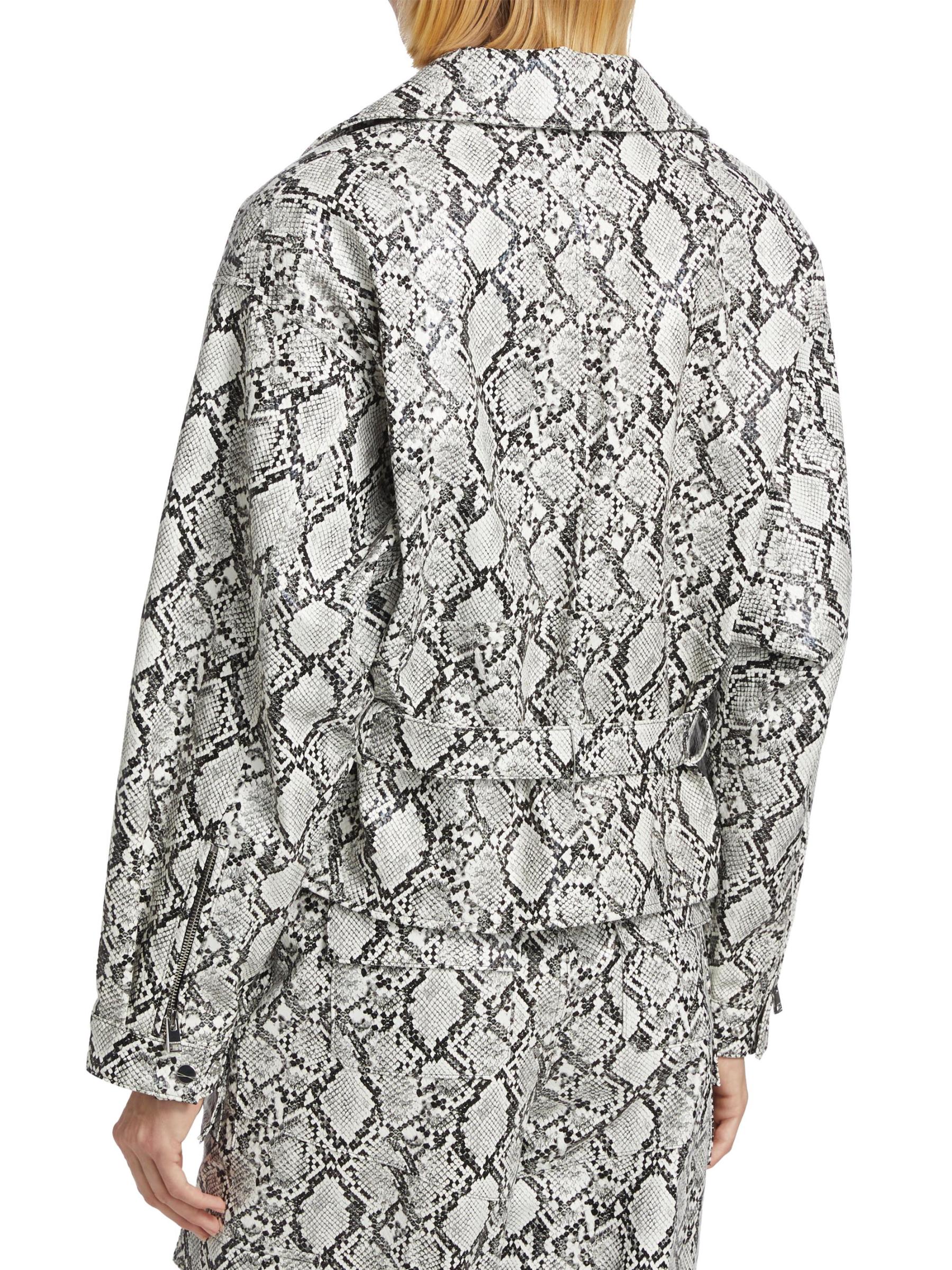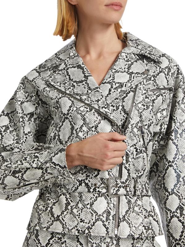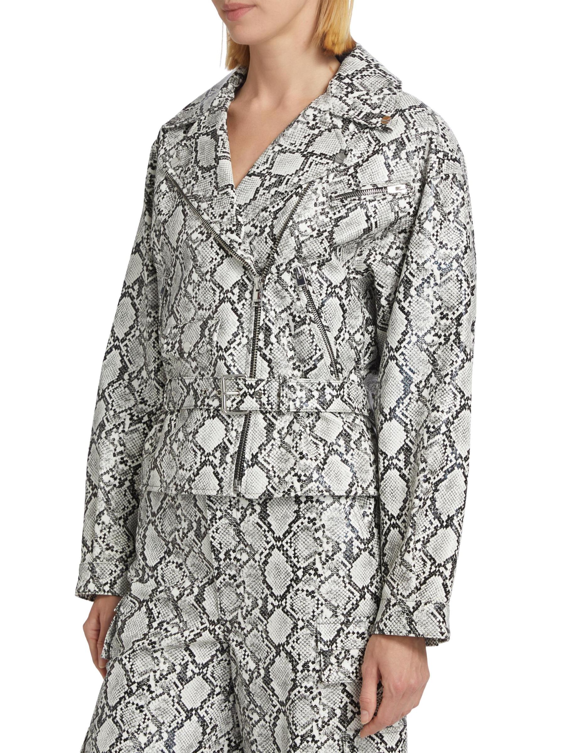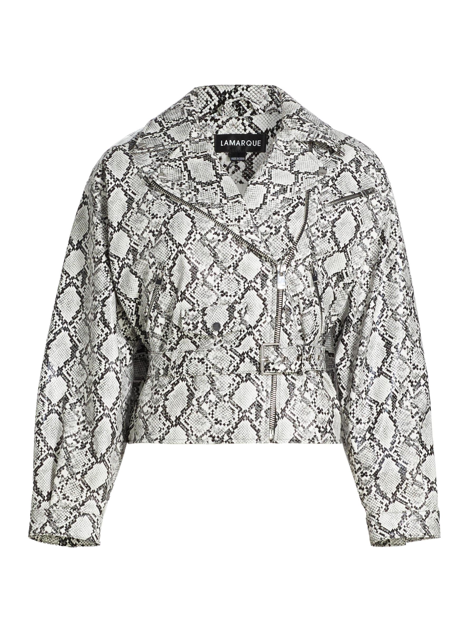 تتميّز سترة Lamarque Shelia هذه، المُصممة من الجلد الصناعي بنقشة جلد الثعبان، بتصميم راكب الدراجة النارية مزيّنة بحزام مشبك.