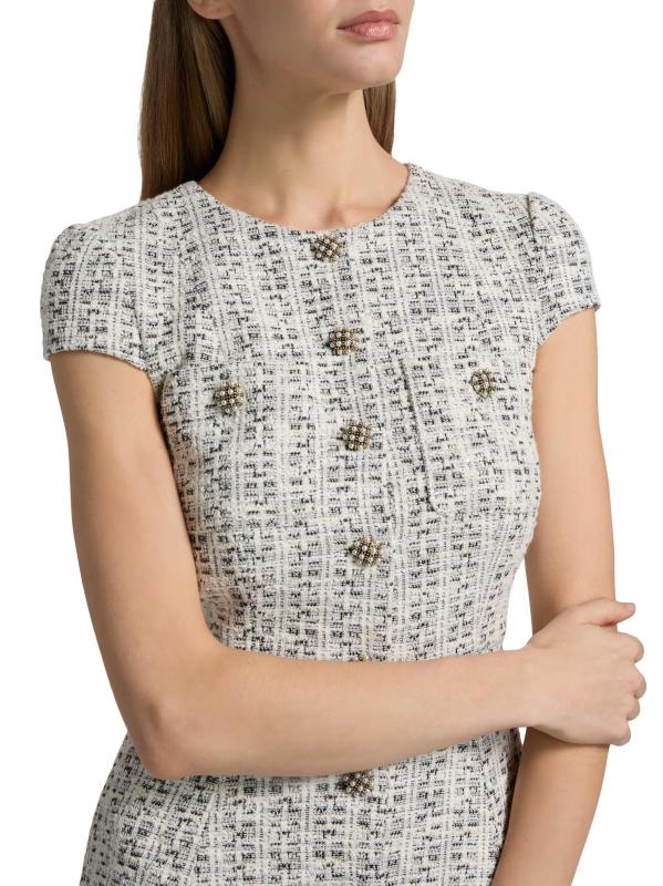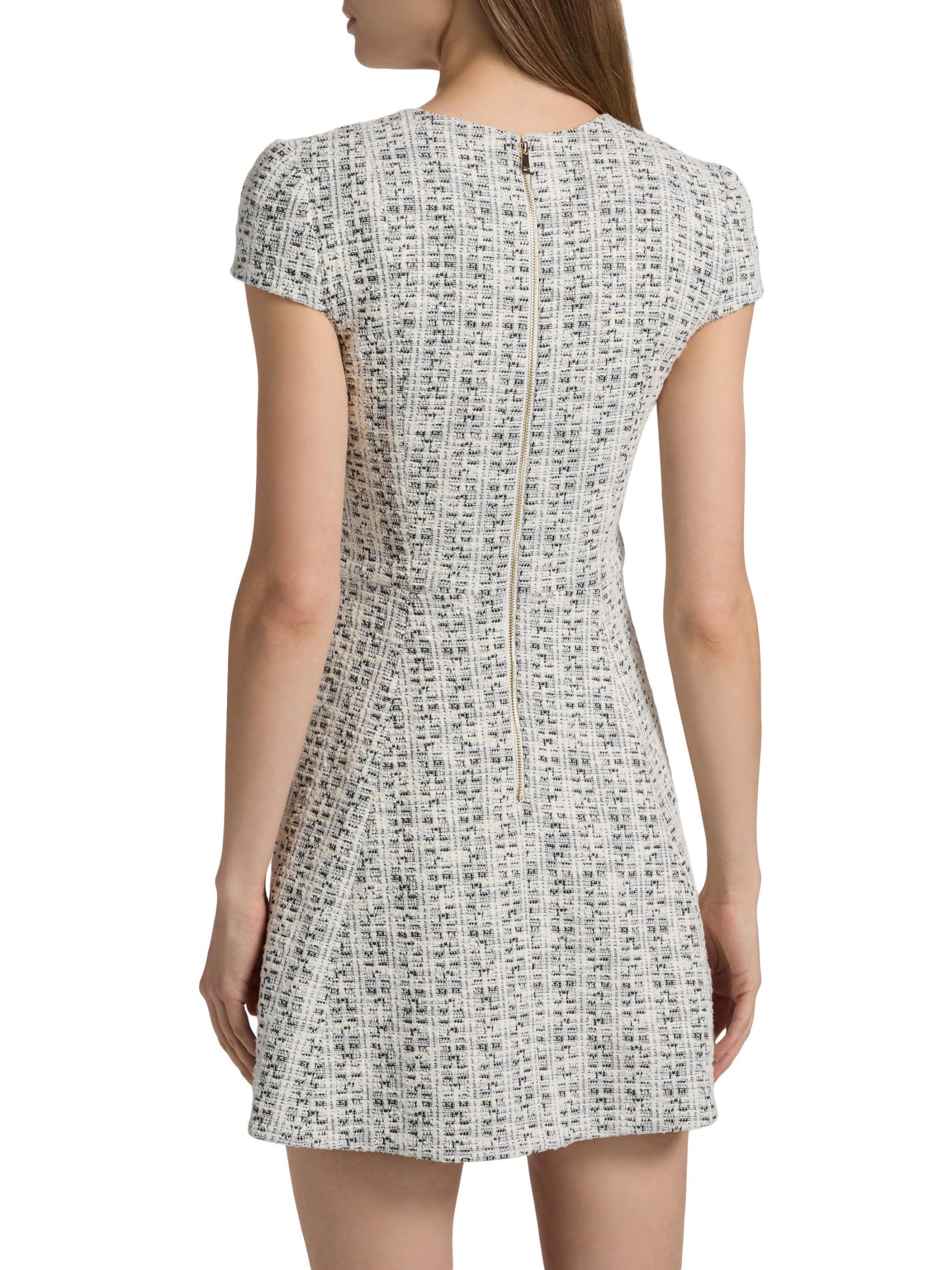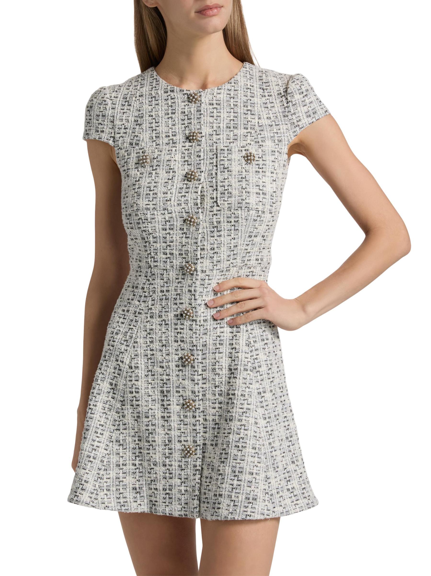 صُمم فستان Shiloh القصير بأكمام كاب من Alice + Olivia بتصميم على شكل حرف A من قماش التويد القطني المرن الذي يتميز بأزرار مزيّنة باللؤلؤ الصناعي.