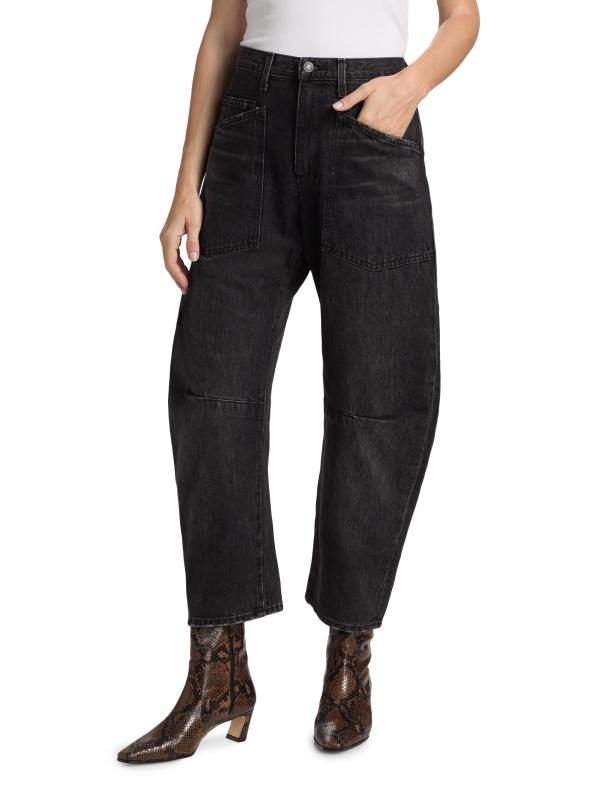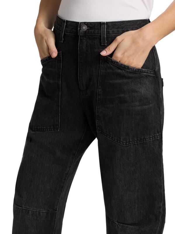 يتميز بنطال جينز Shon ذو التصميم العملي من Nili Lotan والمصنوع من القطن بخمسة جيوب بتصميم كبير الحجم على شكل أسطوانيّ وقصّة متوسطة الارتفاع.