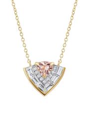 من مجموعة التوقيع. تتميّز هذه القلادة المصنوعة من سلسلة الكابلات، المصنوعة من الذهب الأصفر عيار 18 قيراطًا، بقلادة مثلثة تتلألأ بشكل جميل مع أحجار المورجانيت المُرصّعة بتريليون والماس الأبيض المرصوف والباجيت.
