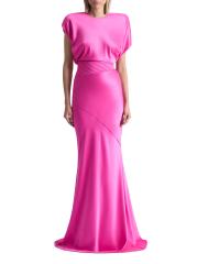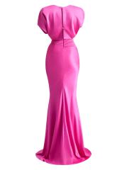 فقط أكياس الشاي باللون الوردي. من مجموعة Signature. يتميز فستان Bond المذهل هذا من ZHIVAGO بصدّار منسدل وخصر مخيط. يتميز هذا الطراز بطول الأرض بخطوط غير متماثلة، ويتميز بقطار ساحر.