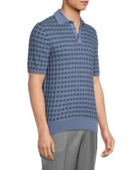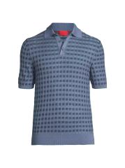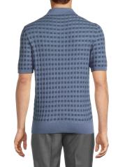 قميص بولو من Isaia مصنوع من مزيج فاخر من الحرير والكشمير والصوف ومزين بتصميم جاكار هندسي. تضفي الزخرفة المضلعة على الياقة والأساور والحاشية مزيدًا من البنية لهذا النمط.