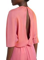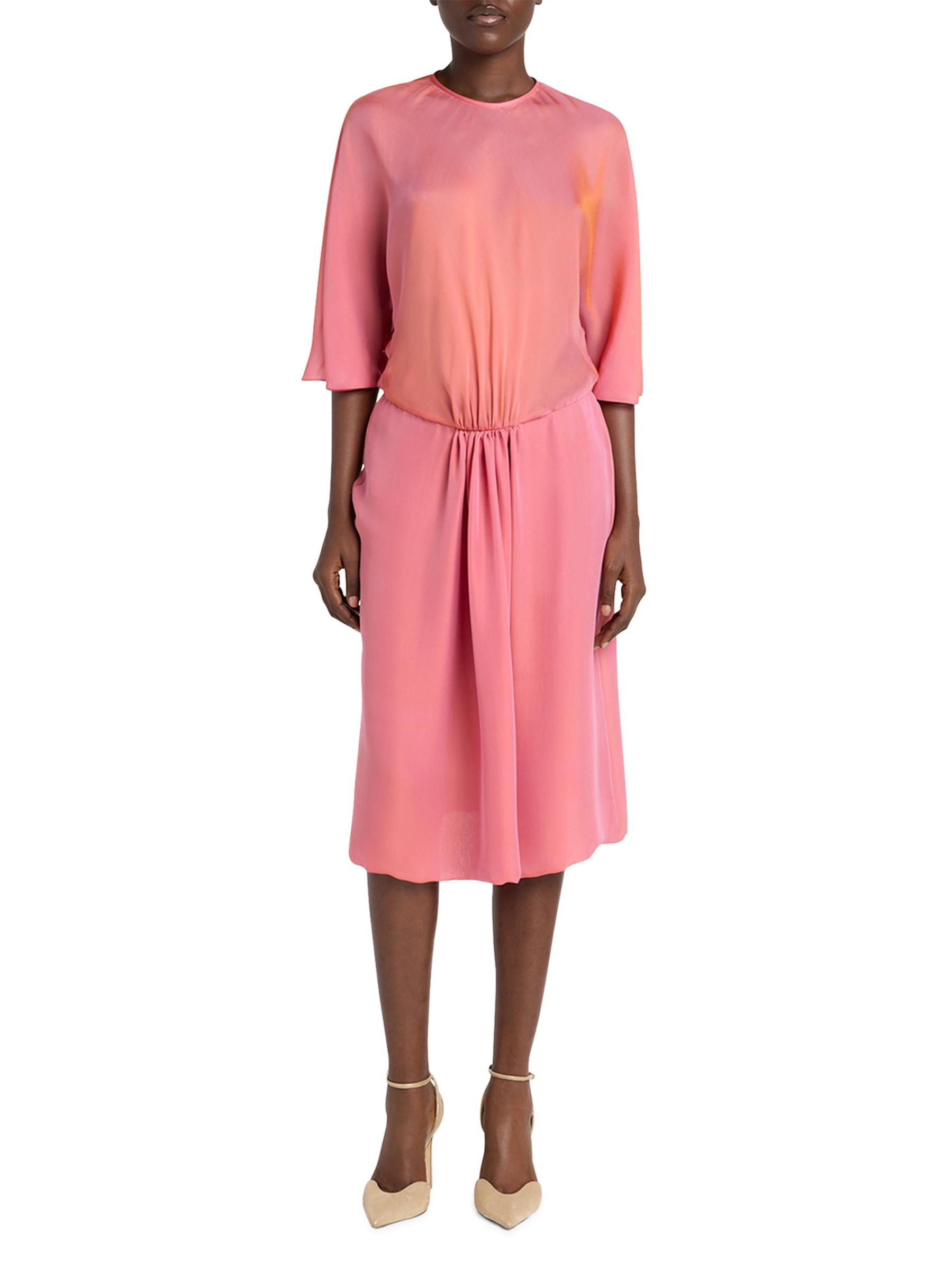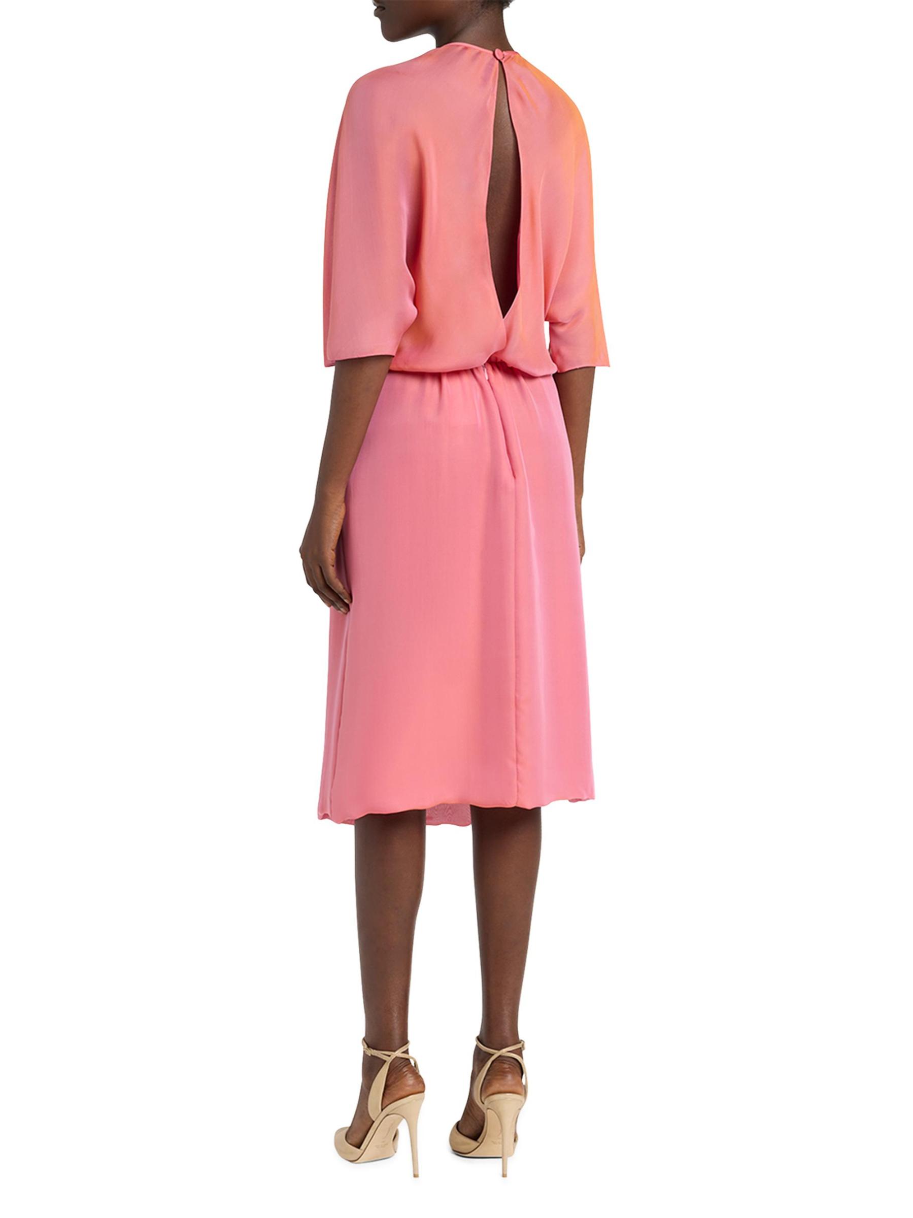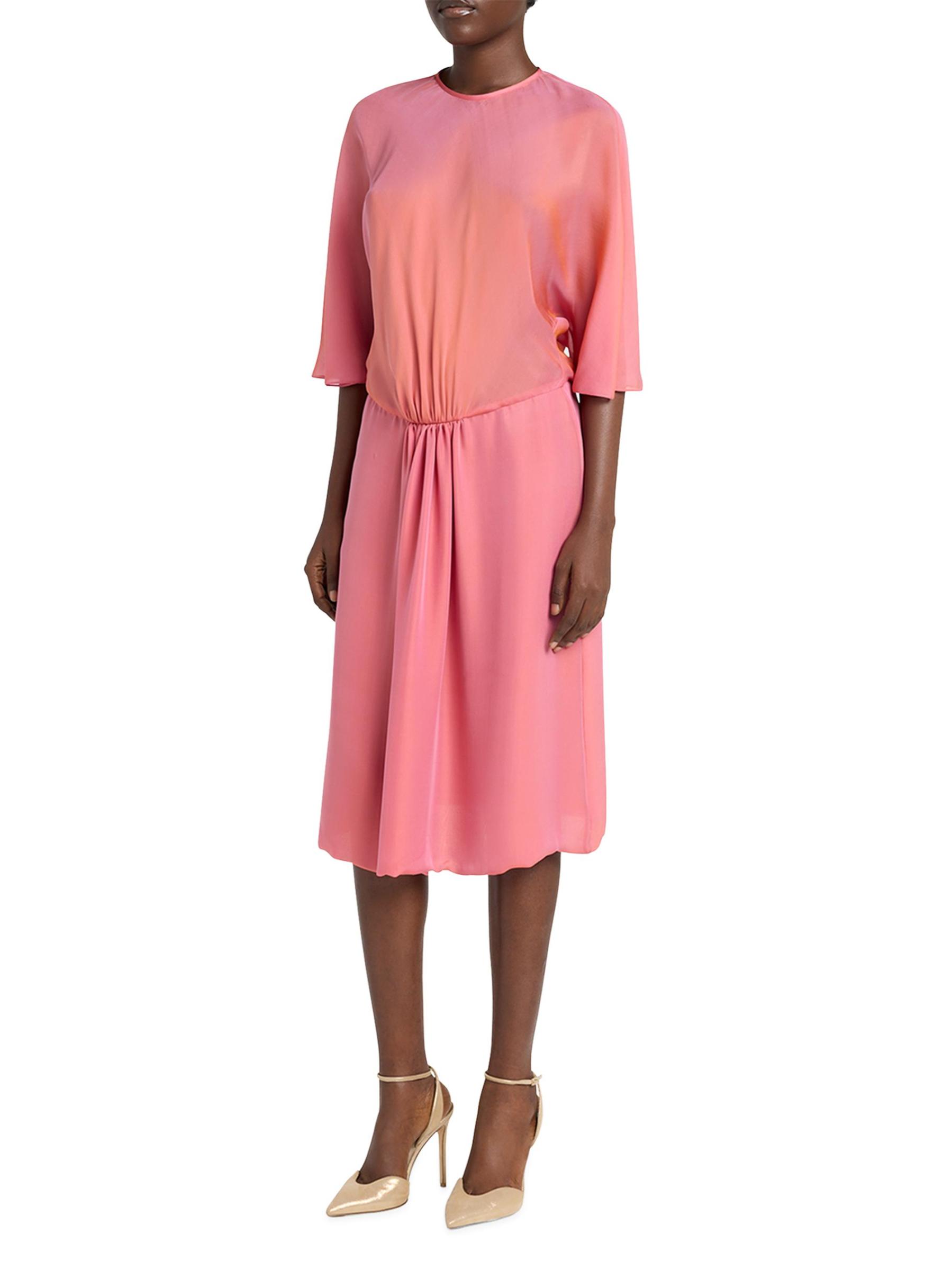 فستان متوسط الطول من الحرير بأكمام ثلاثة أرباع