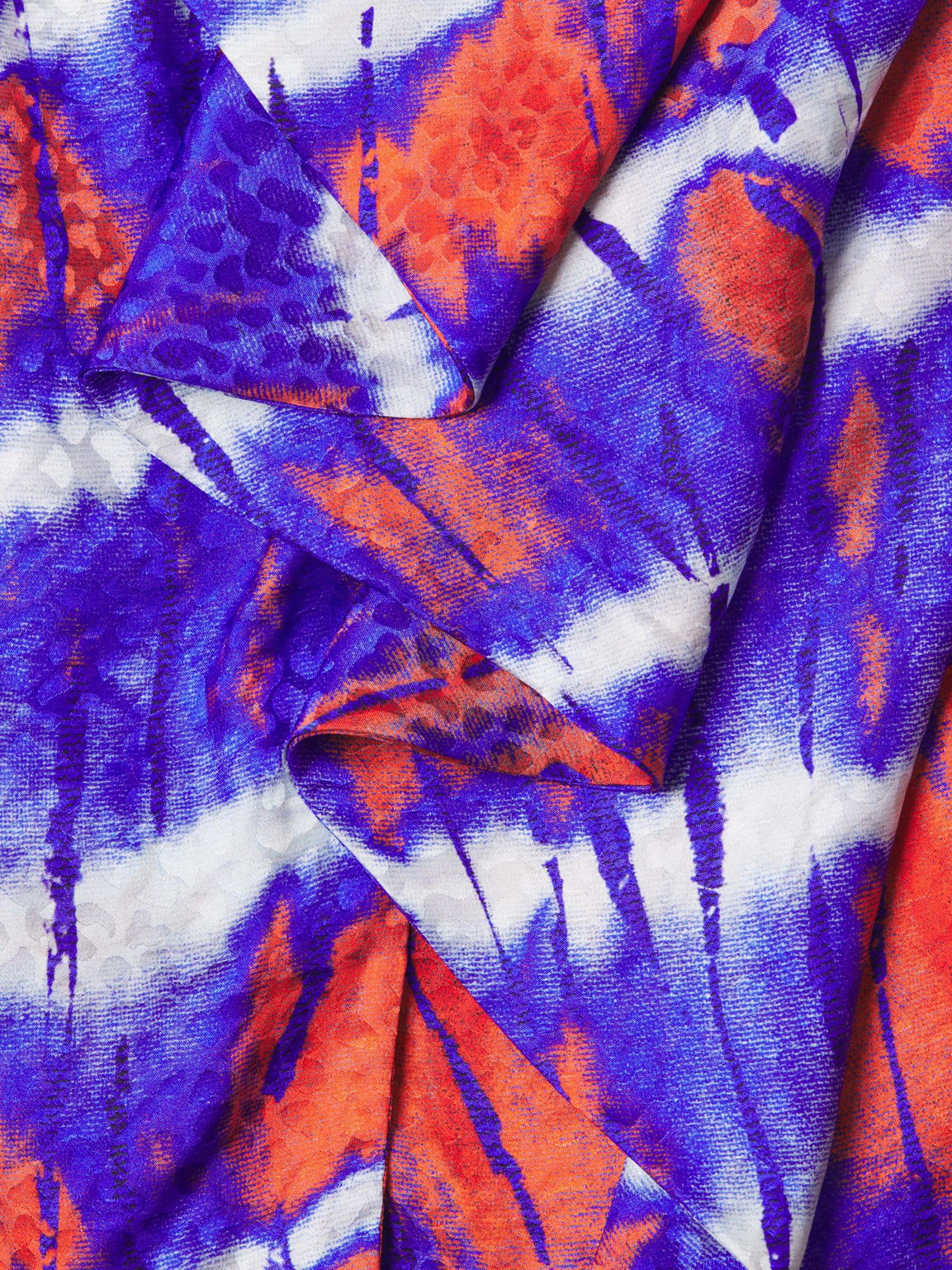 فستان Stella Jean مصنوع من الحرير الإيطالي ويسلط الضوء على طباعة نابضة بالحياة مصبوغة بربطة عنق. تُكمل أكمام البلوزة الطويلة وحافة التوليب هذا المظهر متوسط الطول.رقبة مستديرة بلوزة بأكمام طويلة وأساور بأزرار خصر مطوق إغلاق بسحّاب خلفي حرير بنسبة 100% يُغسل في الغسالة صُنع في إيطاليا
