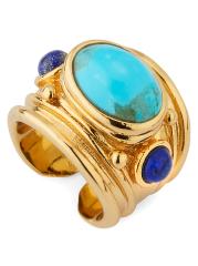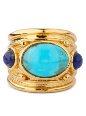 خاتم Simone مطلي بالذهب عيار 24 قيراطًا باللون الفيروزي واللازورد