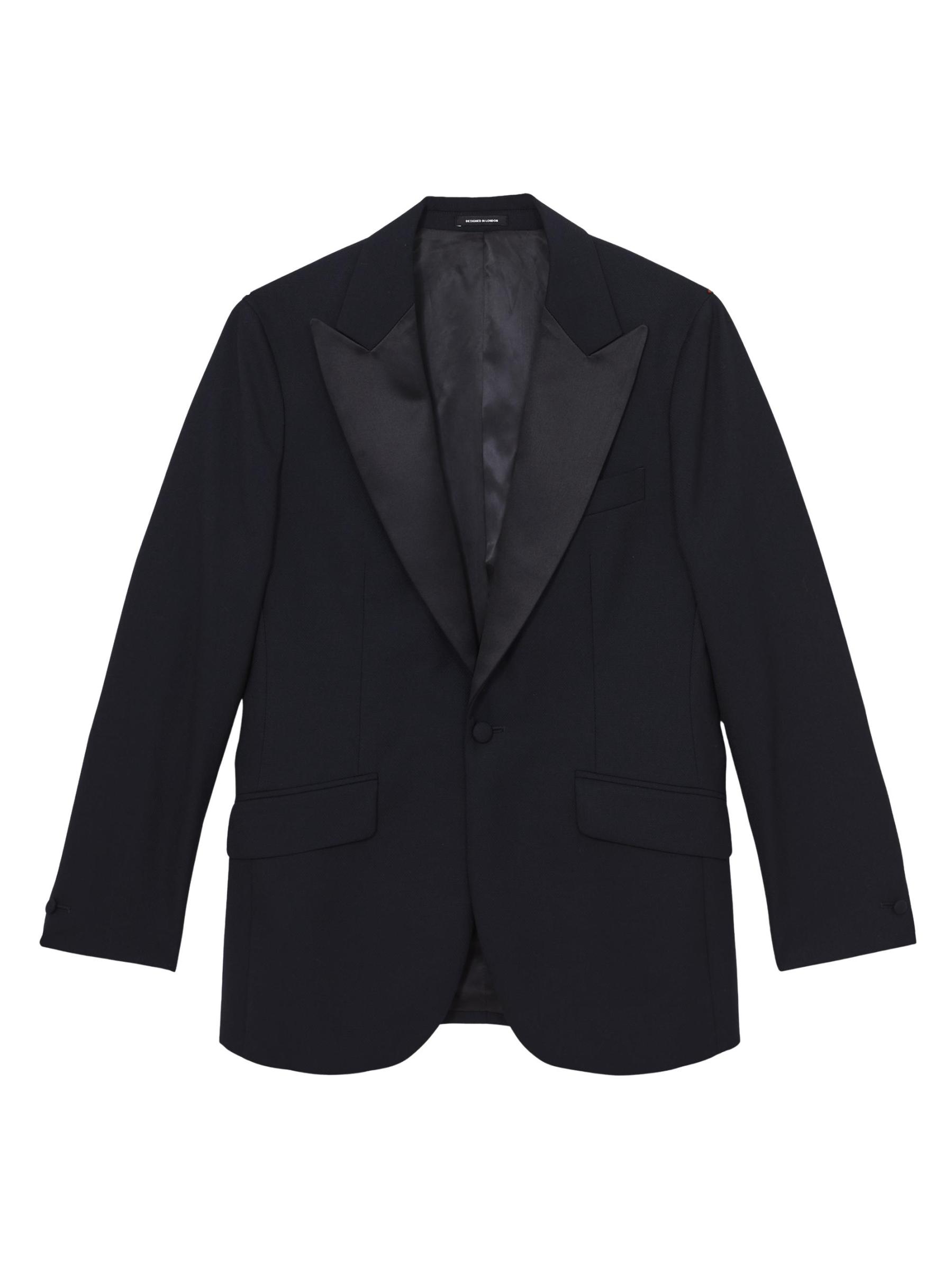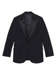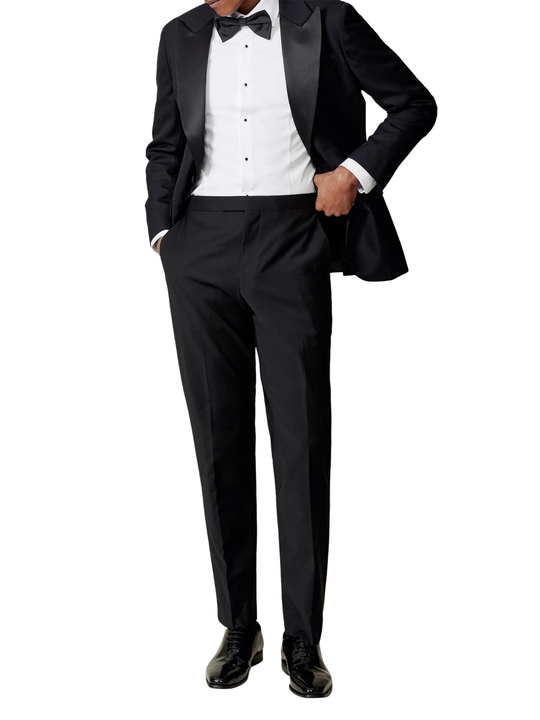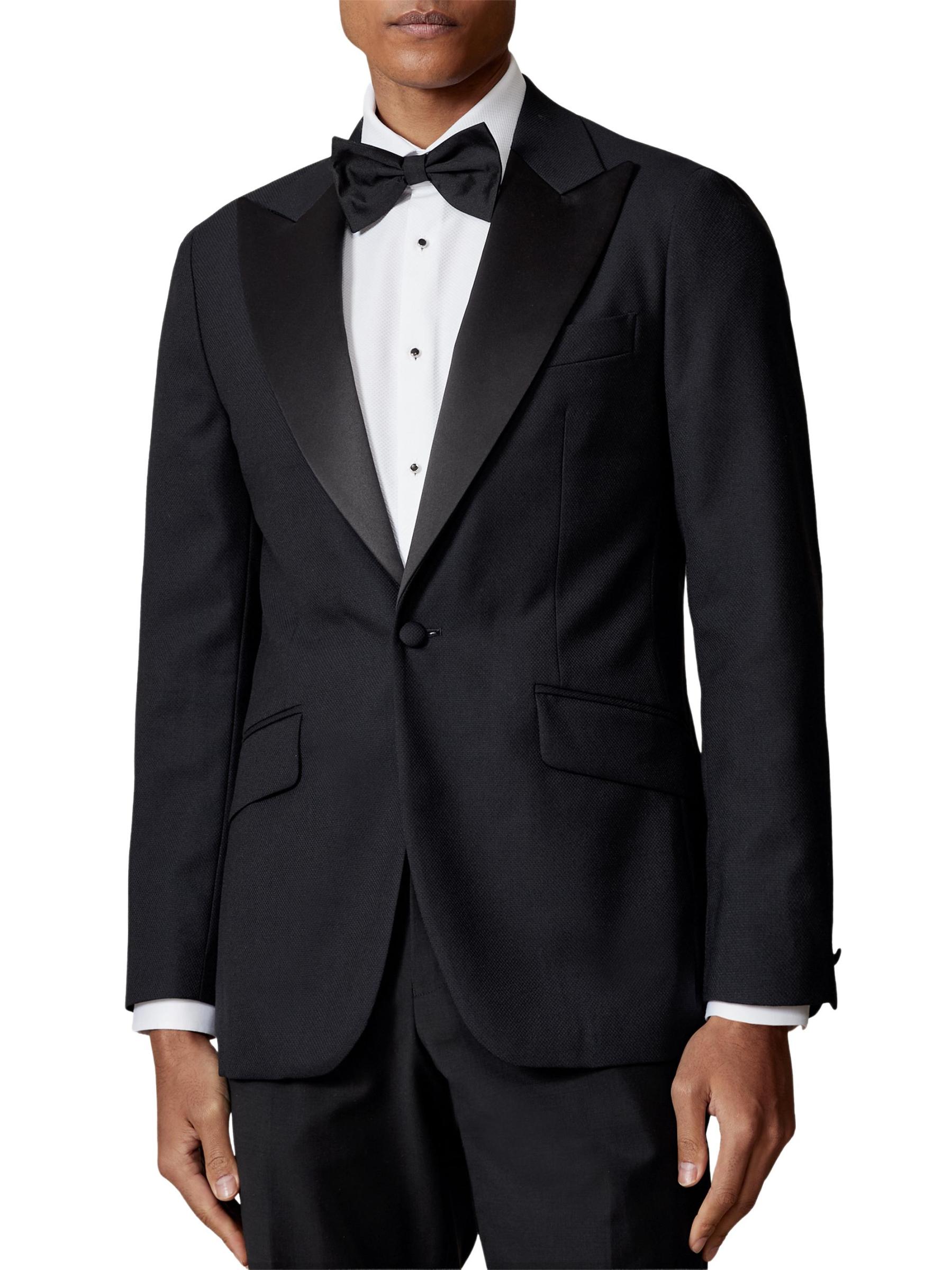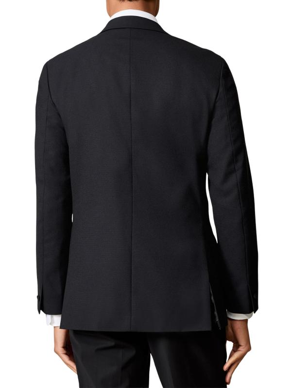 جاكيت «سيناترا» التوكسيدو وحيد الصدر من Reiss مصنوع من مزيج من الصوف ويتميز بنمط الجاكار المتعرج الرقيق. تضيف التلابيب ذات الذروة المصنوعة من الساتان لمسة من الأناقة إلى هذا المظهر.