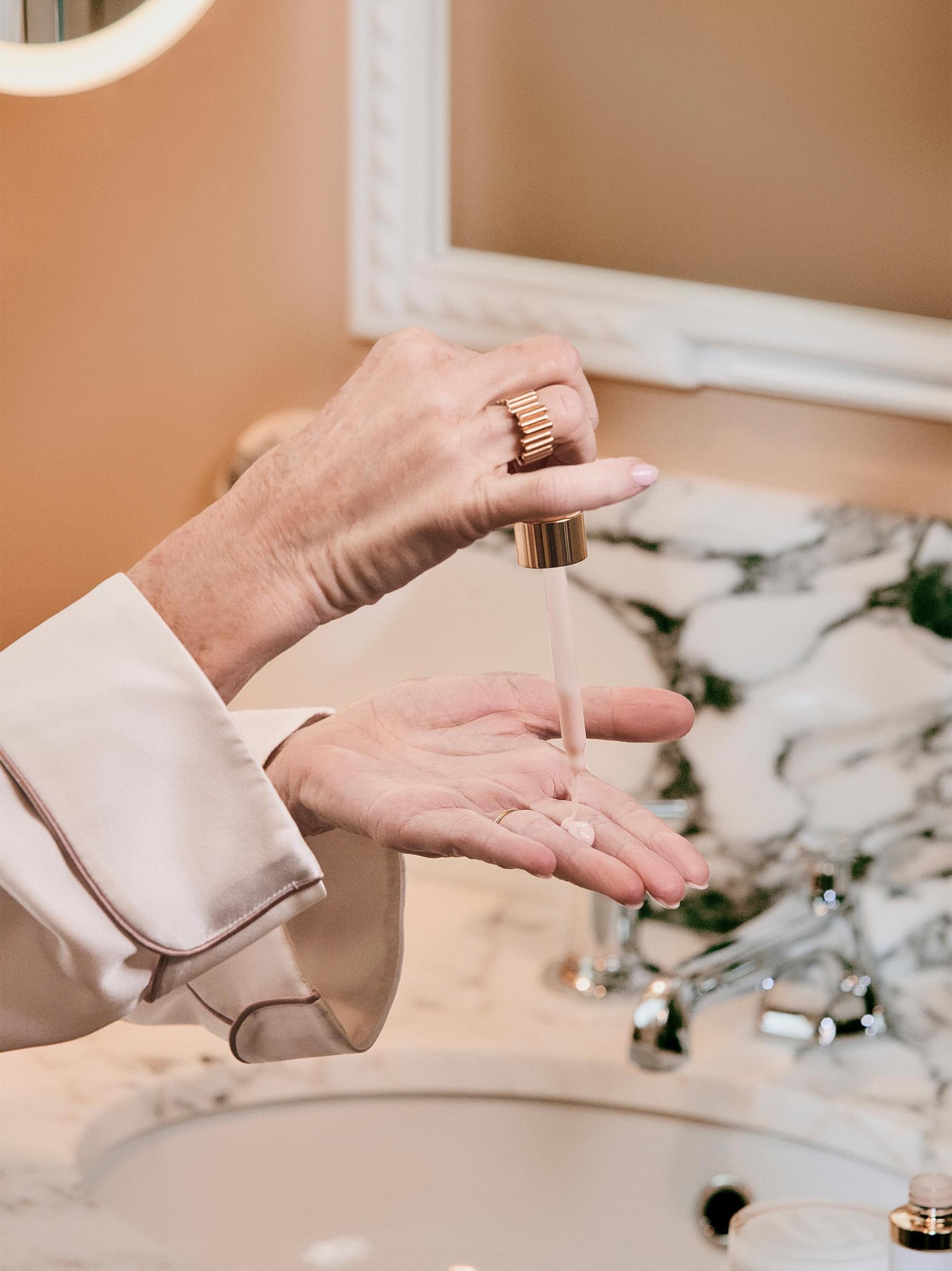 في الصباح والمساء، ضعي 3 إلى 4 قطرات من السيروم، ثم ضعيه على الوجه والرقبة باستخدام التقنية التالية: