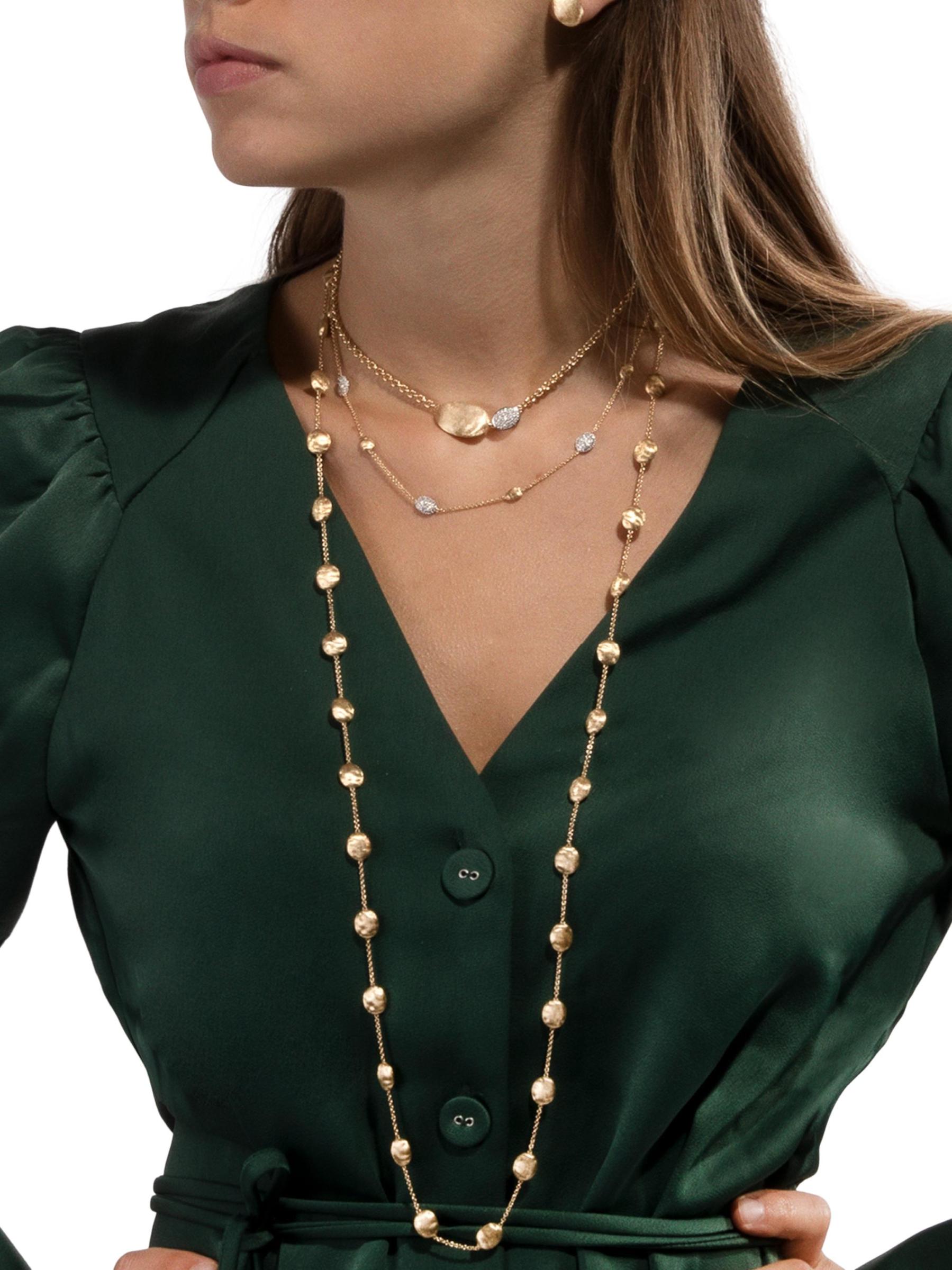 من مجموعة سيفيجليا. محطات كروية مذهلة محفورة يدويًا على سلسلة ربط دقيقة لتصميم طويل وأنيق. منذ عام 2000، قام ماركو بيسيجو بدمج التقاليد والفضائل التي نقلها والده، حيث صنع المجوهرات يدويًا التي تجسد الحرفية الإيطالية والتصميم المعاصر.ذهب أصفر عيار 18 قيراط مشبك لوبستر صُنع في إيطاليا