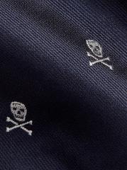 تتميّز ربطة العنق هذه المطرّزة بعظمتين متقاطعتين على شكل جمجمة بالحافة.