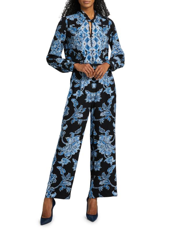 صُمم بنطال سكايلر من إيلي تاهاري بنقشة الزهور النابضة بالحياة، بمقاس متوسط الارتفاع وأرجل مستقيمة وقصّة مريحة.