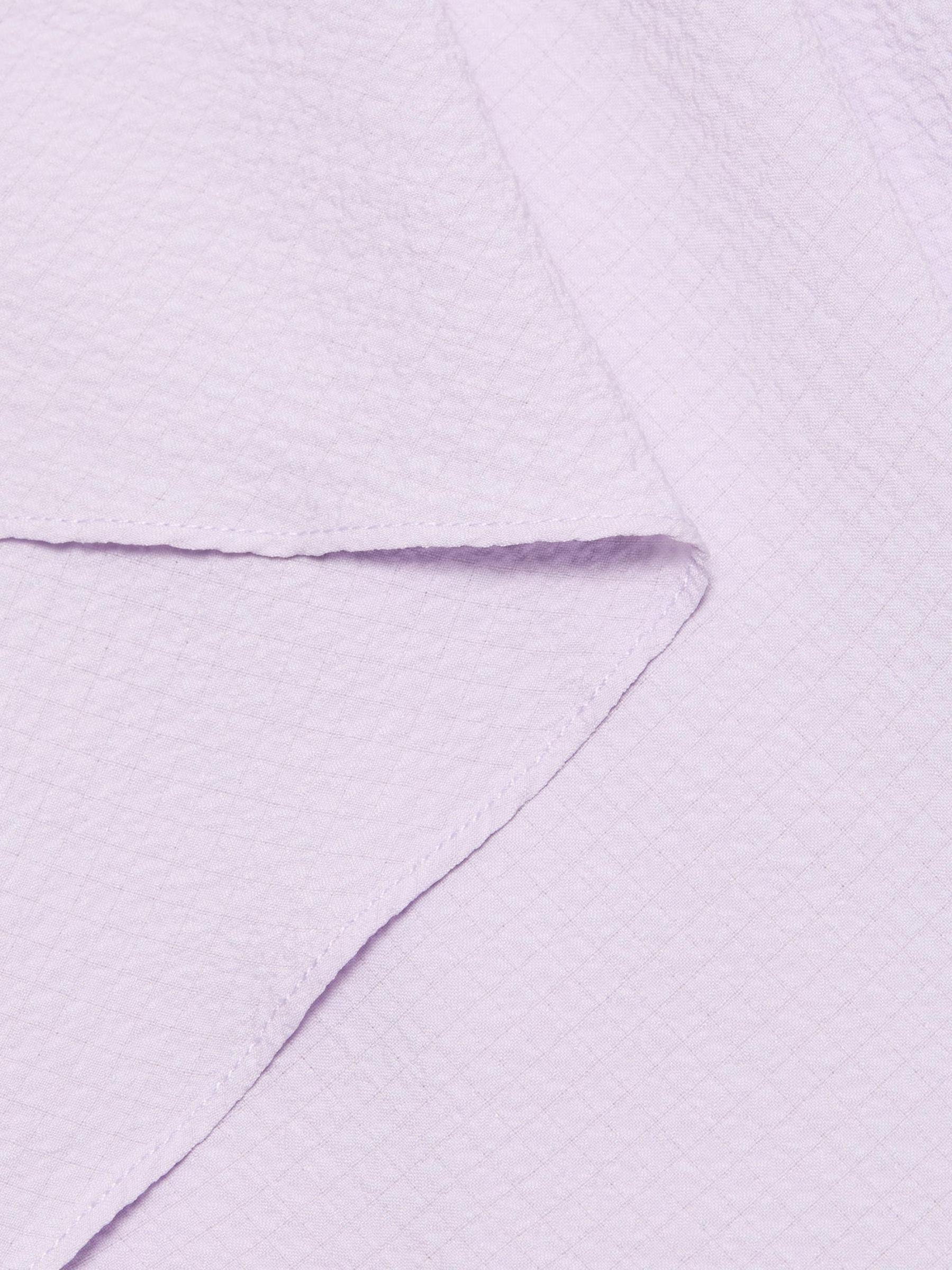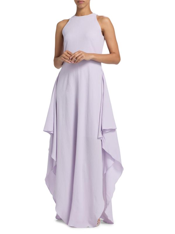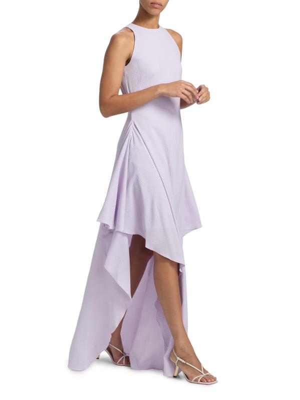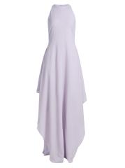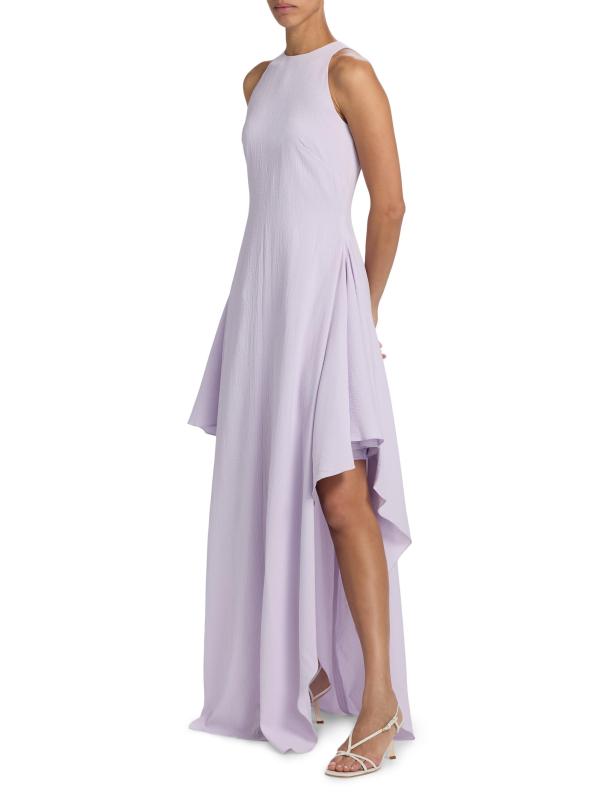 صُمم فستان Amsale بتصميم على شكل حرف A مع رقبة دائرية كلاسيكية.