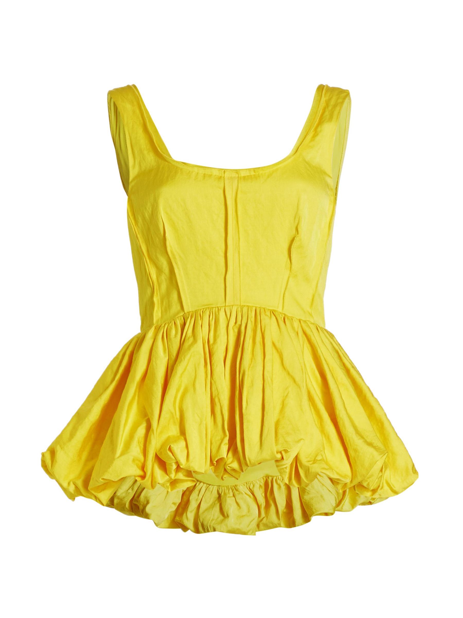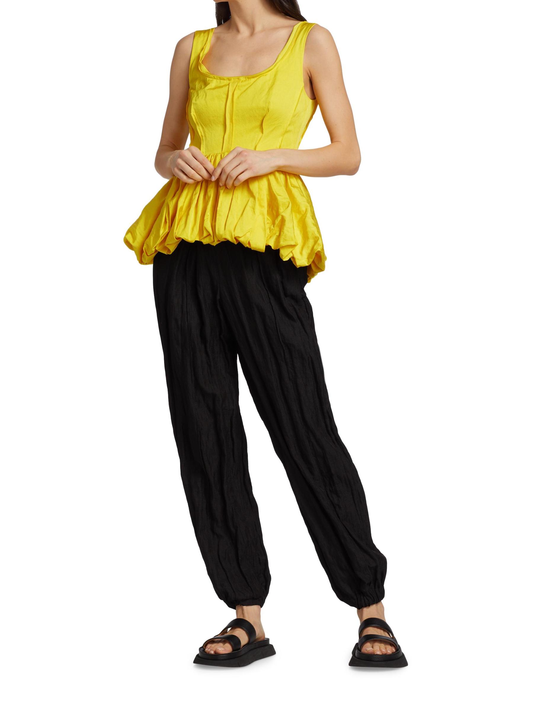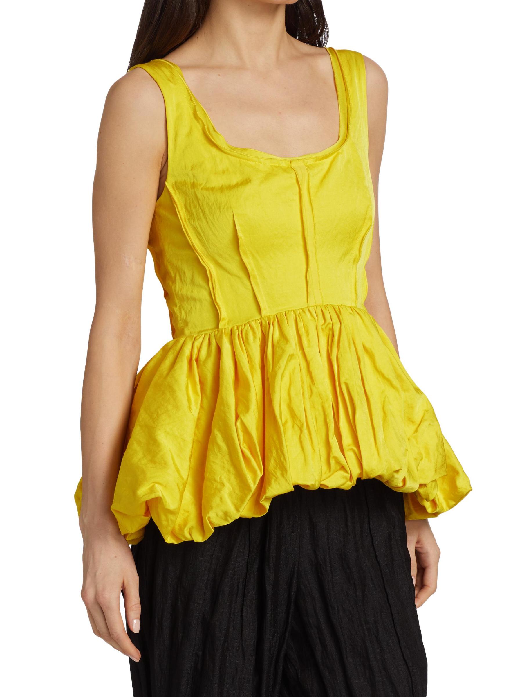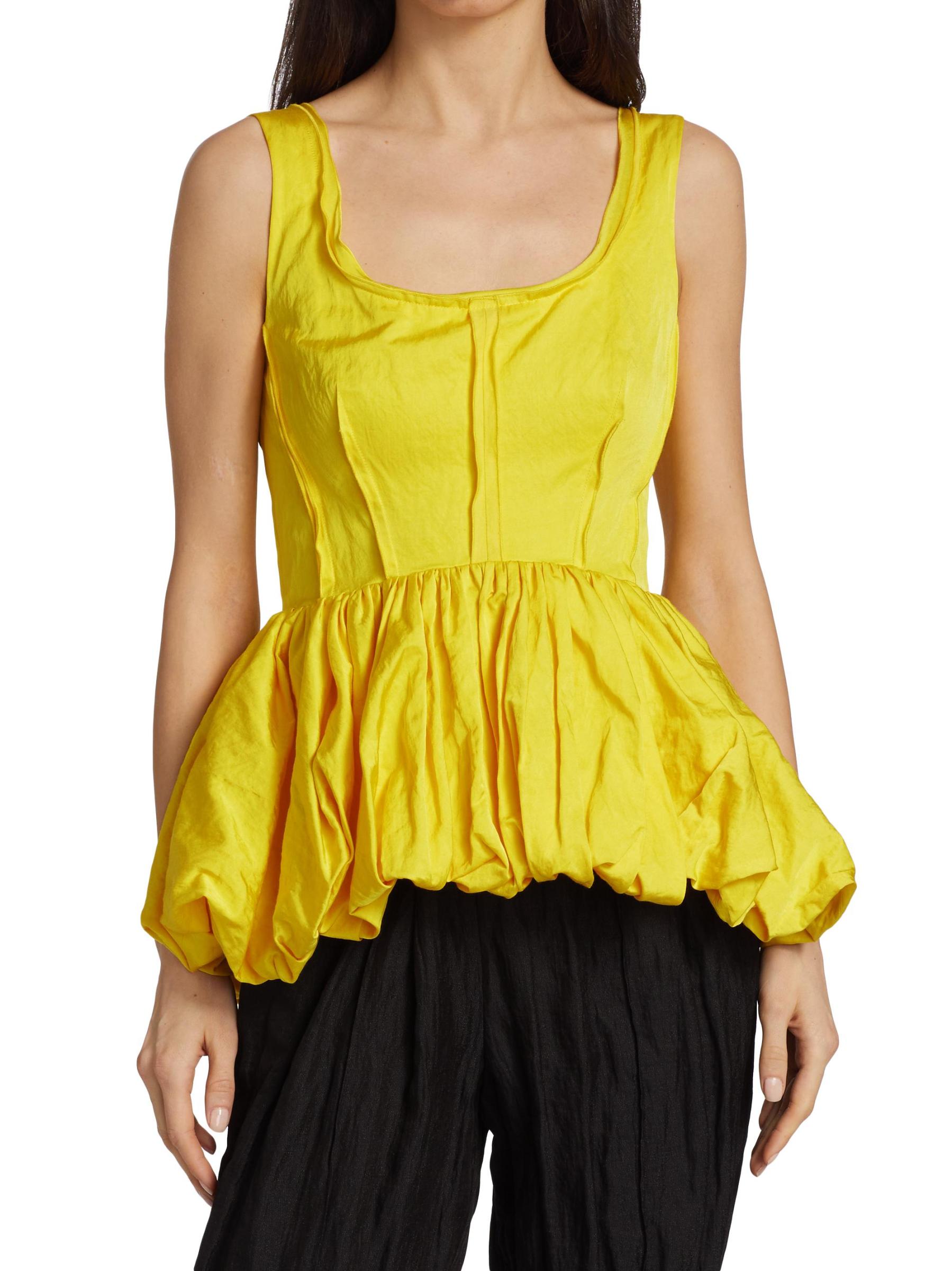 تتميّز هذه البلوزة النابضة بالحياة بحاشية بيبلوم ضخمة ومزينة بطيات مزخرفة.سكوبنك بدون أكمام إغلاق بسحّاب خلفي 47% فيسكوز/ 46% قطن/ 7% إينوكس تنظيف جاف صُنع في الولايات المتحدة الأمريكية