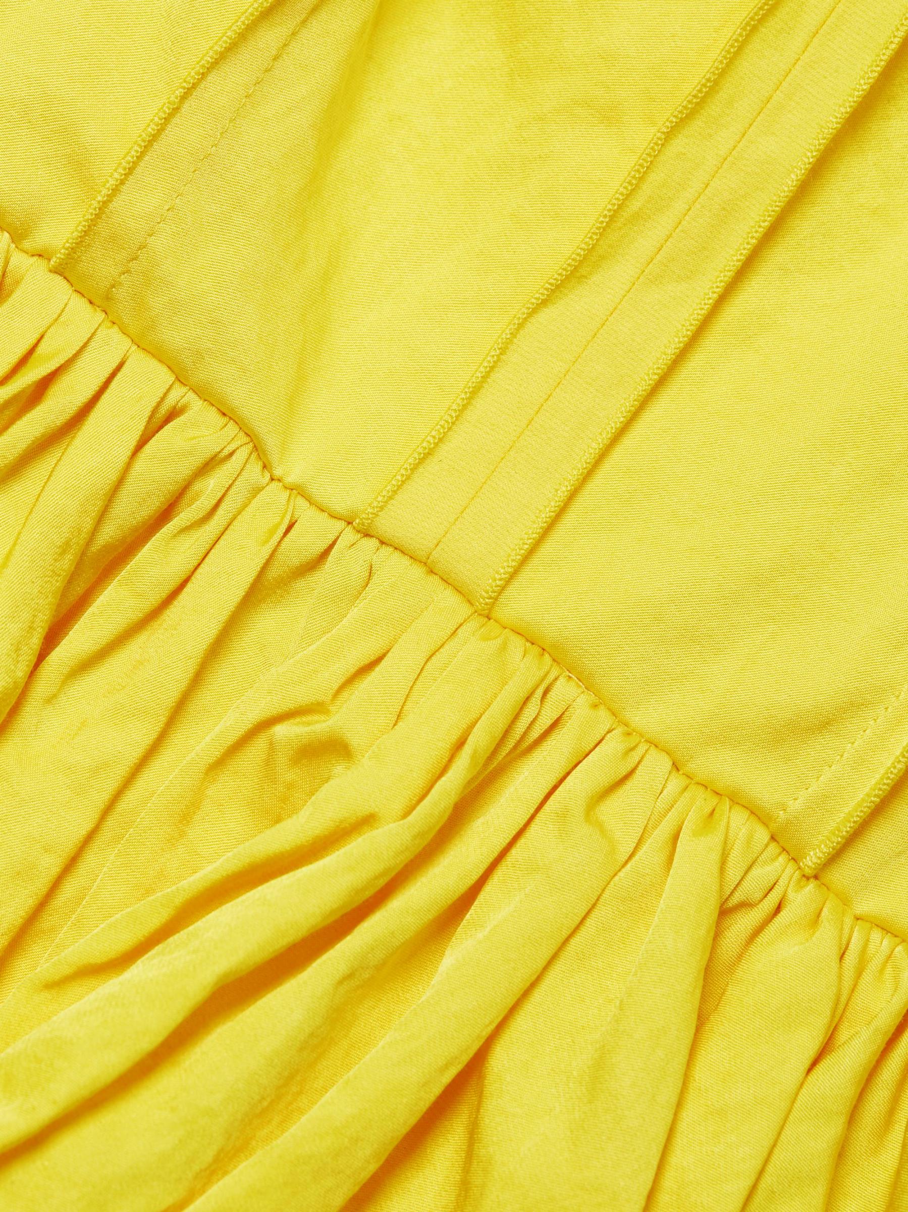 تتميّز هذه البلوزة النابضة بالحياة بحاشية بيبلوم ضخمة ومزينة بطيات مزخرفة.