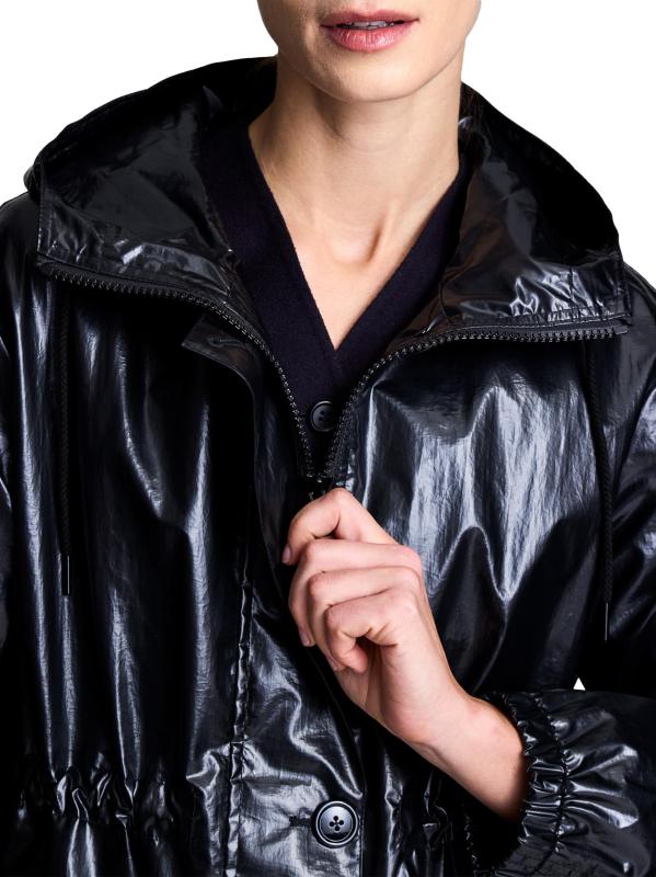 تُبرز سترة Slicker من Jane Post تصميمًا جاهزًا لظروف الطقس، بما في ذلك غطاء للرأس برباط وجيوب جانبية وسحّاب أمامي مع فتحة مانعة للعواصف بأزرار.