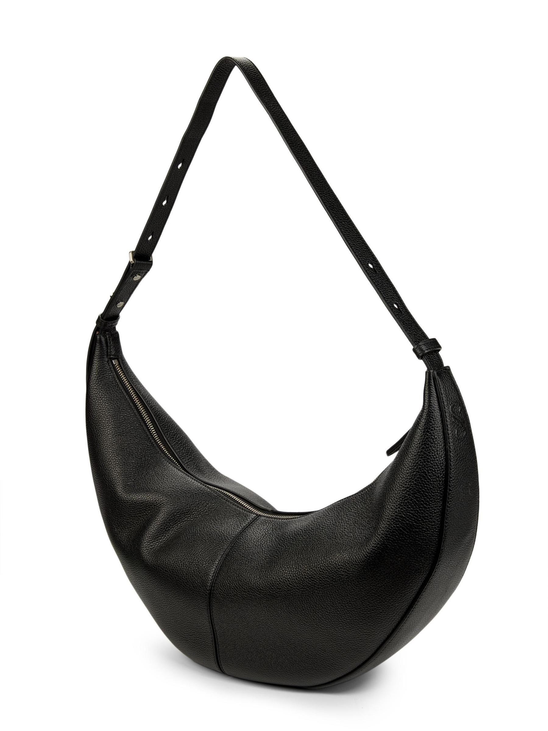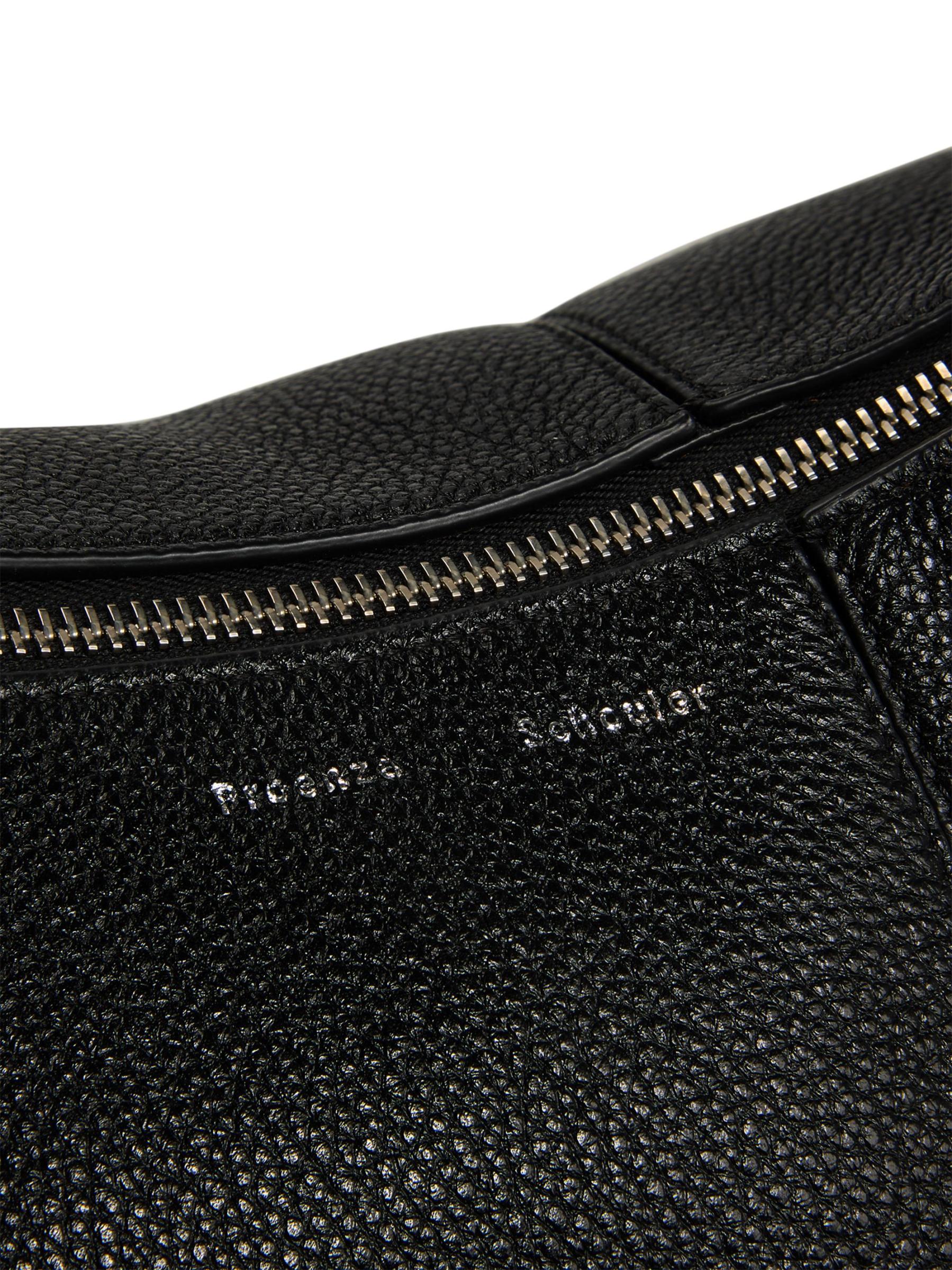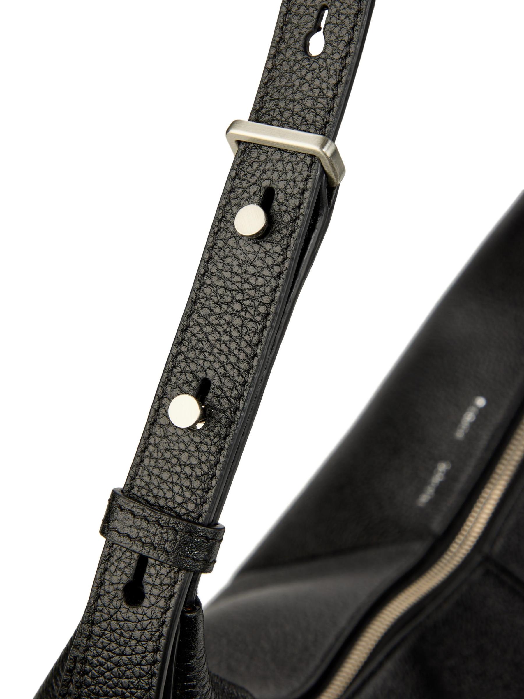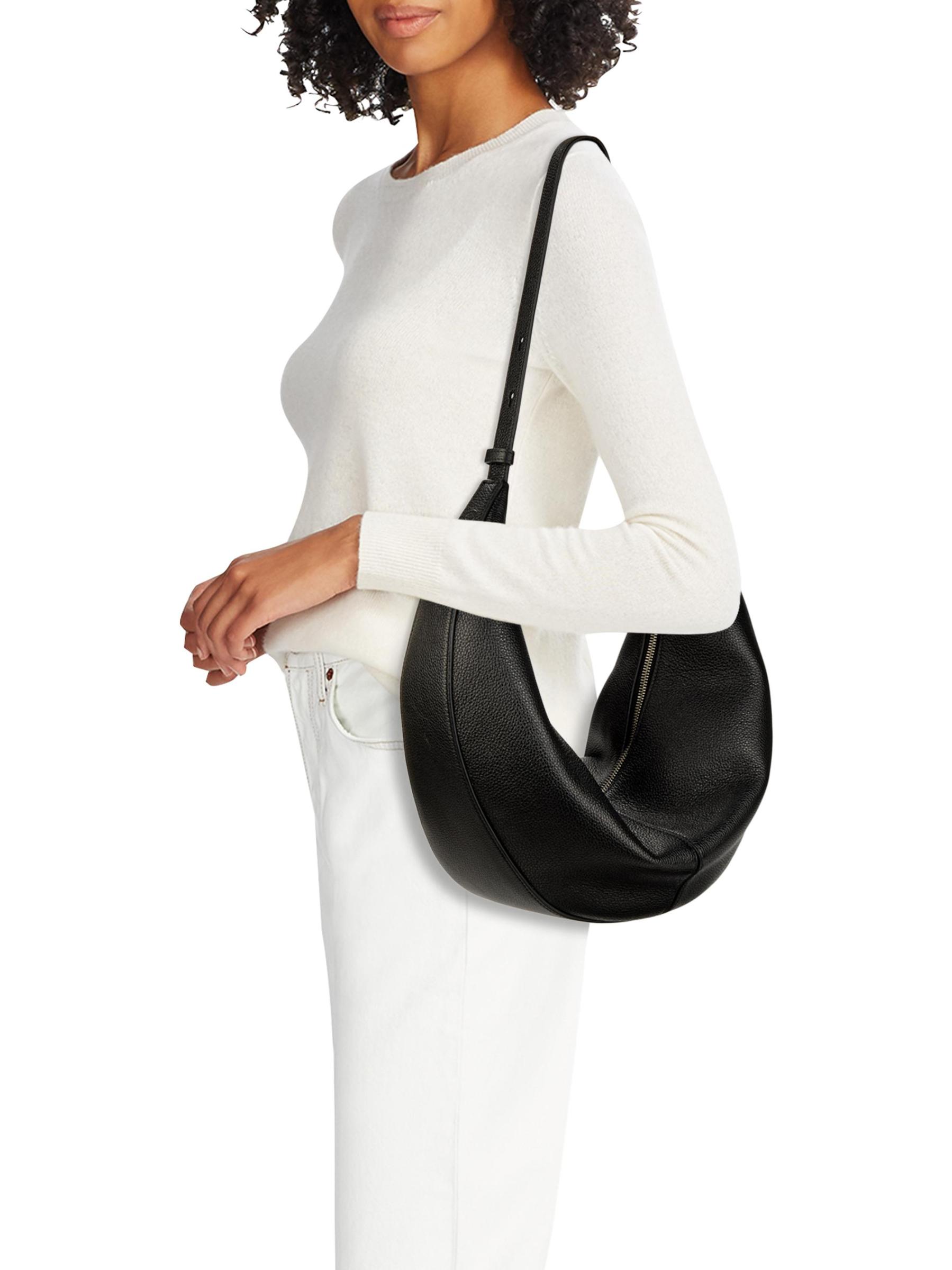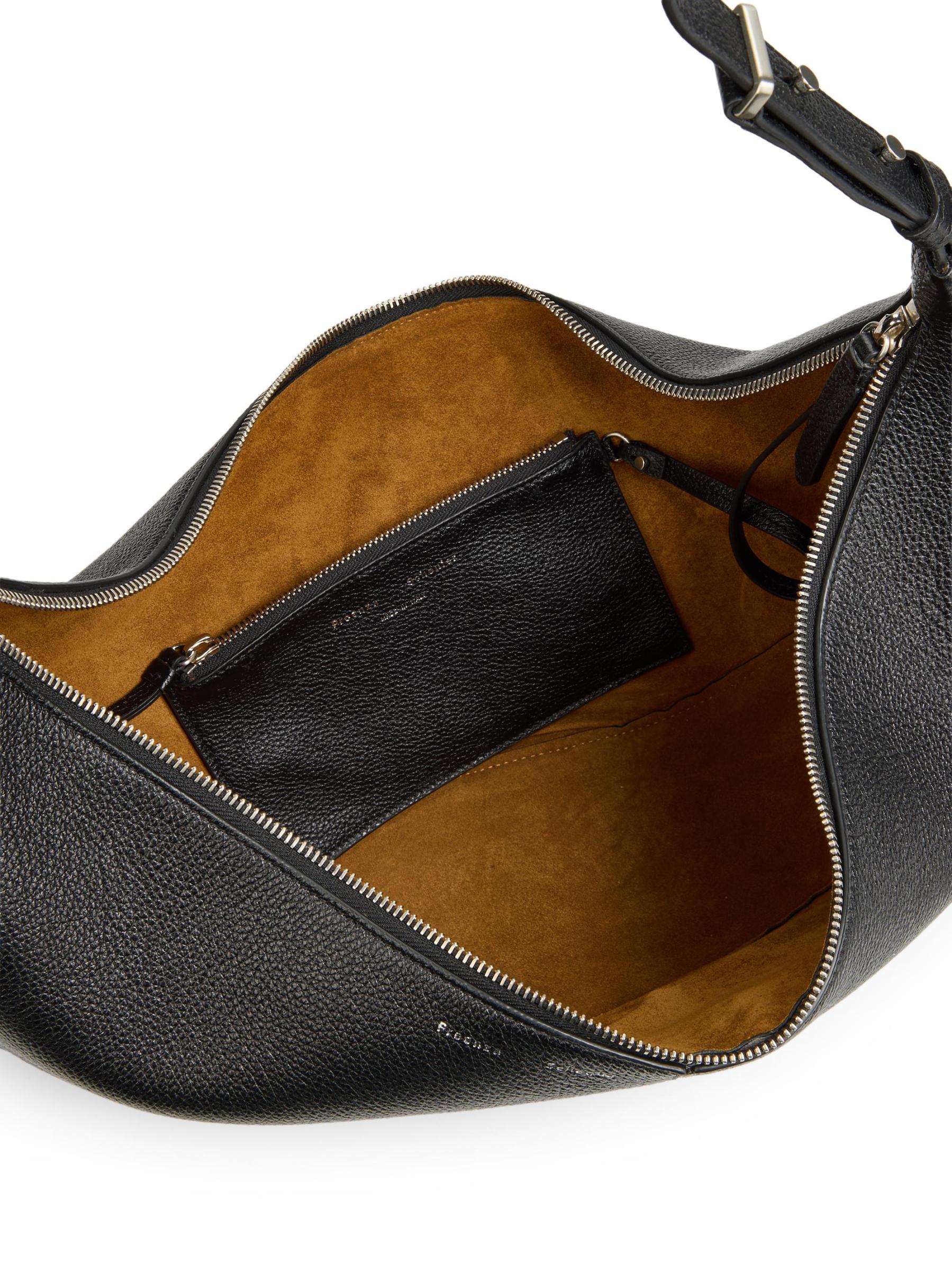 حقيبة Slide من Proenza Schouler مصنوعة من الجلد المرصوف بالحصى وتتميز بسحّاب علوي. يُظهر تصميم Hobo صورة ظلية أنيقة ومترهلة بمقبض علوي.المقبض العلوي إغلاق بسحّاب علوي جلد بطانة قطنية مستوردة